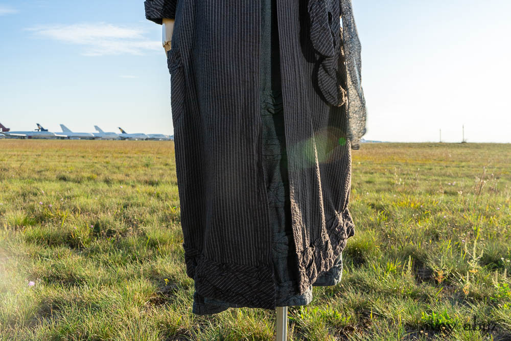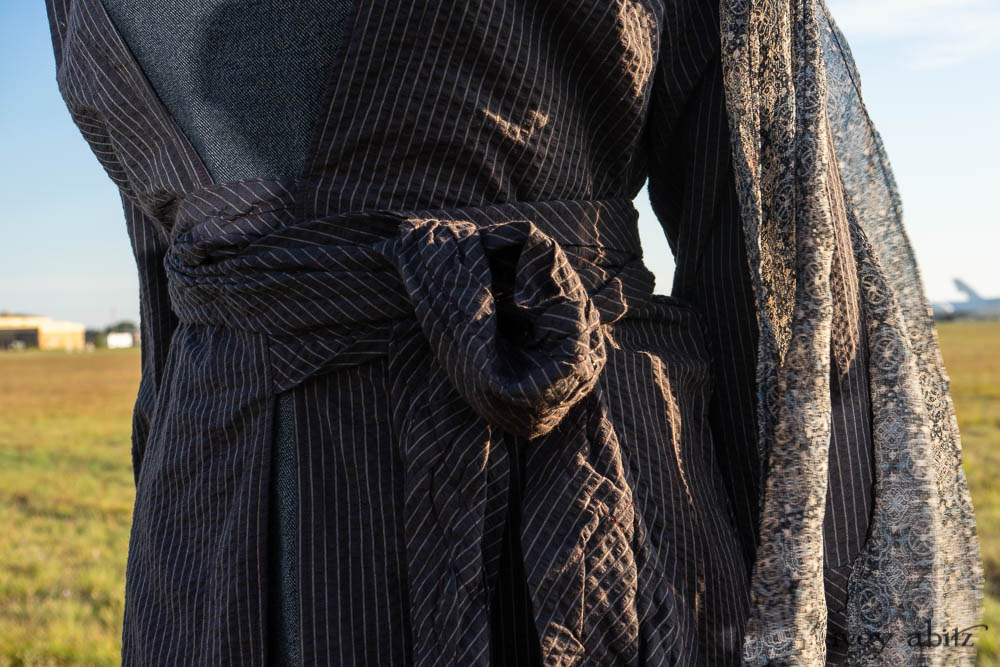 Bertie Dress in Flight Puckered Stripe Cotton; Bertie Frock in Flight Softest Twill; Blanchefleur Sash in Flight Quatrefoil Silk Chiffon