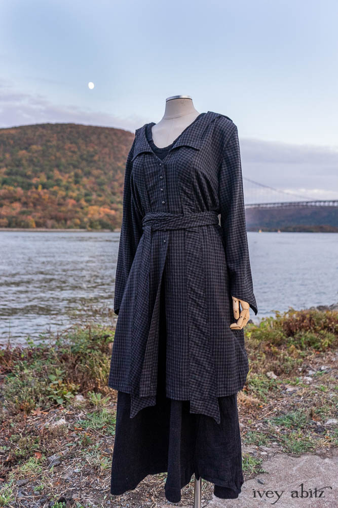 - Vanetten Duster Coat in Rail Midnight Train Checked Wool