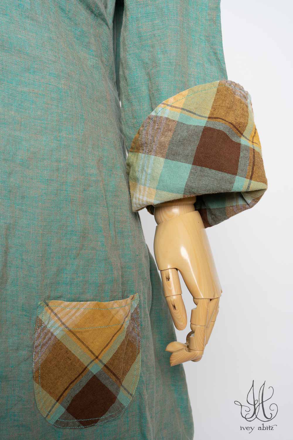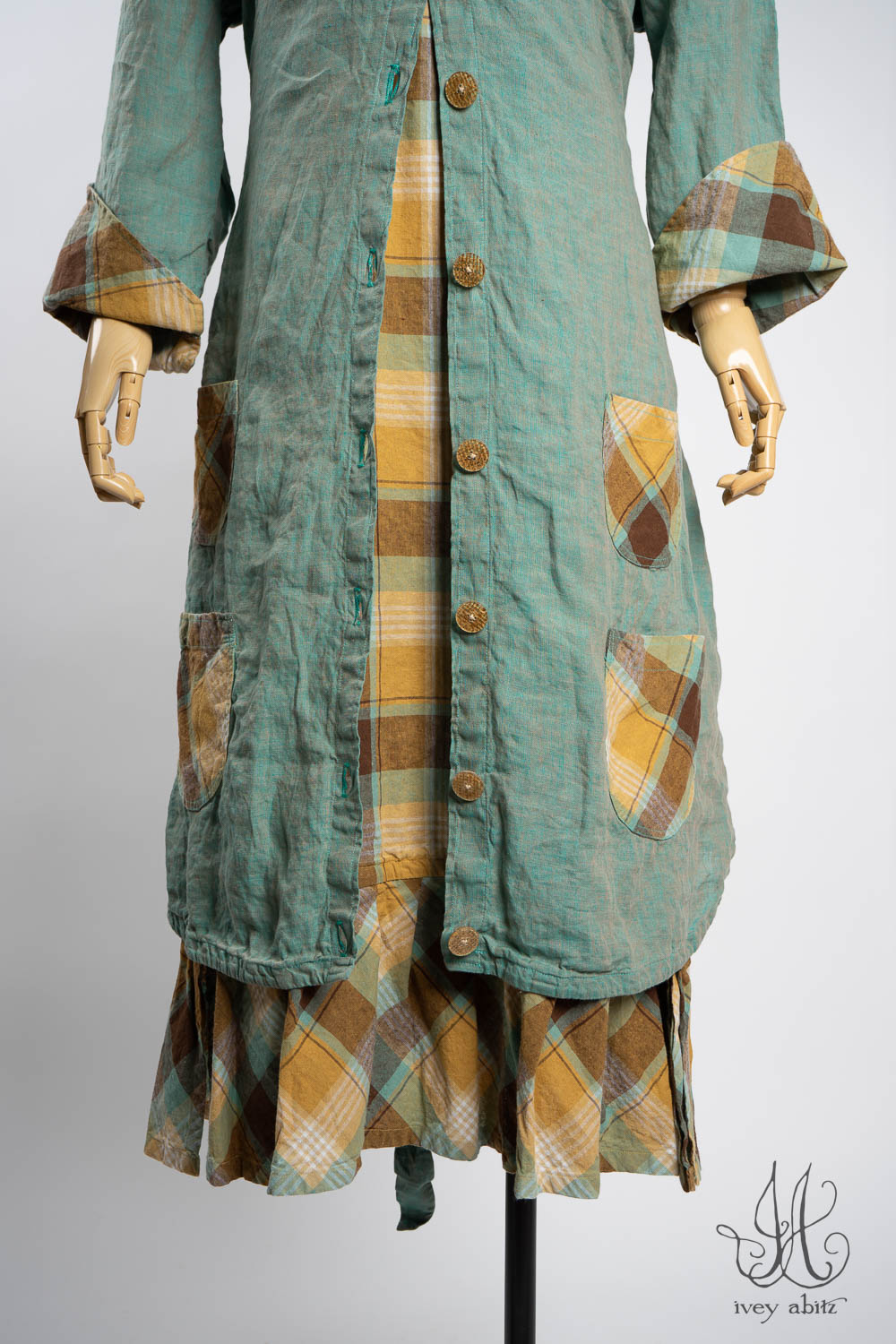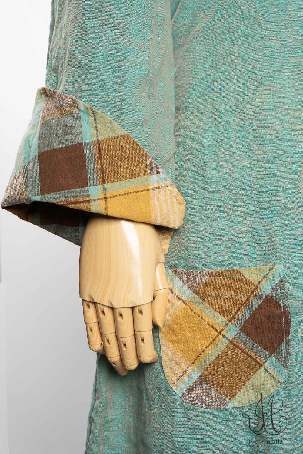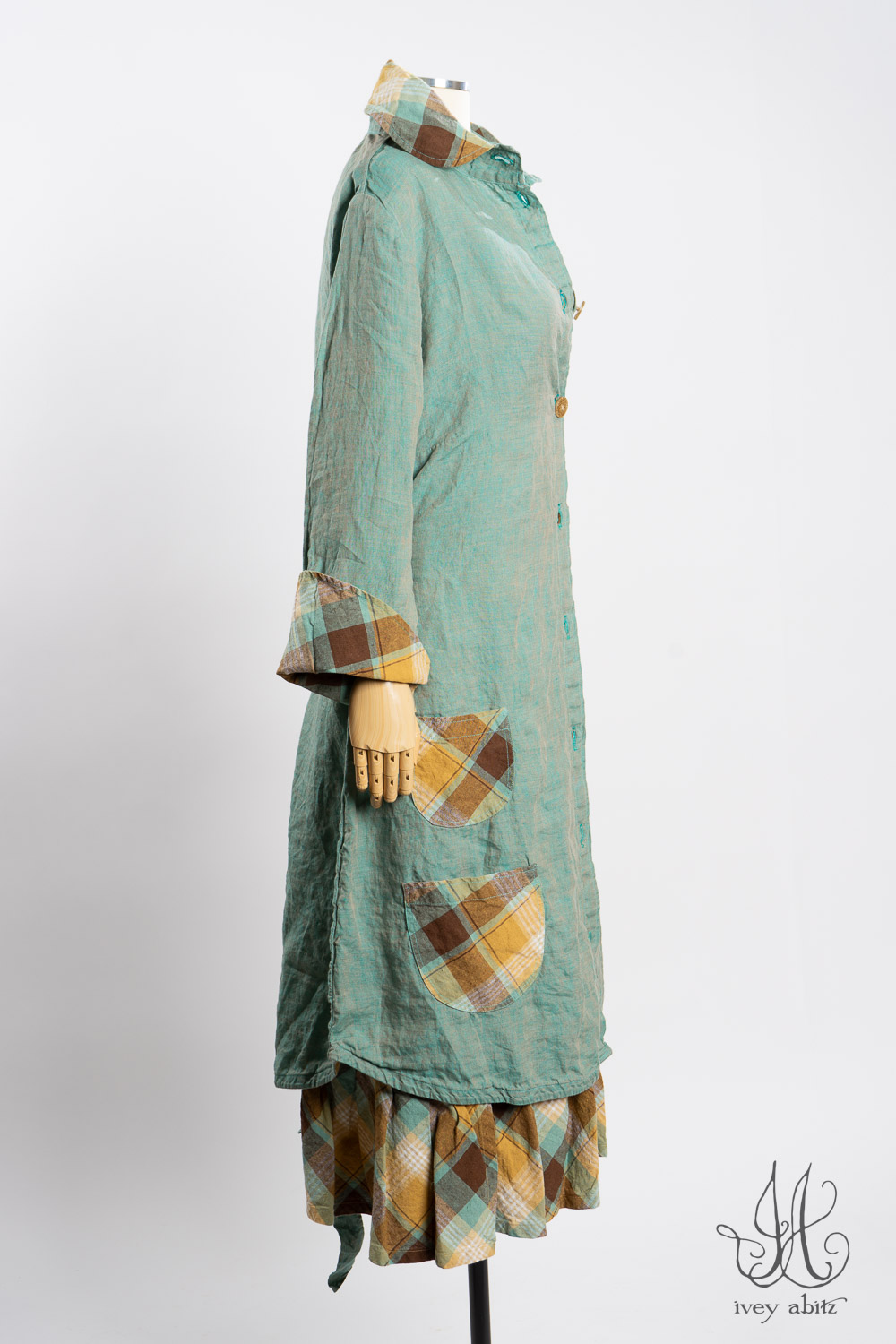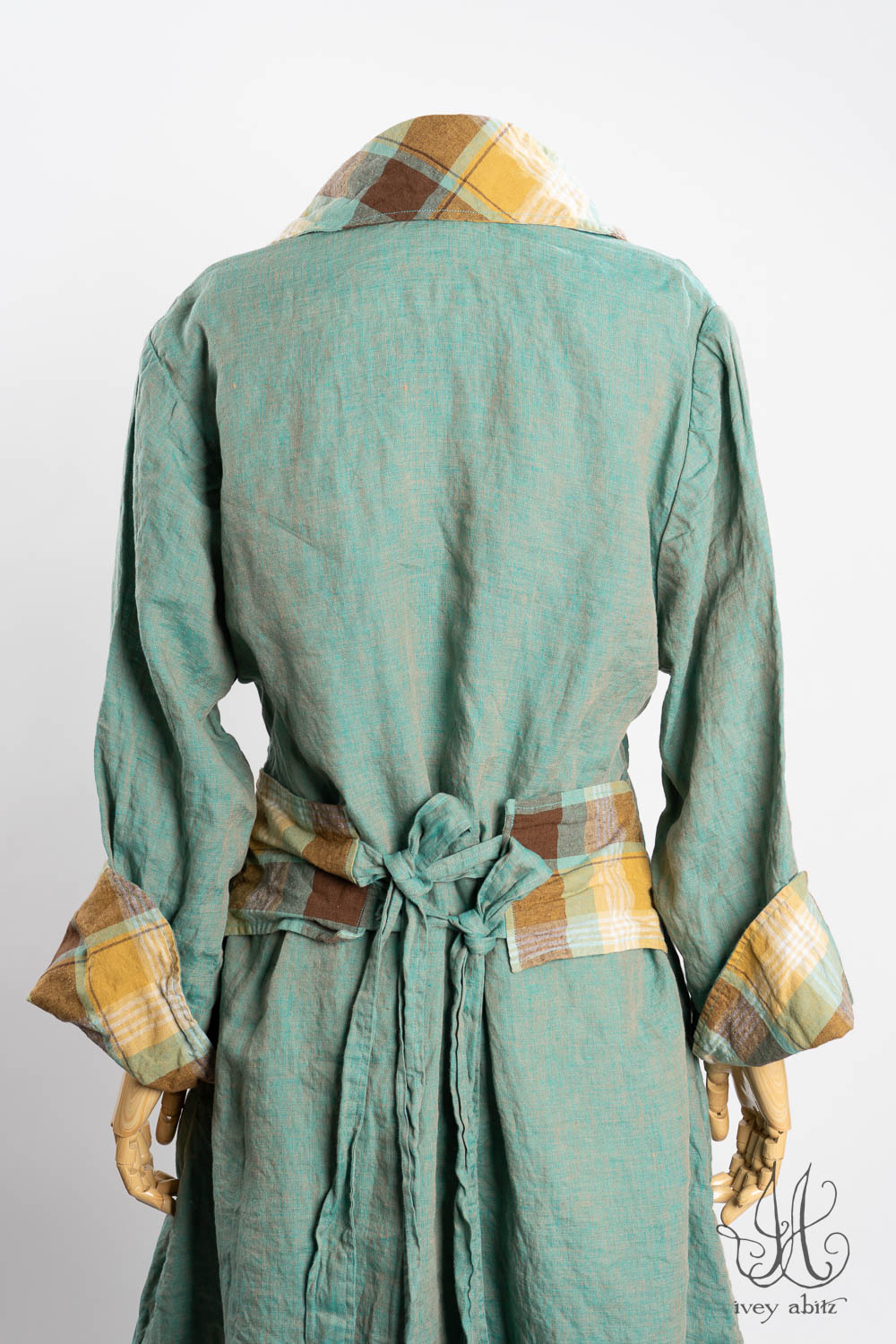 - Rosemarie Duster Coat in Sea Foam Washed Weave with Plaid Detail