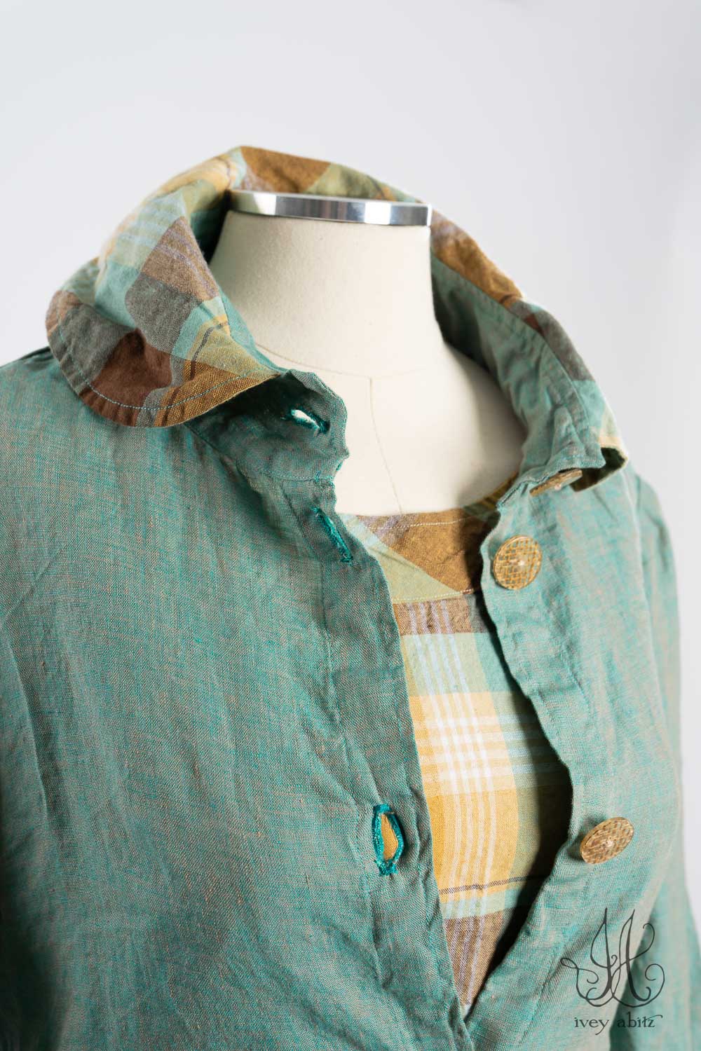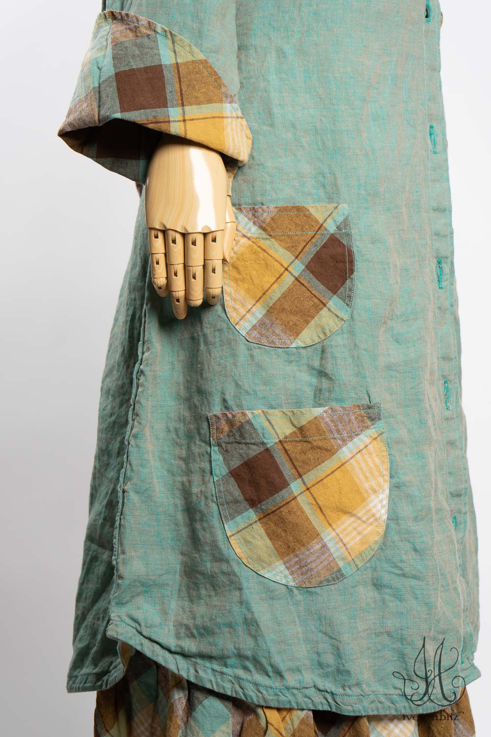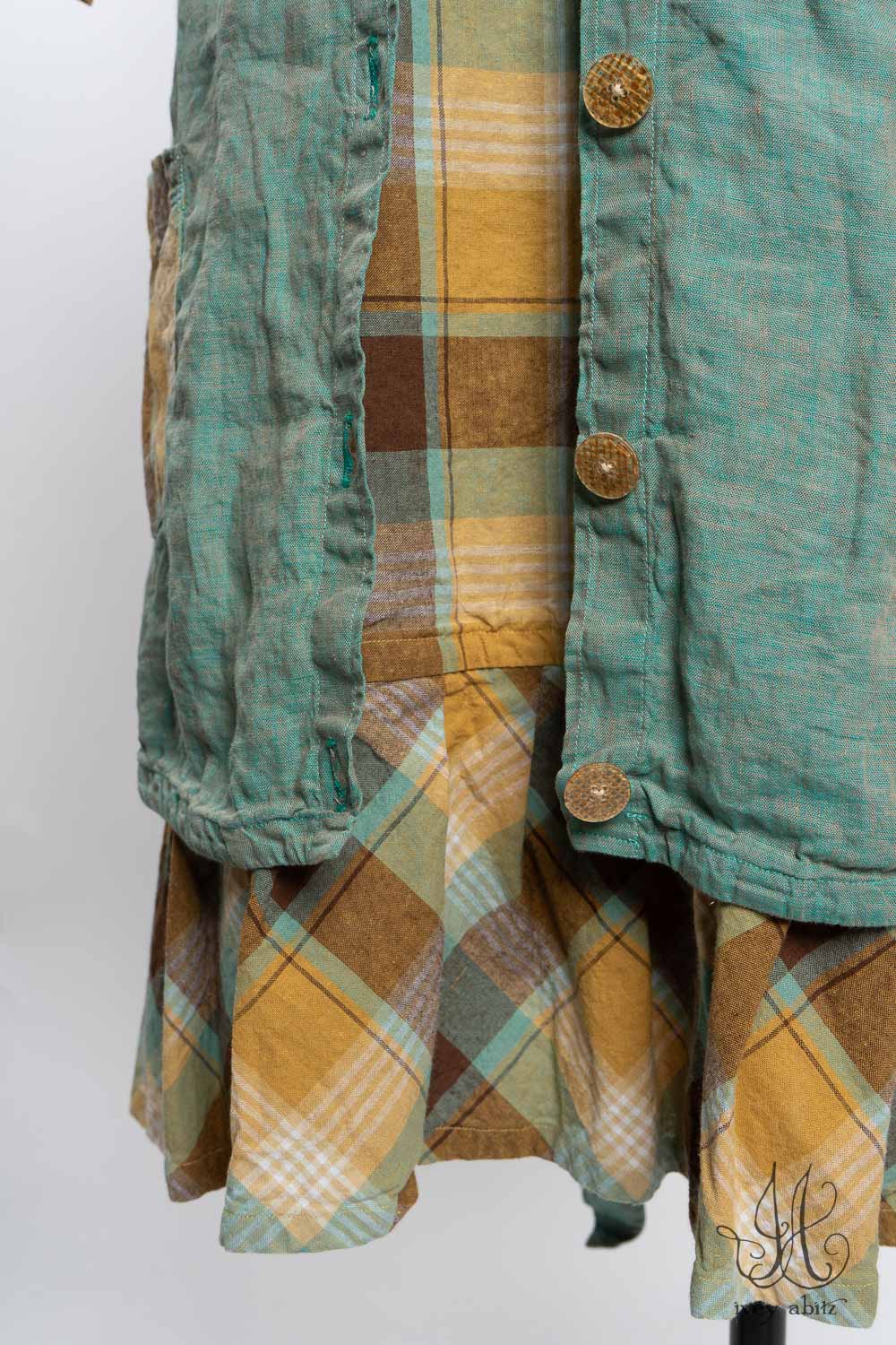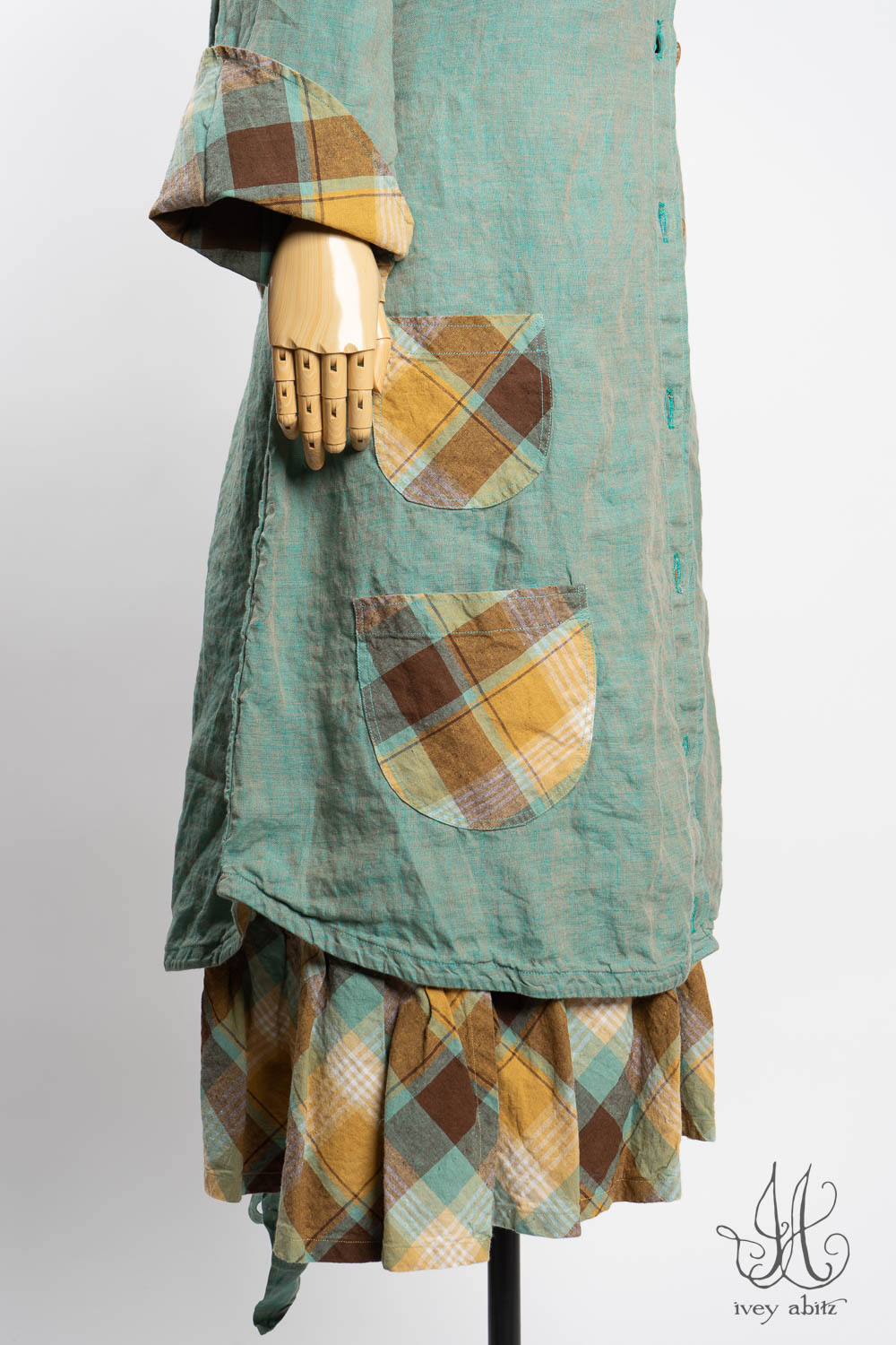 - Rosemarie Duster Coat in Sea Foam Washed Weave with Plaid Detail