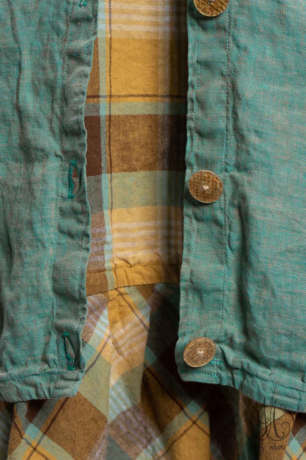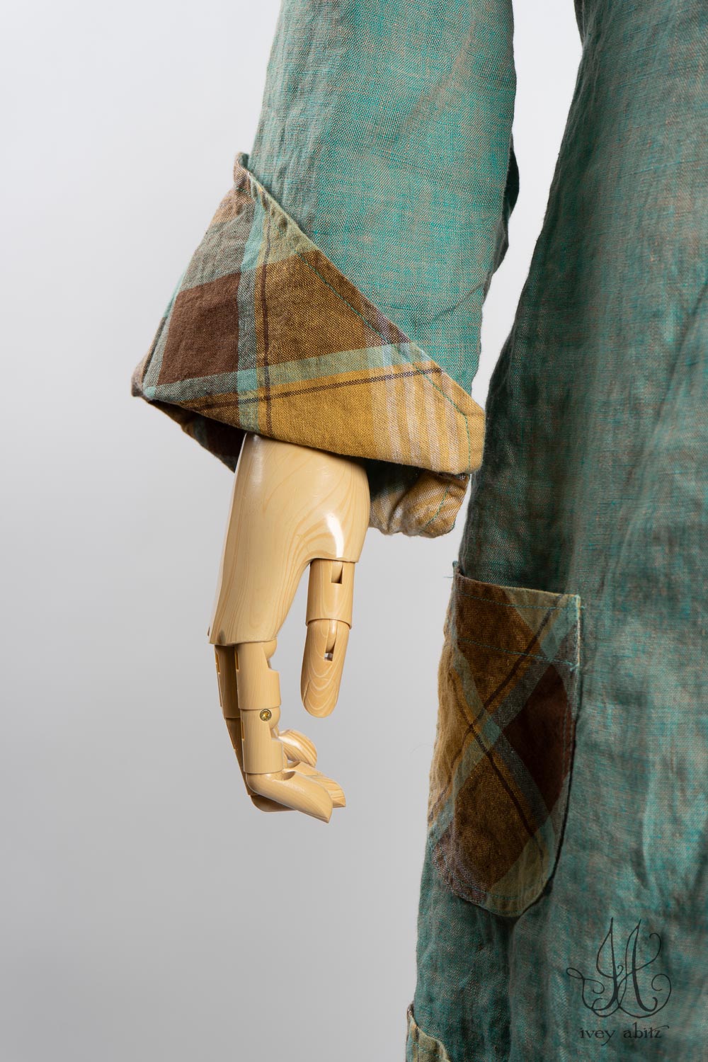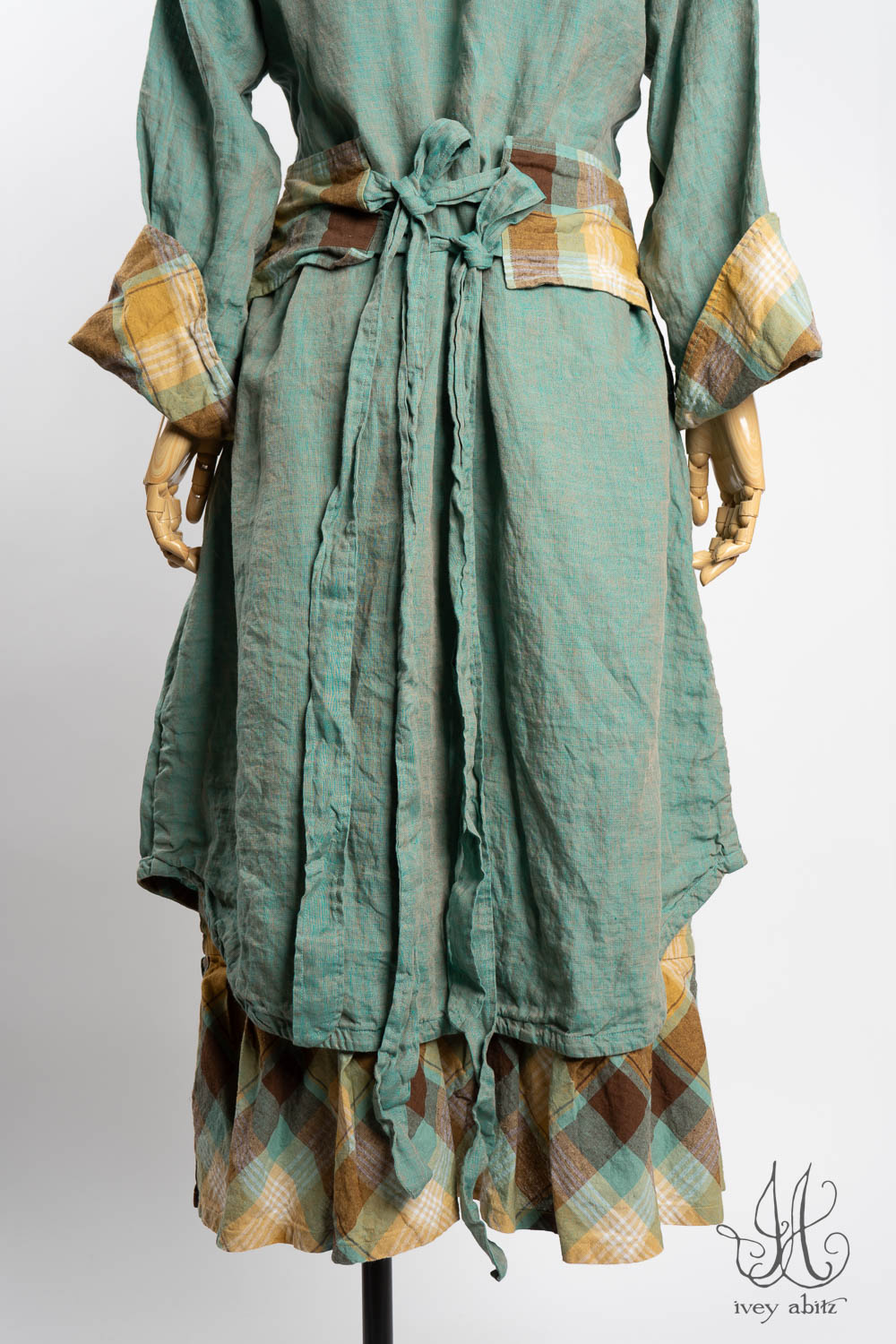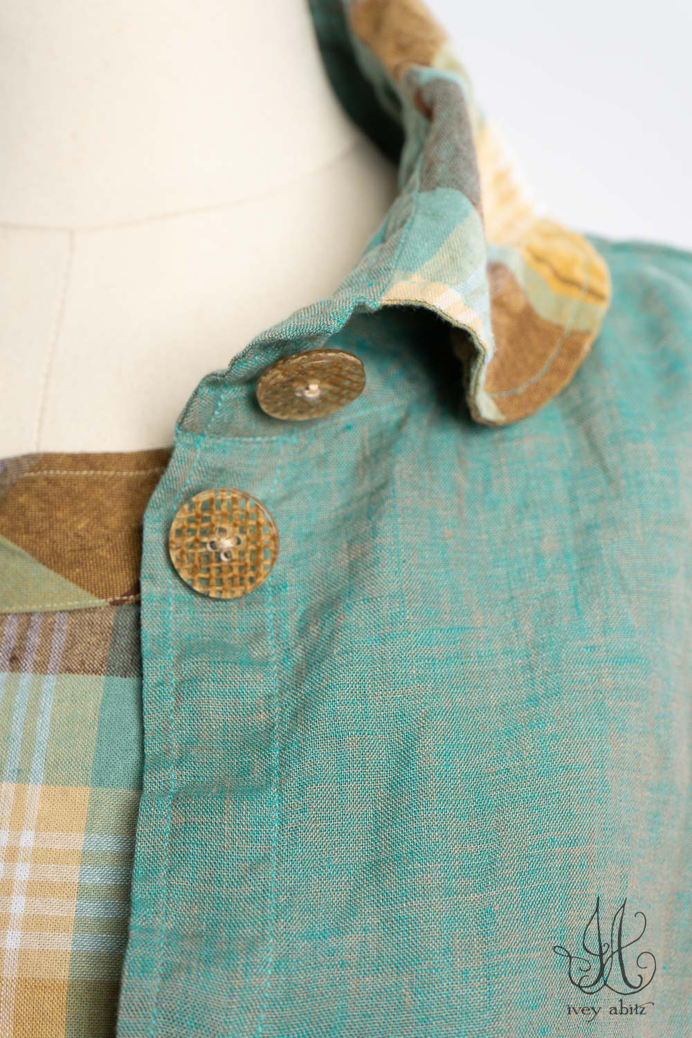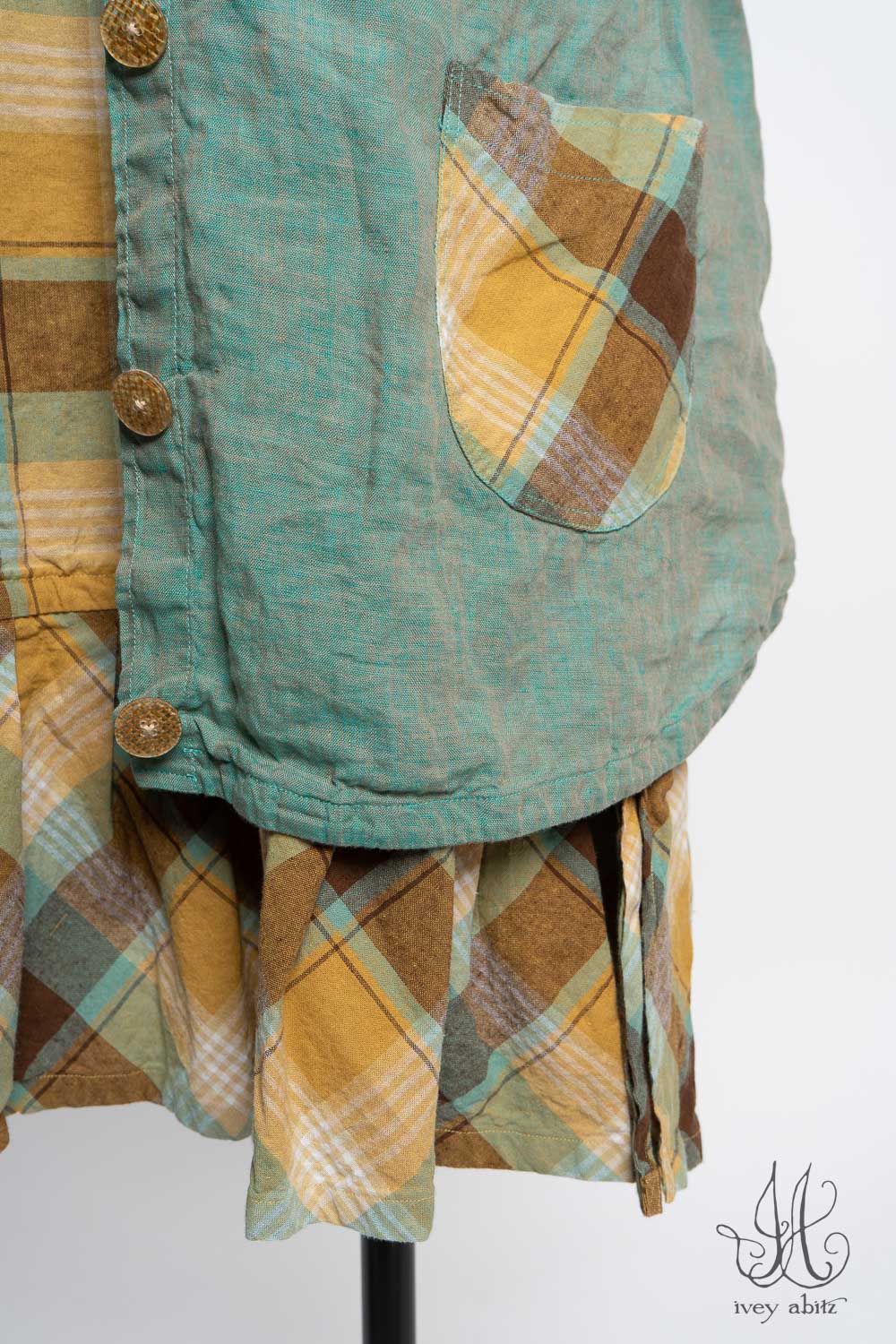 - Rosemarie Duster Coat in Sea Foam Washed Weave with Plaid Detail