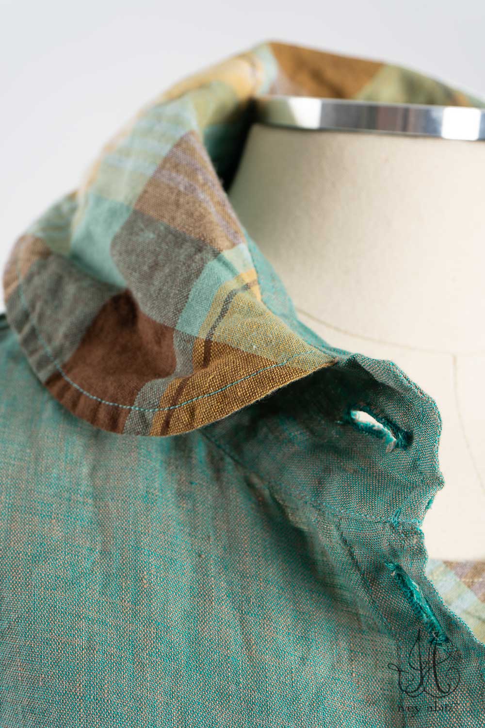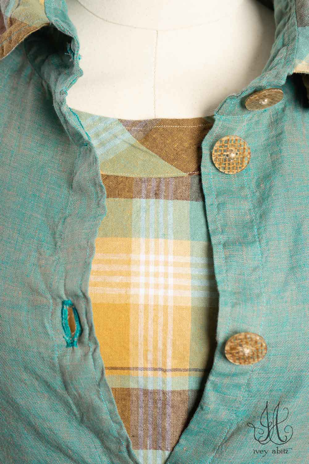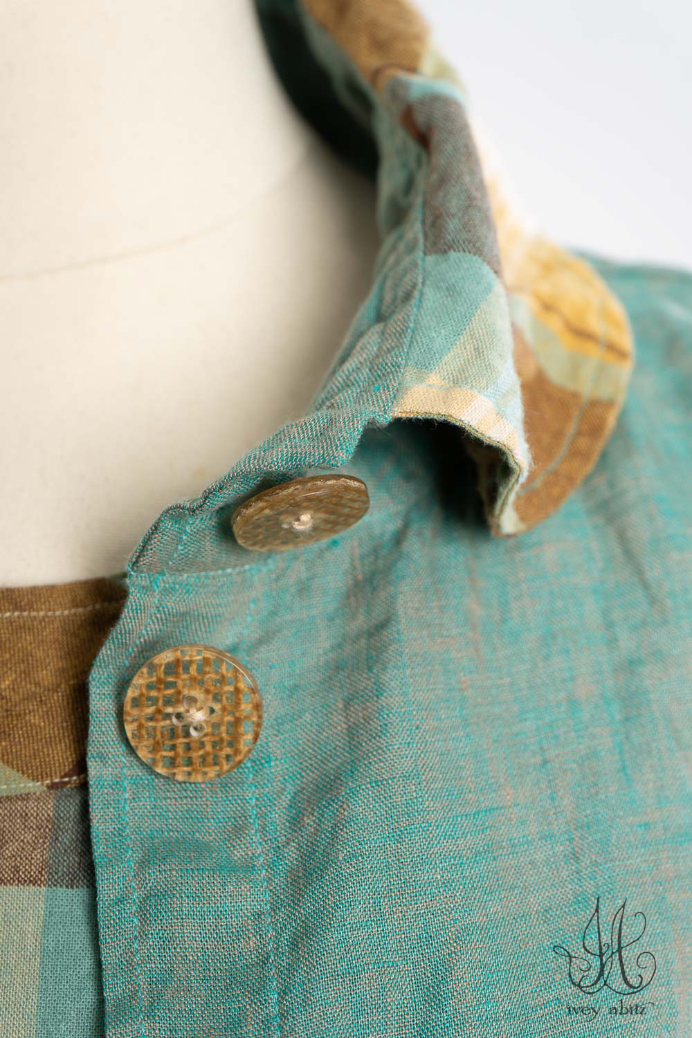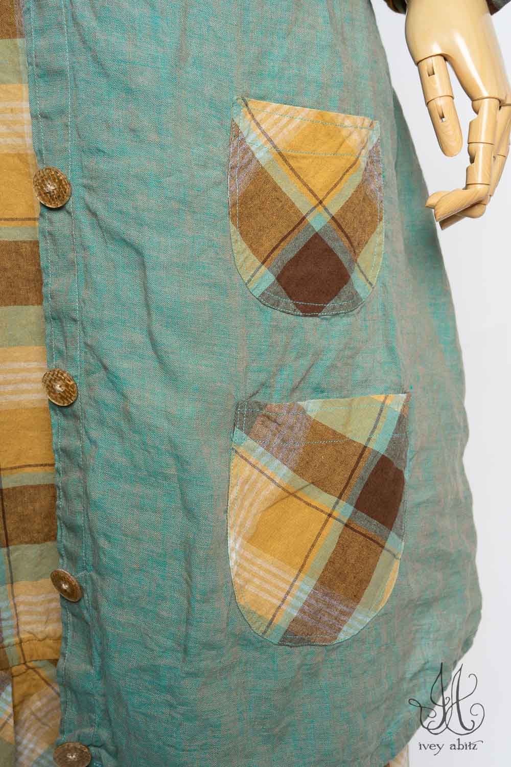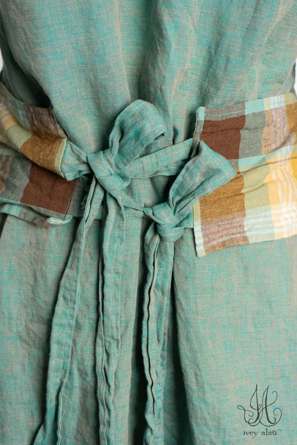 - Rosemarie Duster Coat in Sea Foam Washed Weave with Plaid Detail