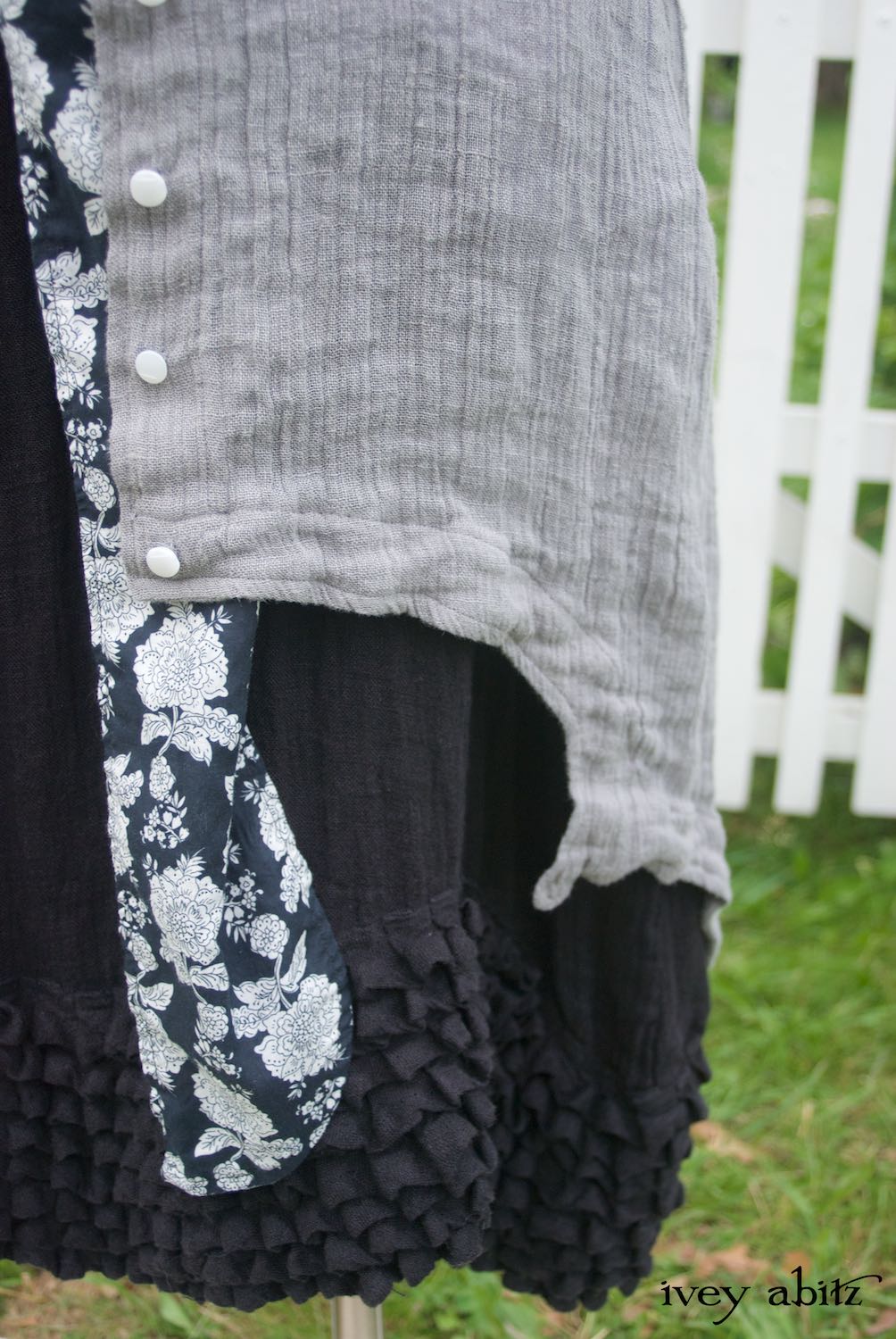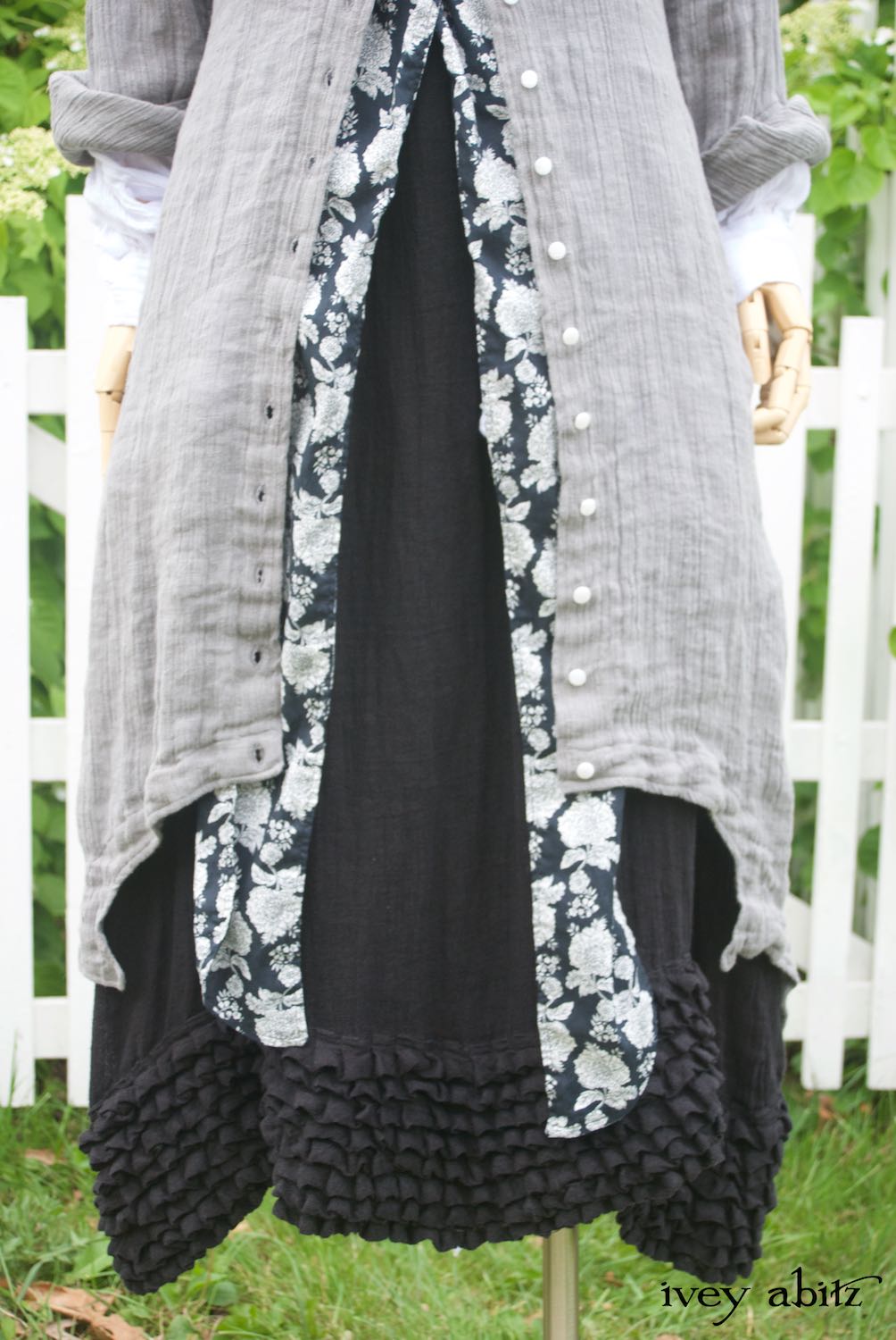 - Thatched Frock in Signature Black Gauzy Linen.