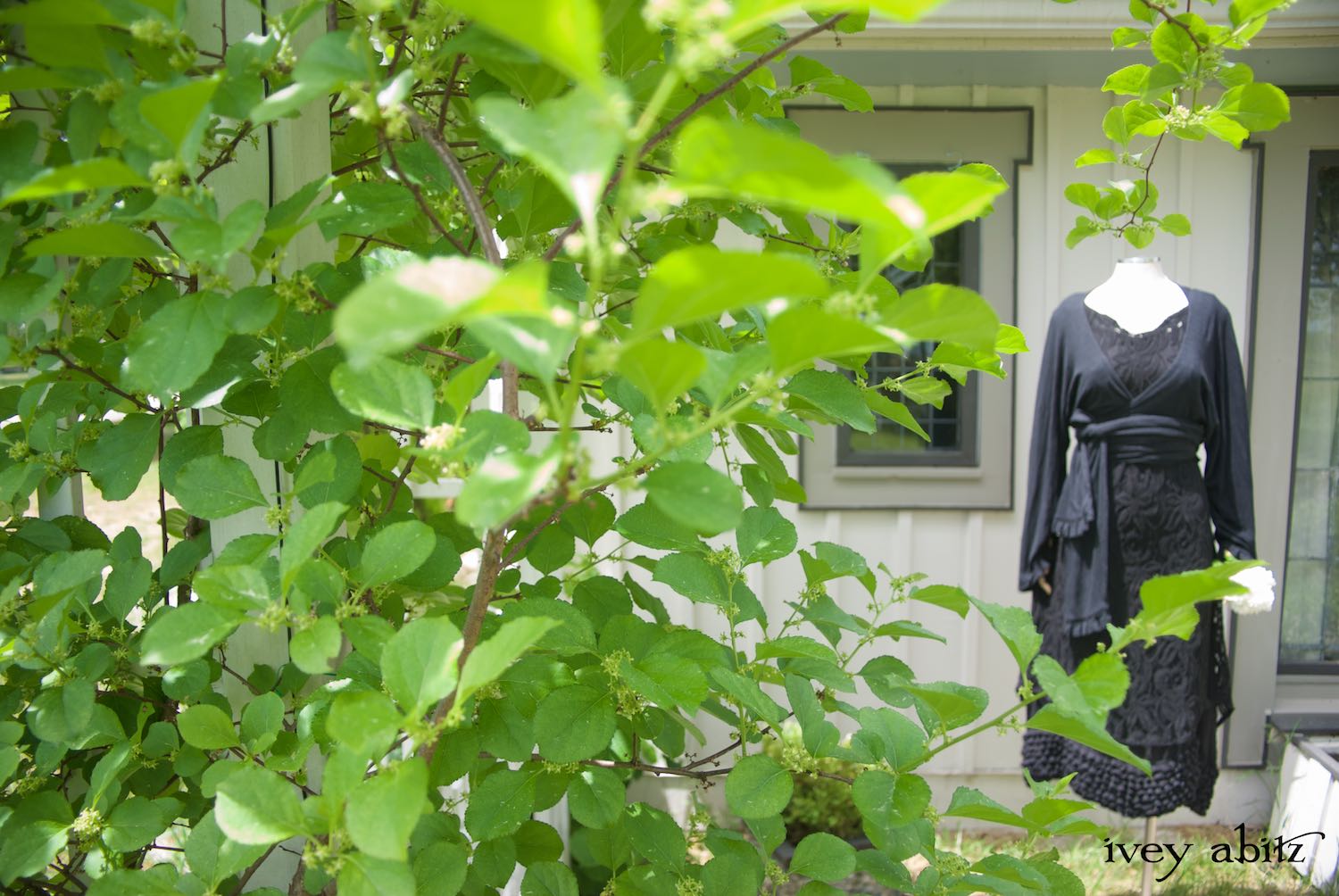 - Thatched Frock in Signature Black Gauzy Linen.