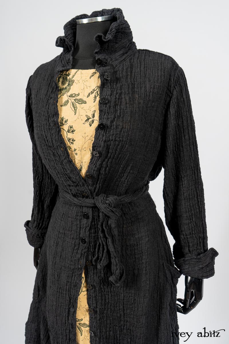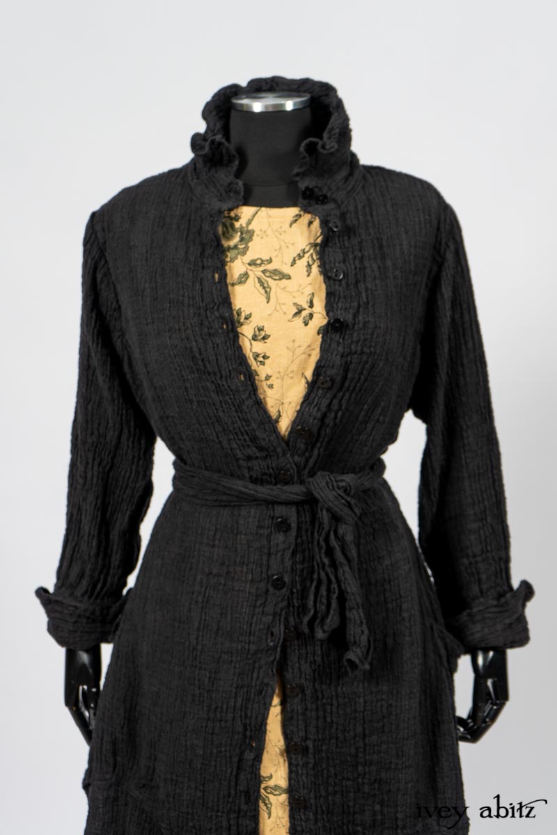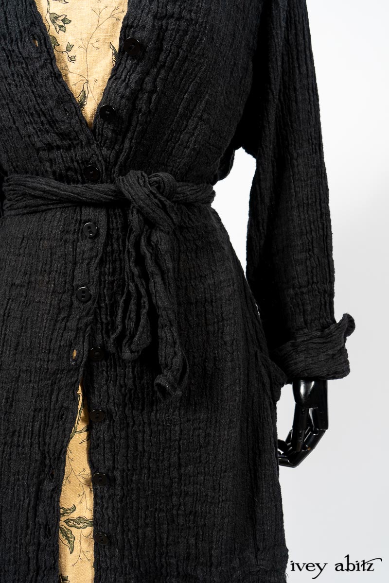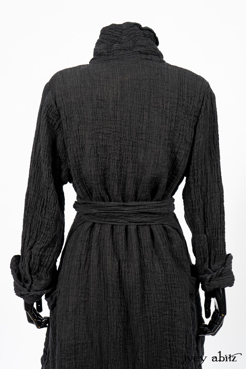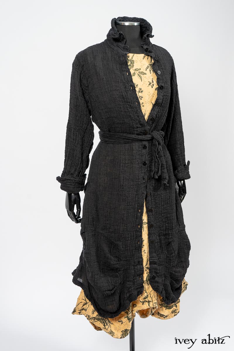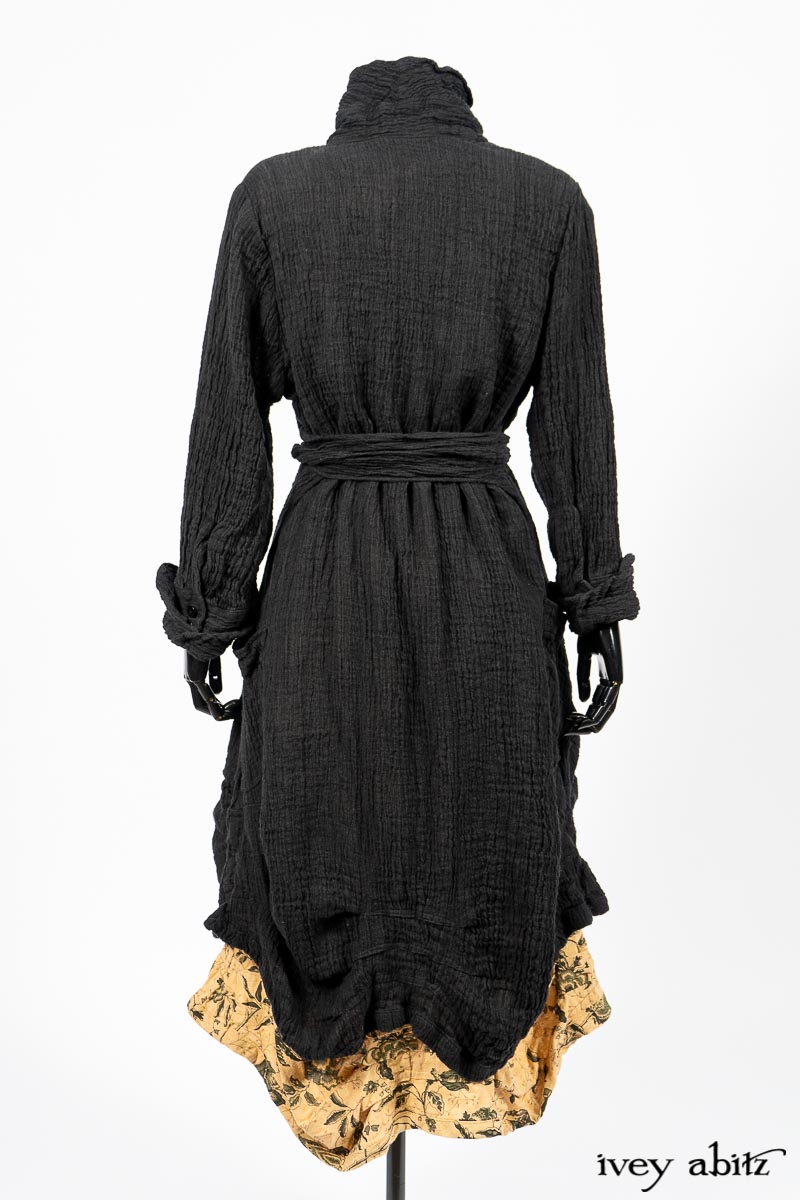 Scattergood Duster Coat in Black Crinkled Washed Linen