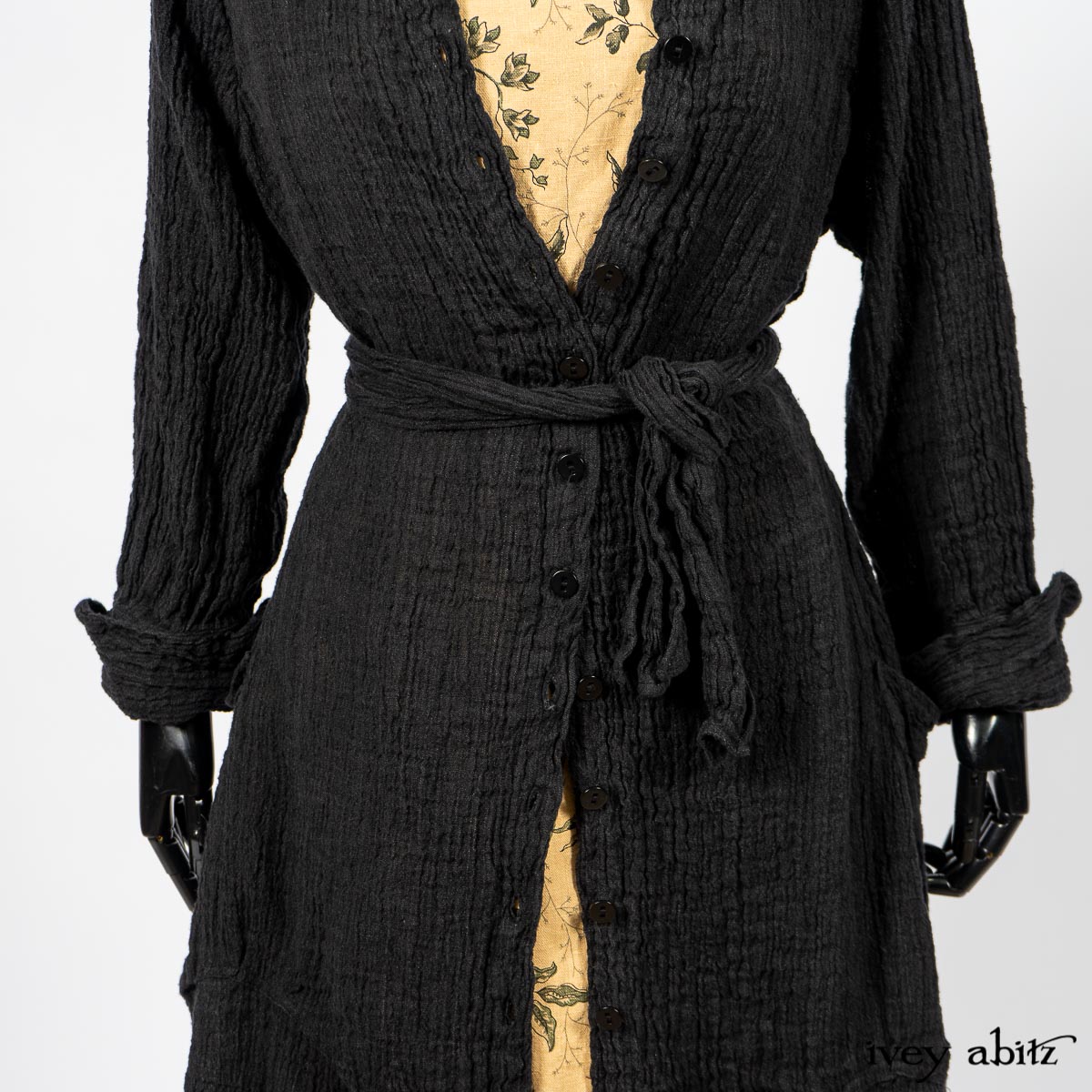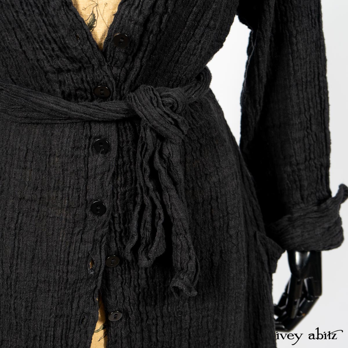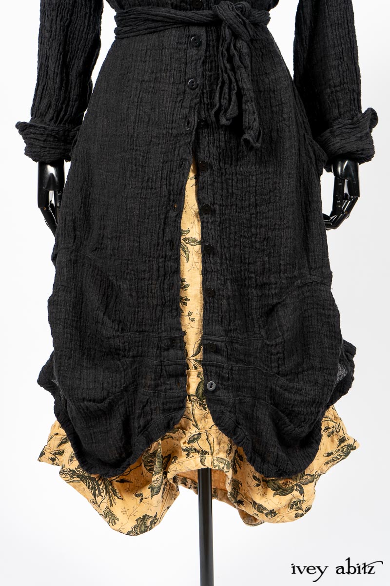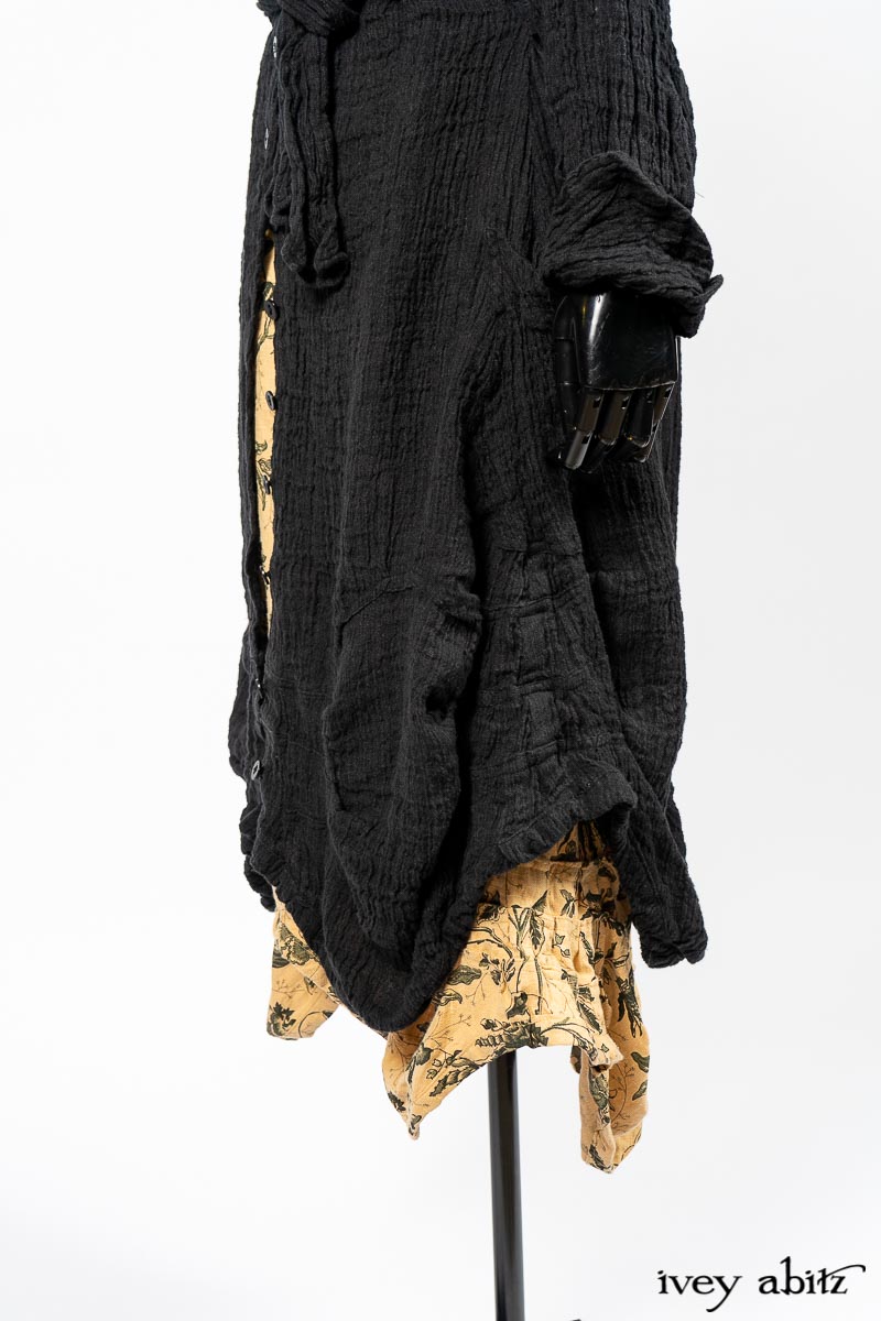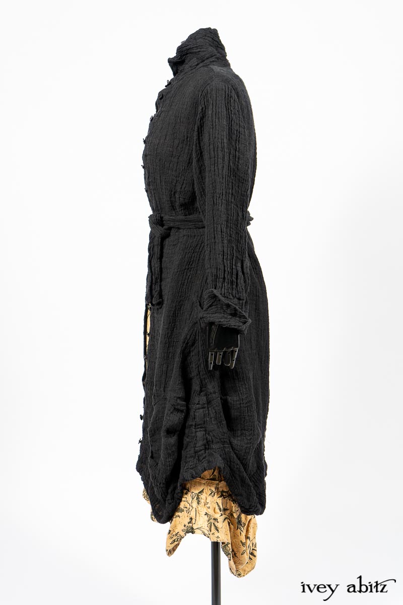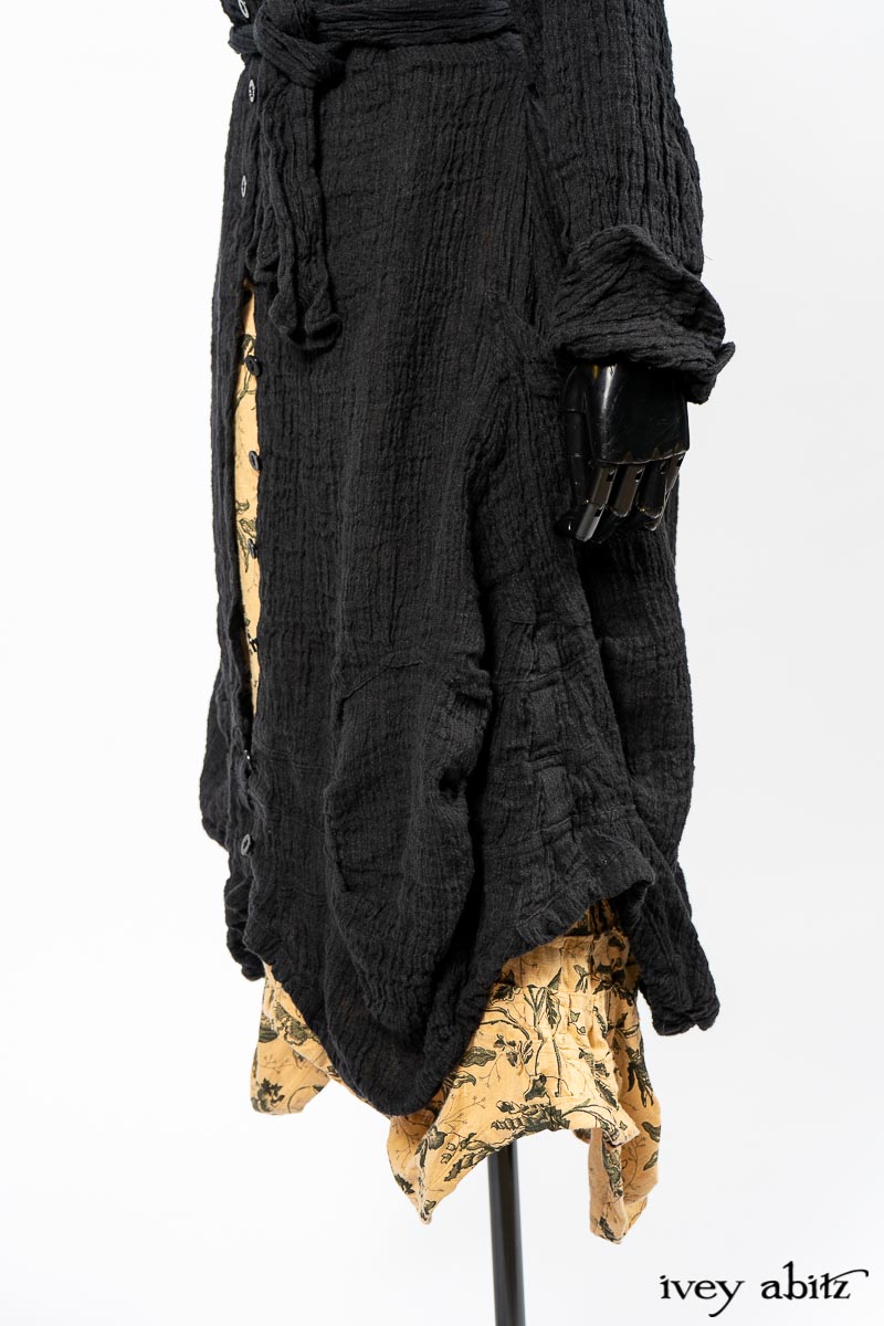 Scattergood Duster Coat in Black Crinkled Washed Linen