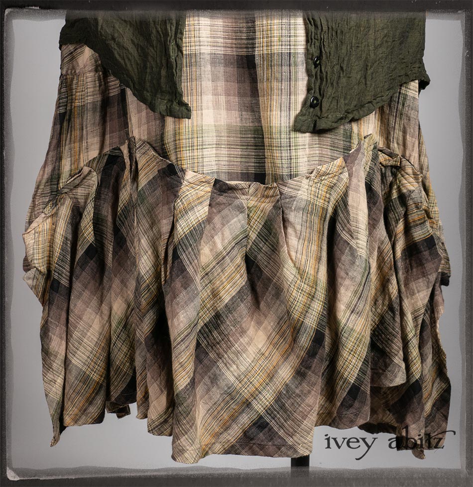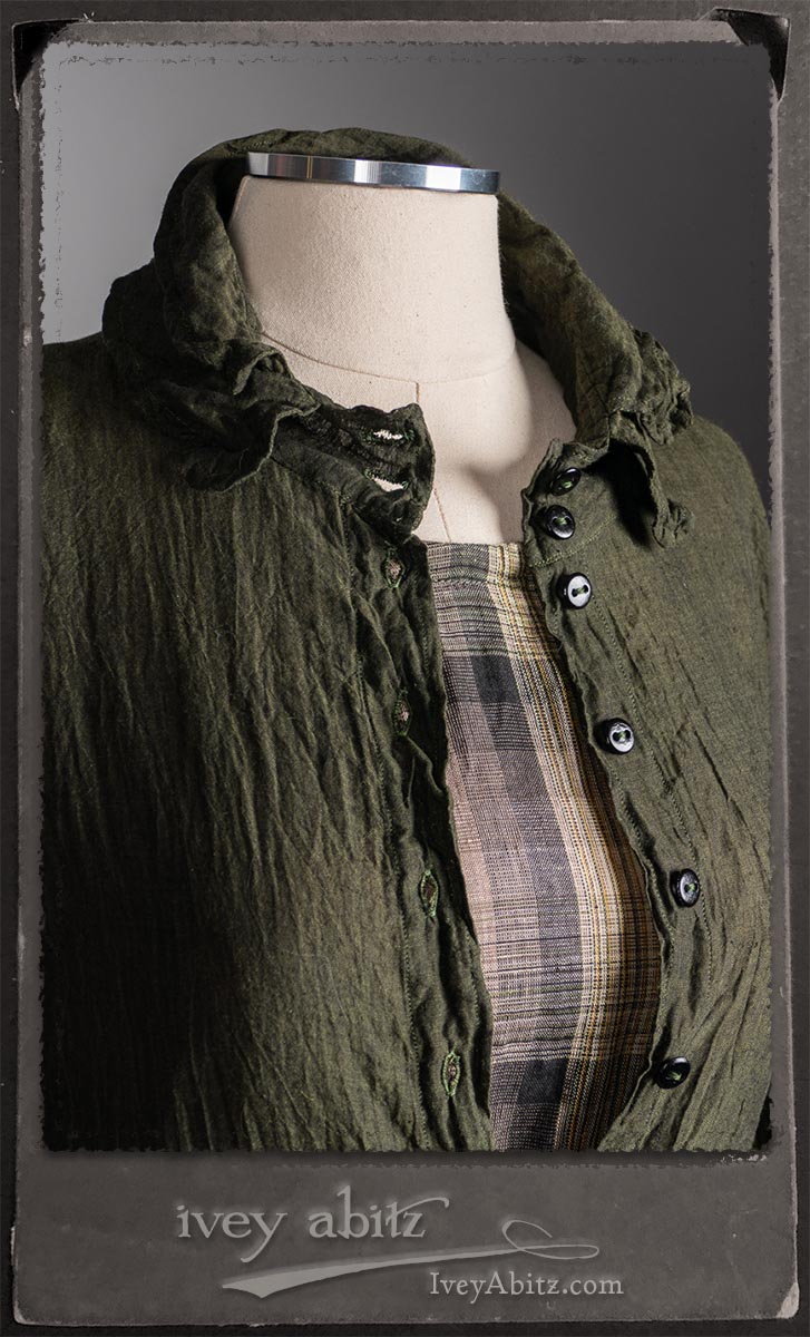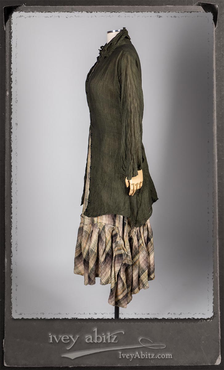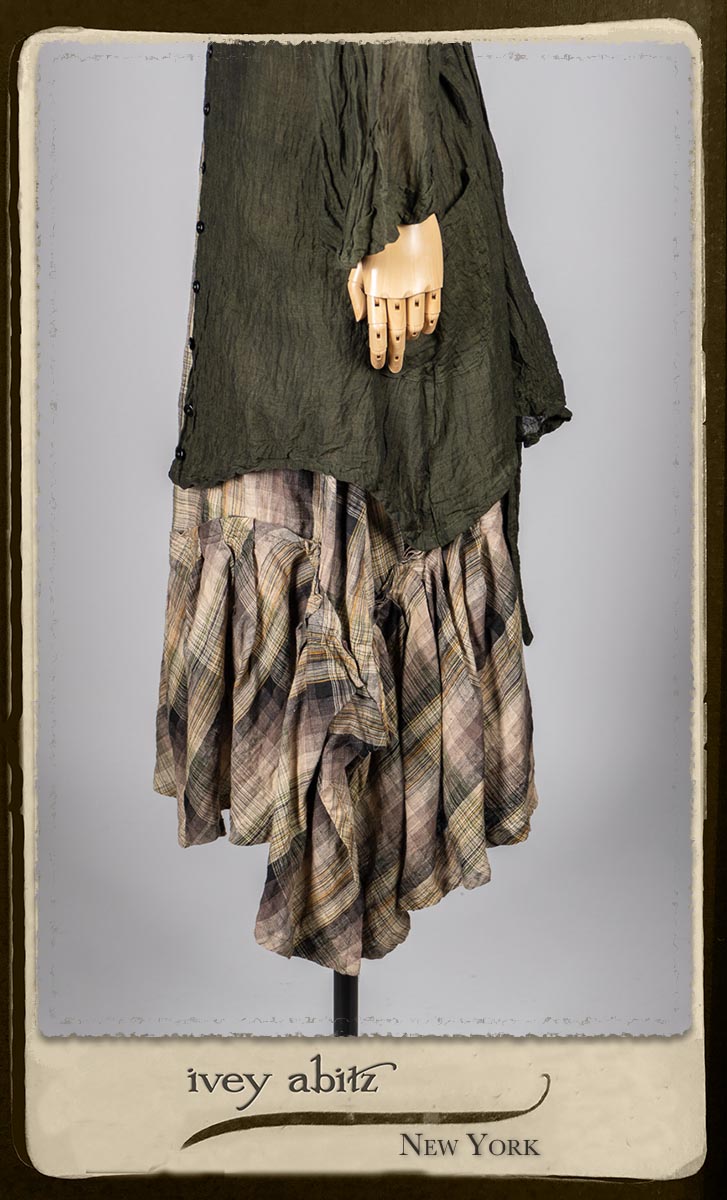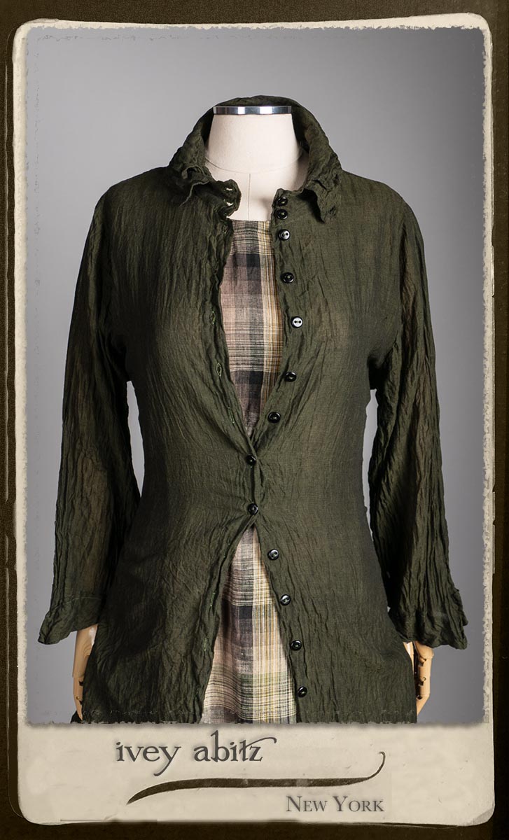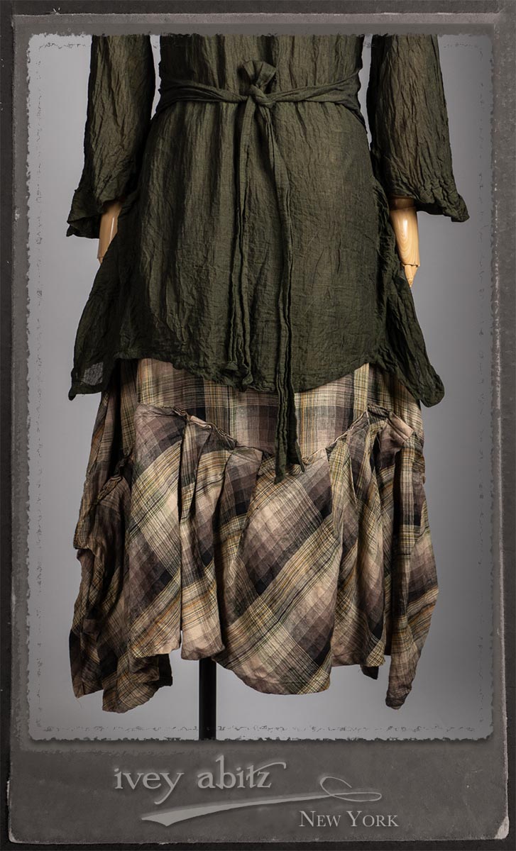 Inglenook Shirt Jacket in Signature Arthurian Green Washed Voile; Fairholme Frock in Garden Plaid Linen.