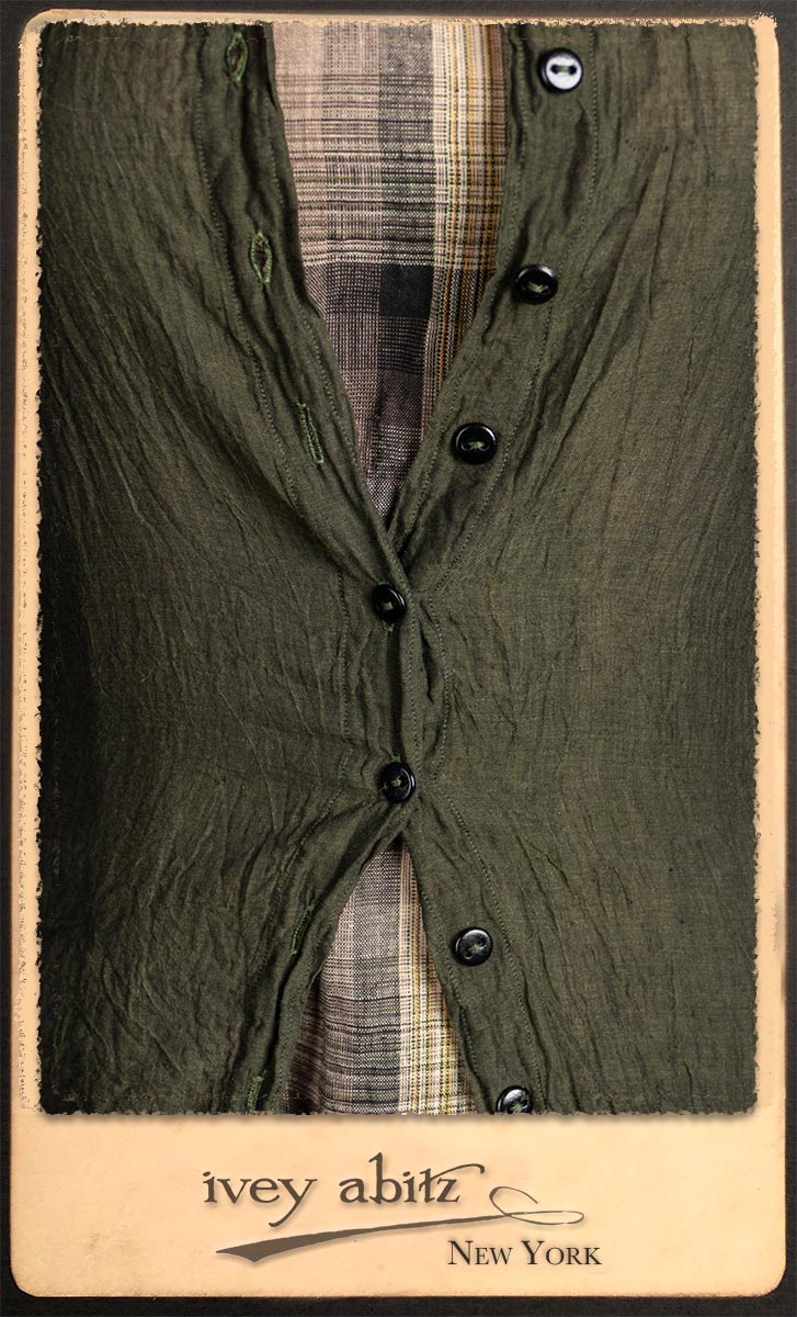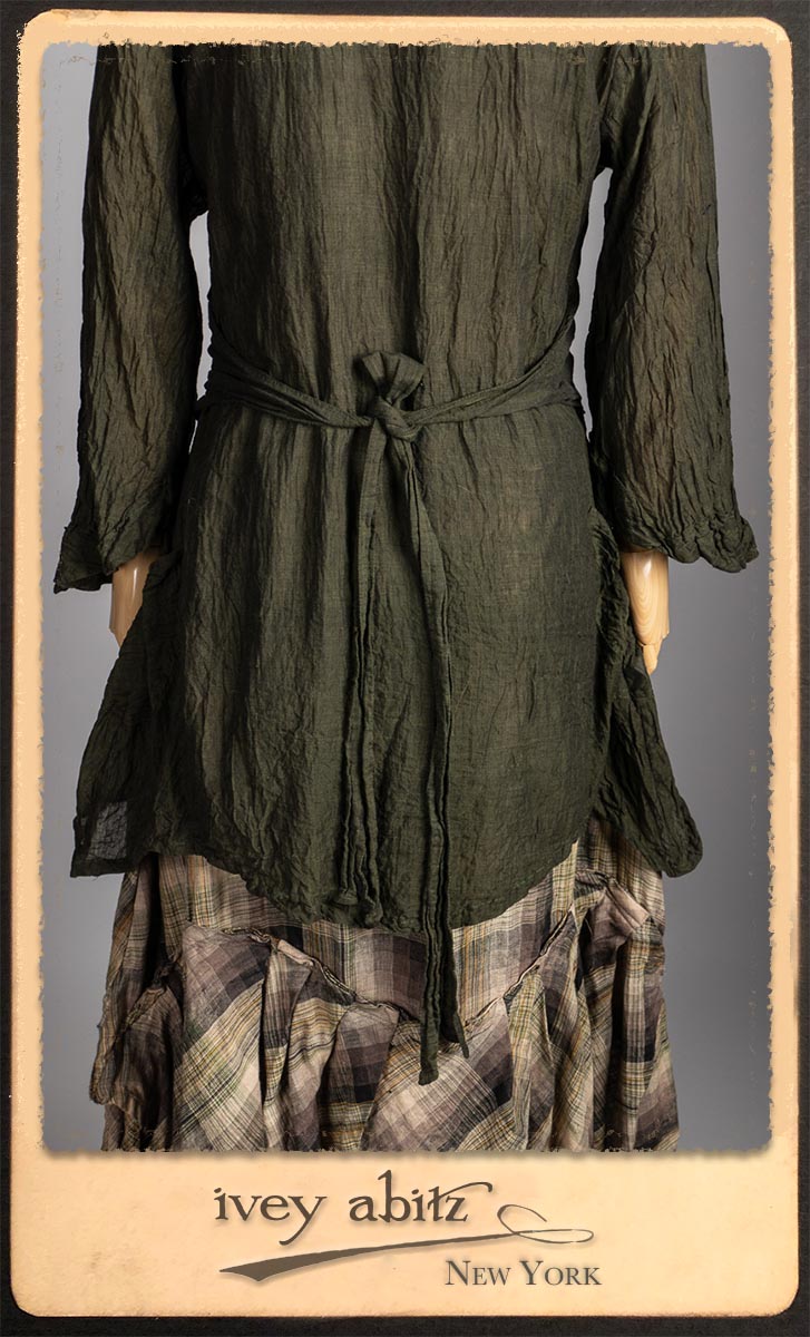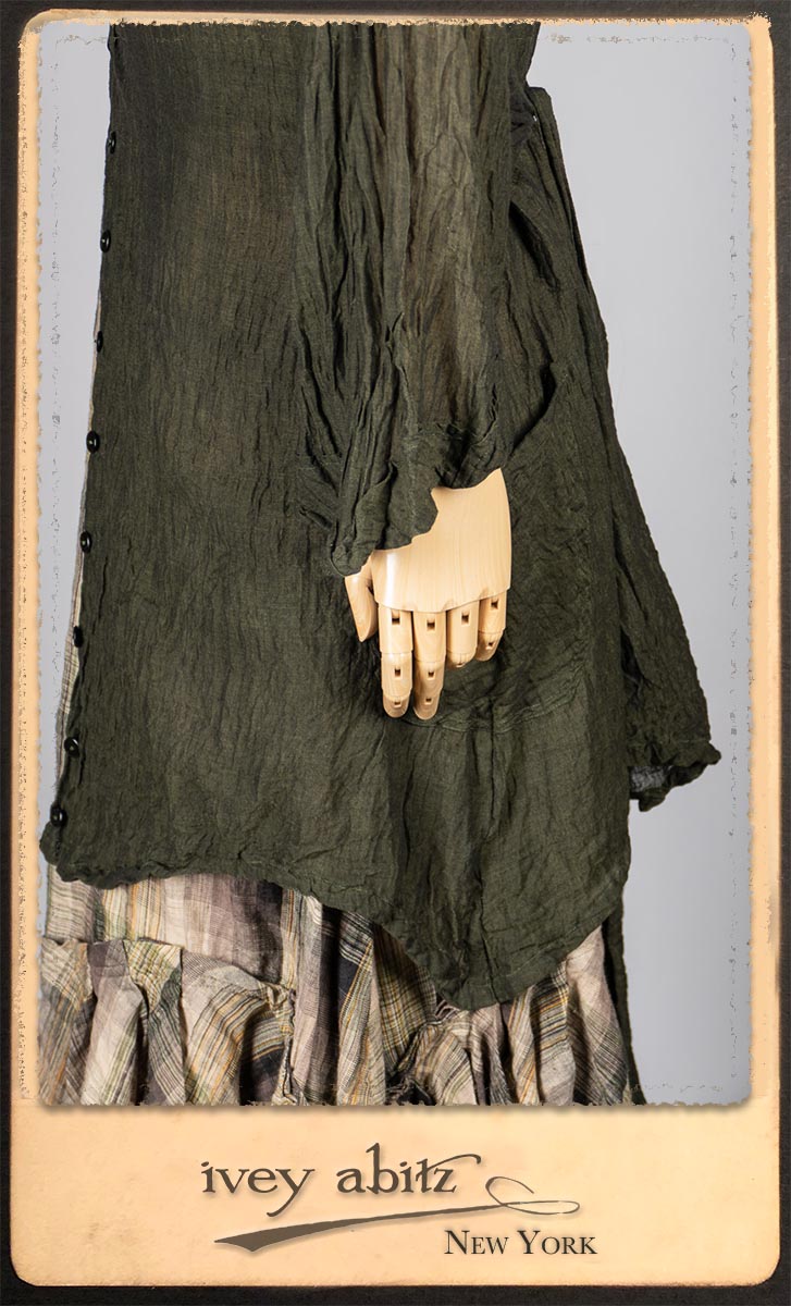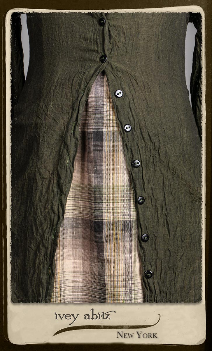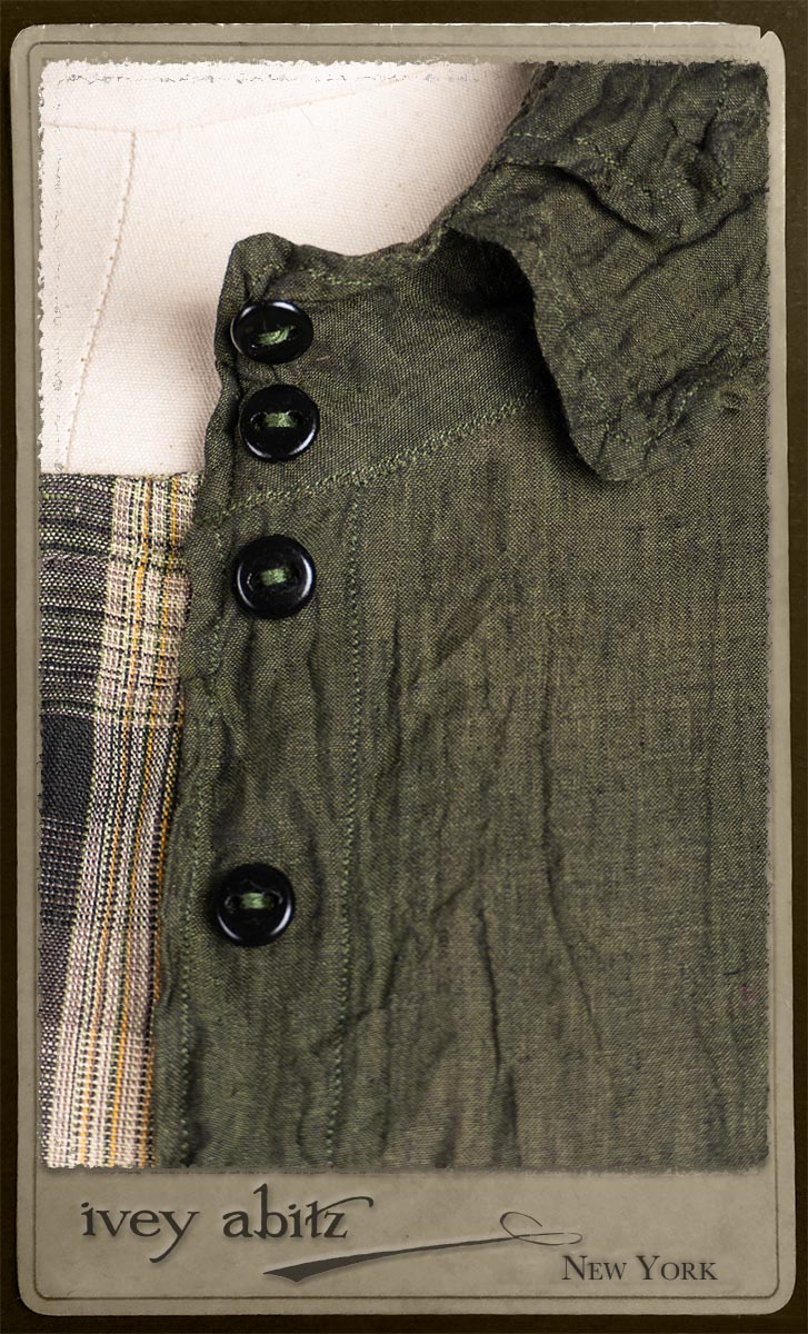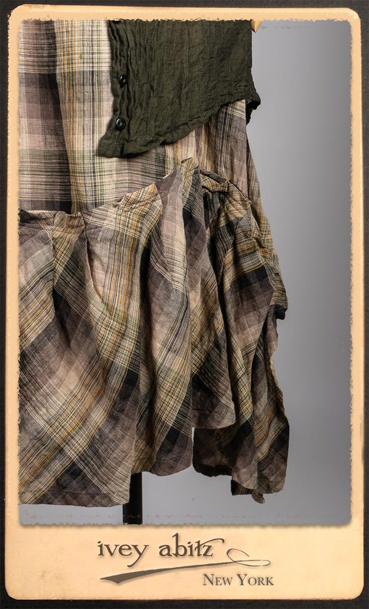Inglenook Shirt Jacket in Signature Arthurian Green Washed Voile; Fairholme Frock in Garden Plaid Linen.