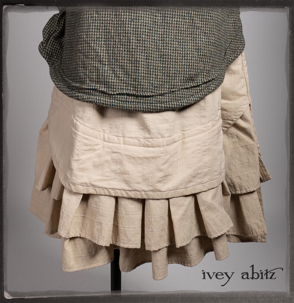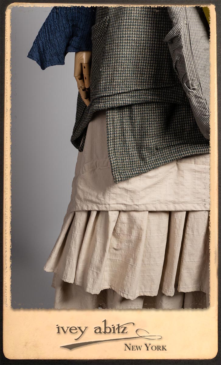 Crest Jacket in Hudson Blue Washed Crinkled Linen; Clotaire Sash in Express Line Crinkled Weave; Solomon Bag in Slate Petite Check Coating; Camille Frock in Woodland Trail Houndstooth Wool; Everett Skirt in Uptown Raised Stripe Weave.
