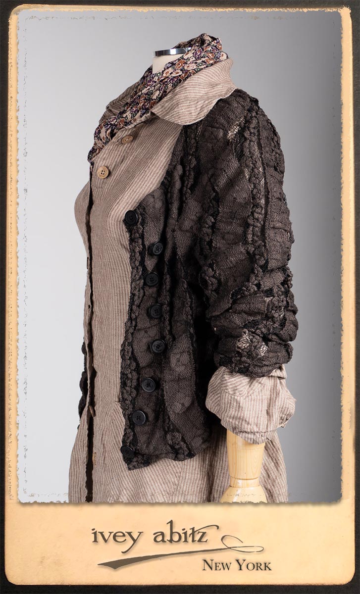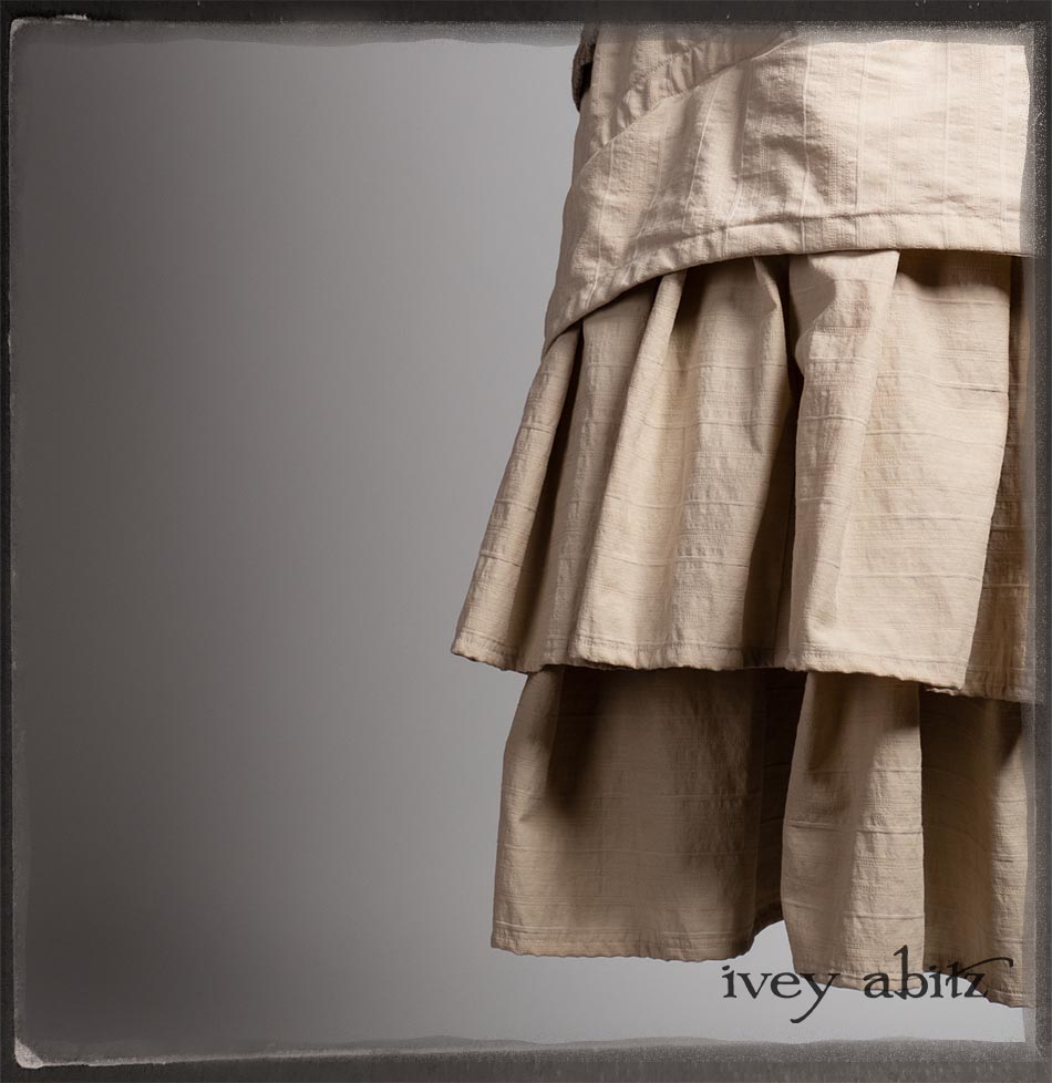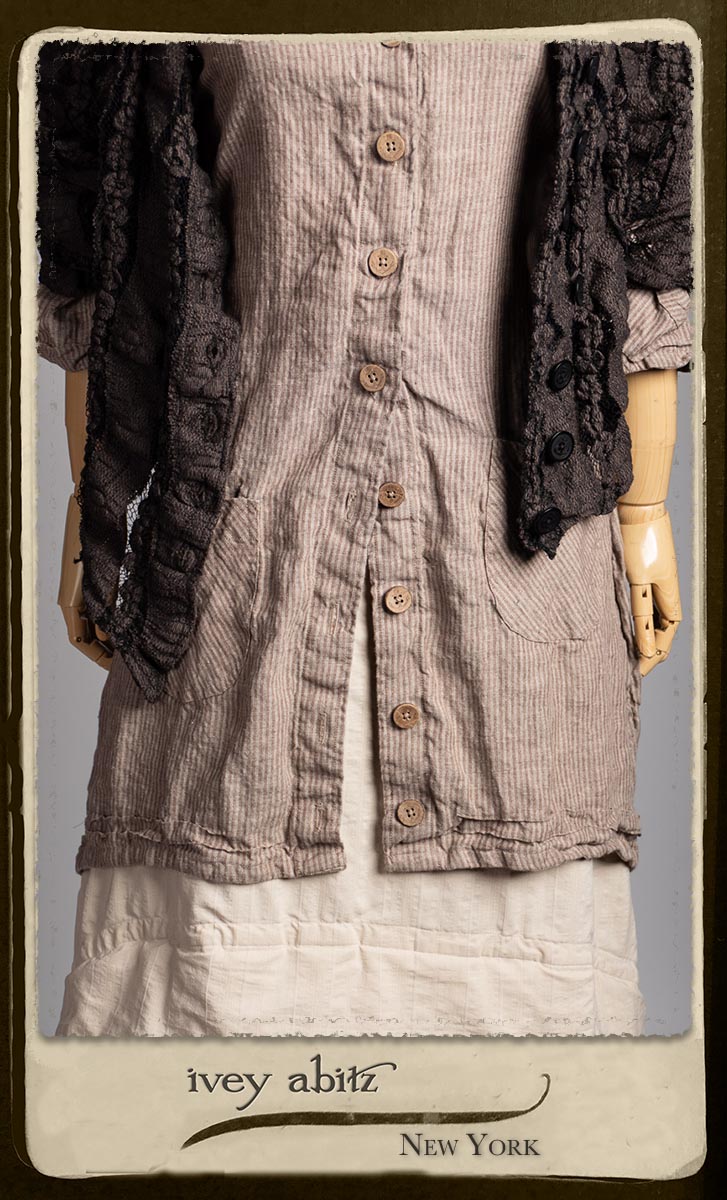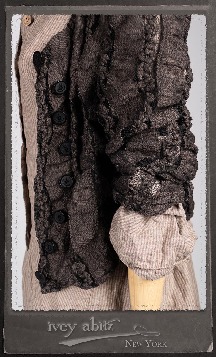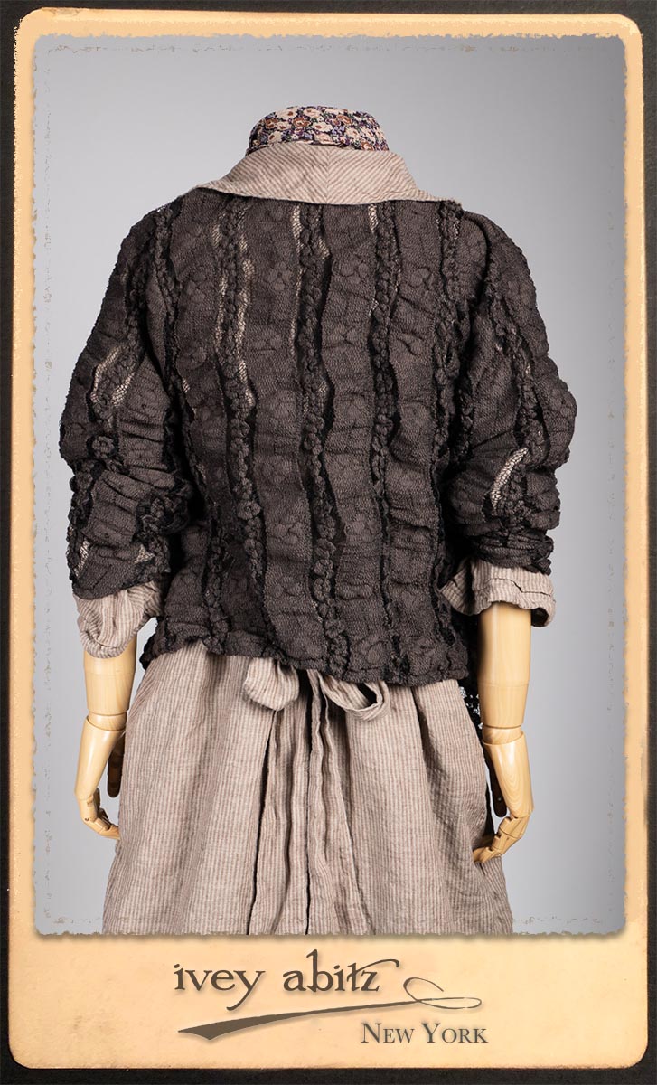 Amorette Shirt Jacket in Earthen Washed Stripe Linen; Everett Skirt in Uptown Raised Stripe Weave; Elliot Jacket in Earthen Floral Wavy Stripe Knit; Blanchefleur Sash in Riverboat Floral Silk Chiffon.