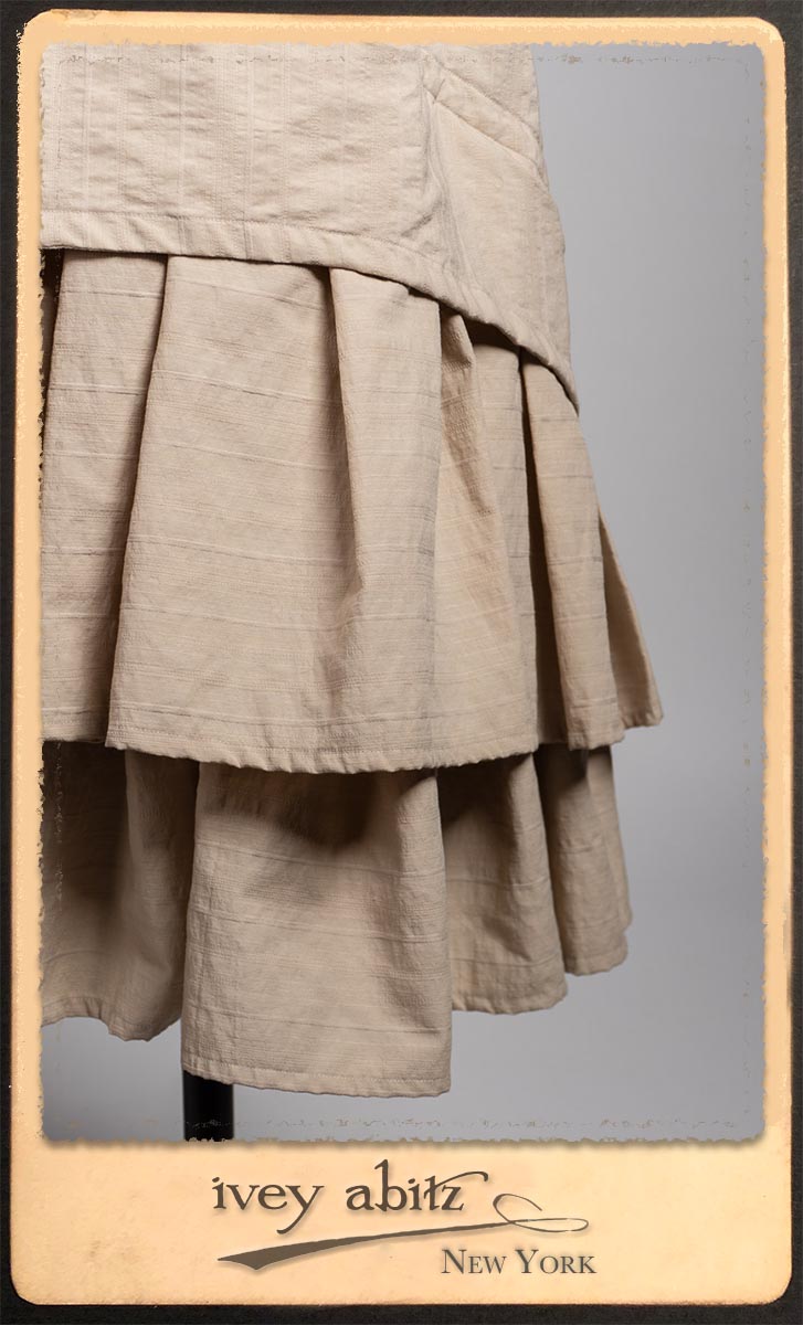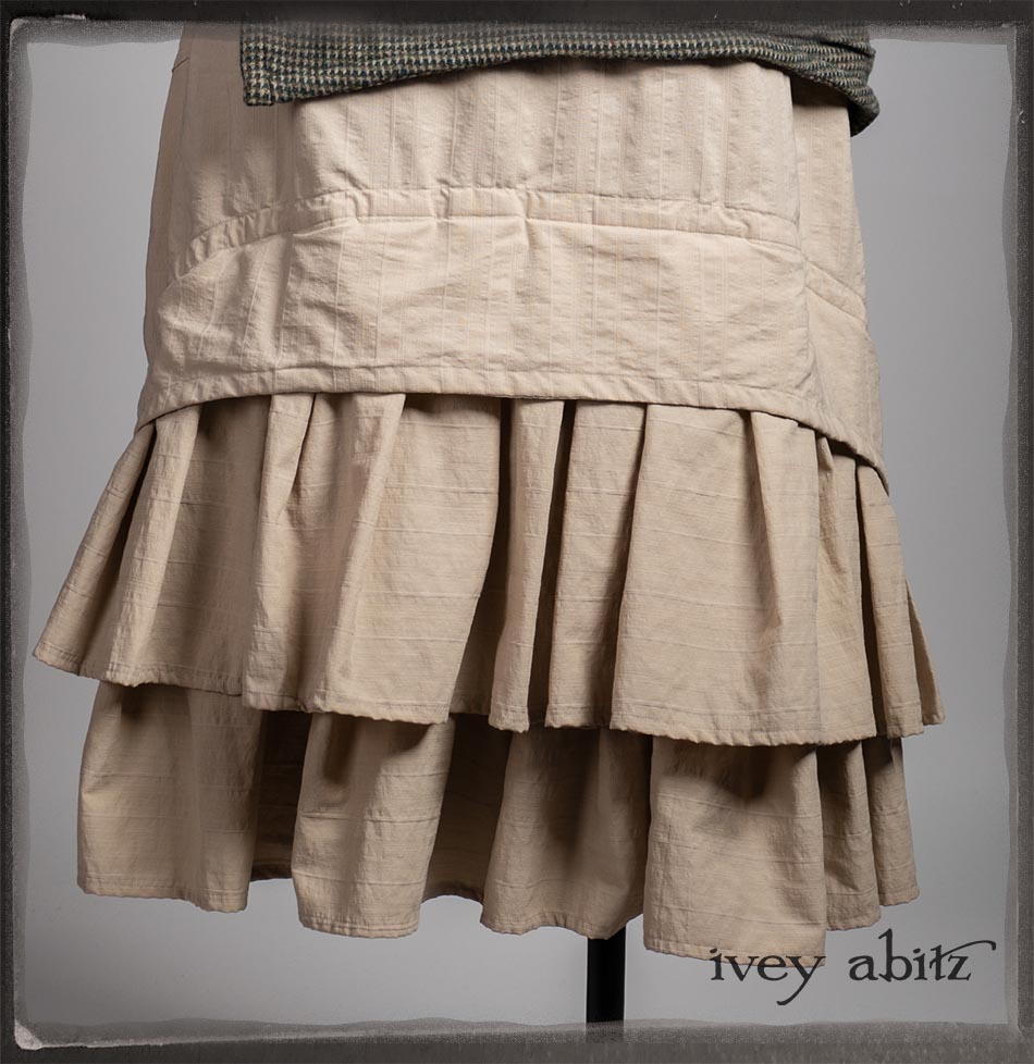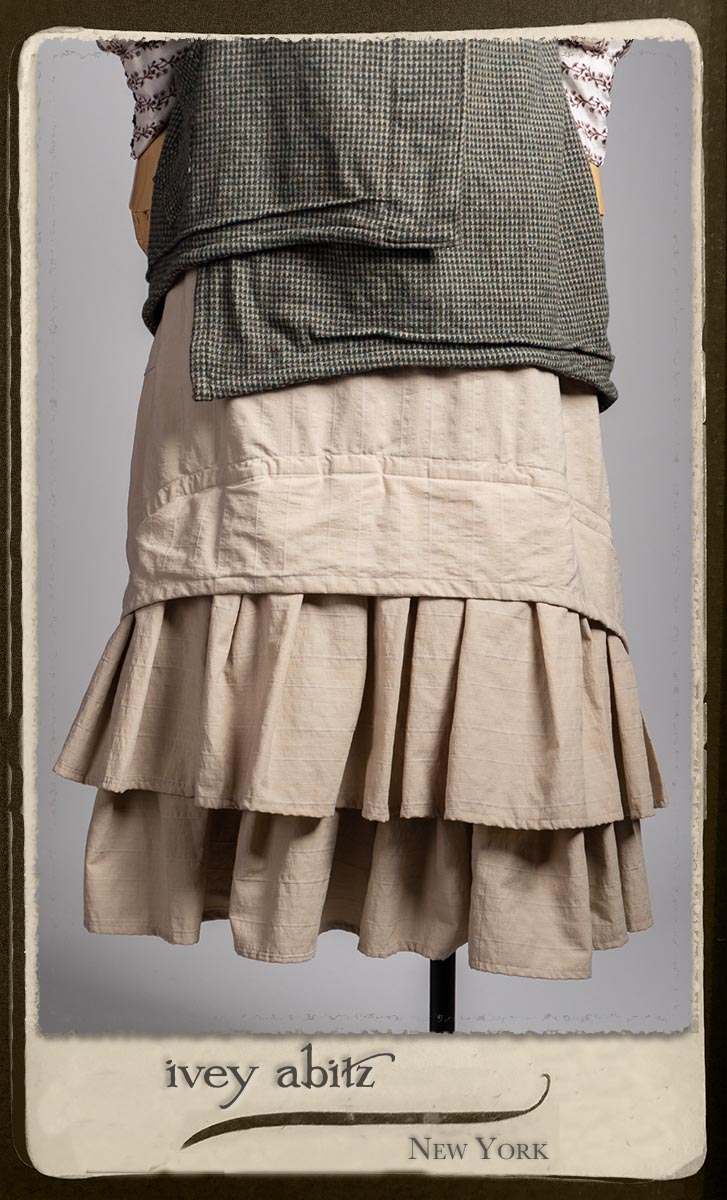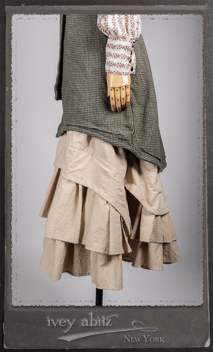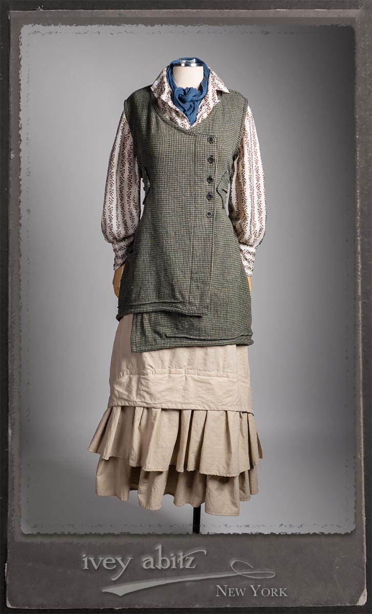 Truitt Shirt in Dignity Washed Vine Silk; Clotaire Sash in Express Line Crinkled Weave; Everett Skirt in Uptown Raised Stripe Weave.