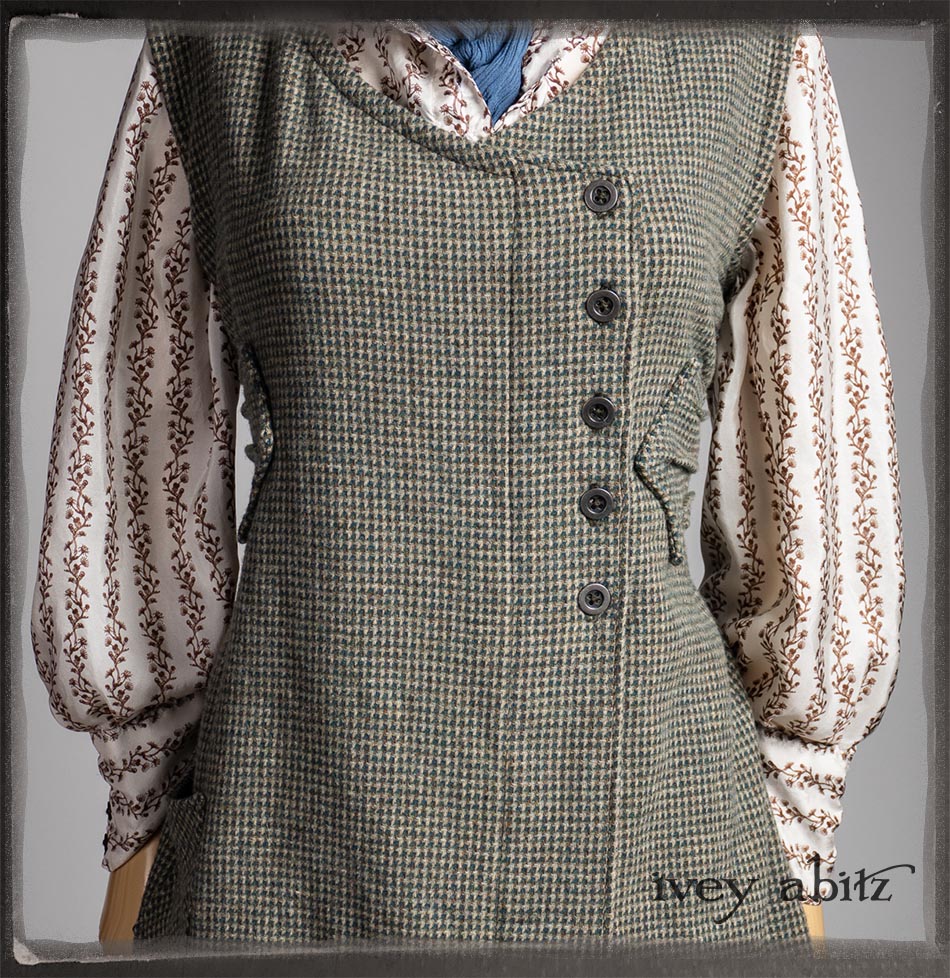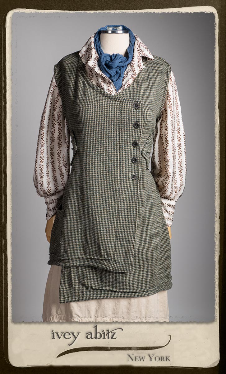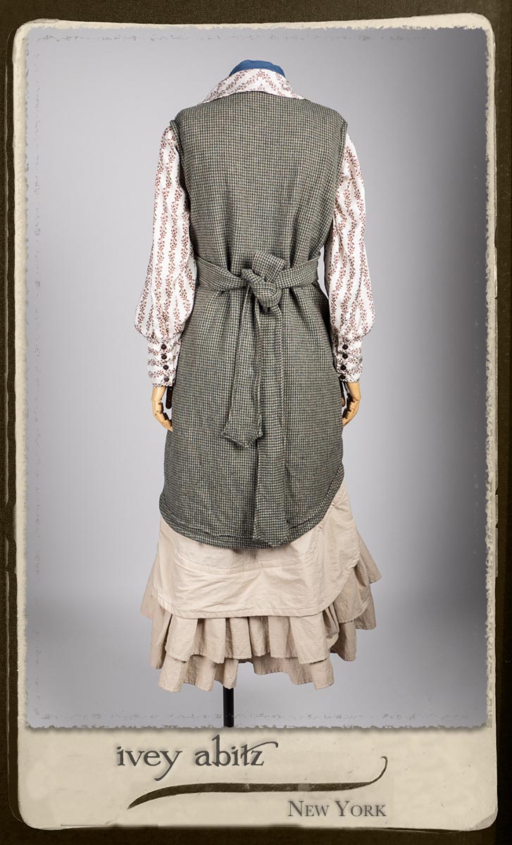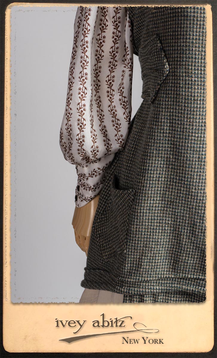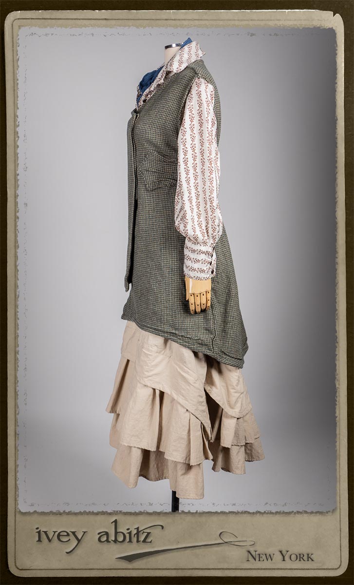 Truitt Shirt in Dignity Washed Vine Silk; Clotaire Sash in Express Line Crinkled Weave; Everett Skirt in Uptown Raised Stripe Weave.