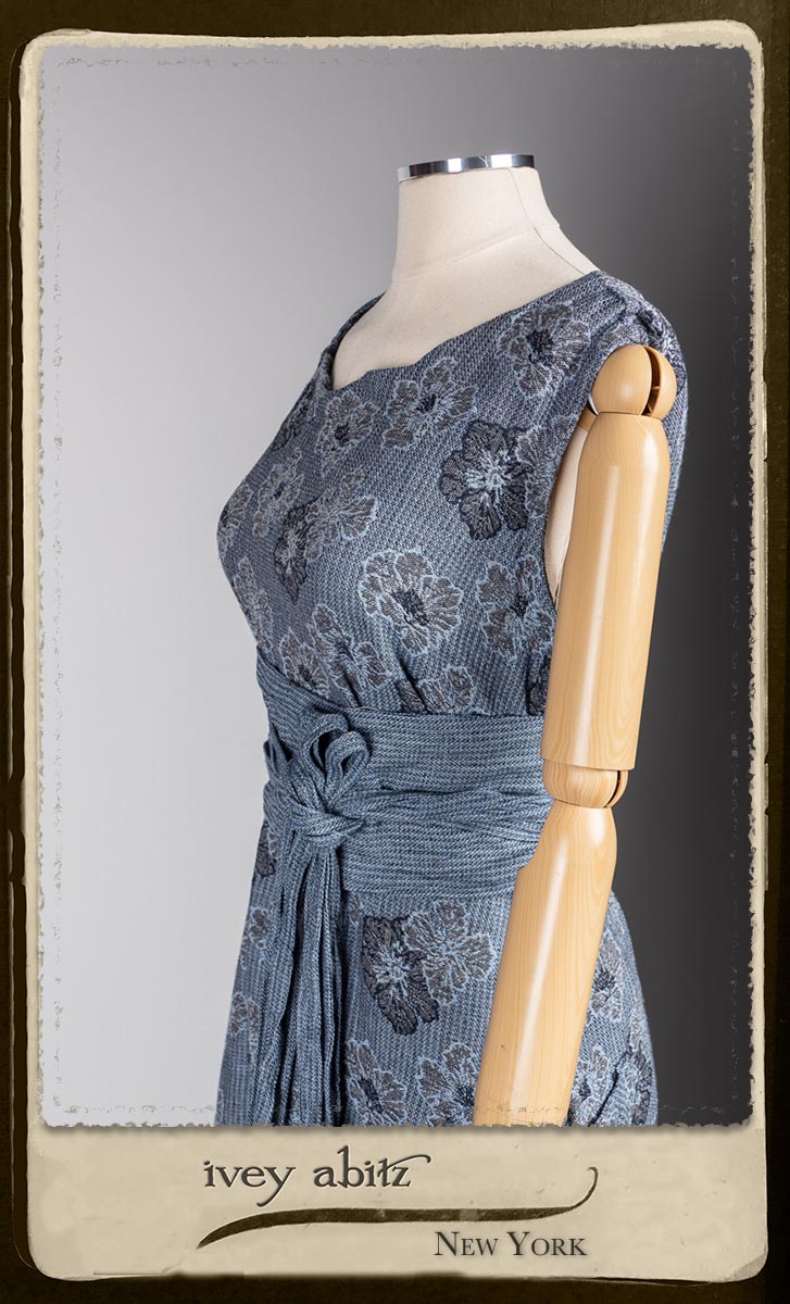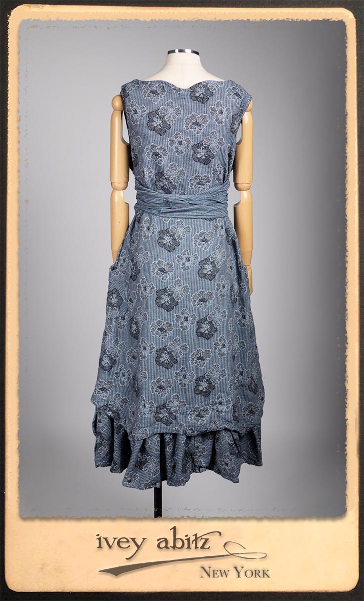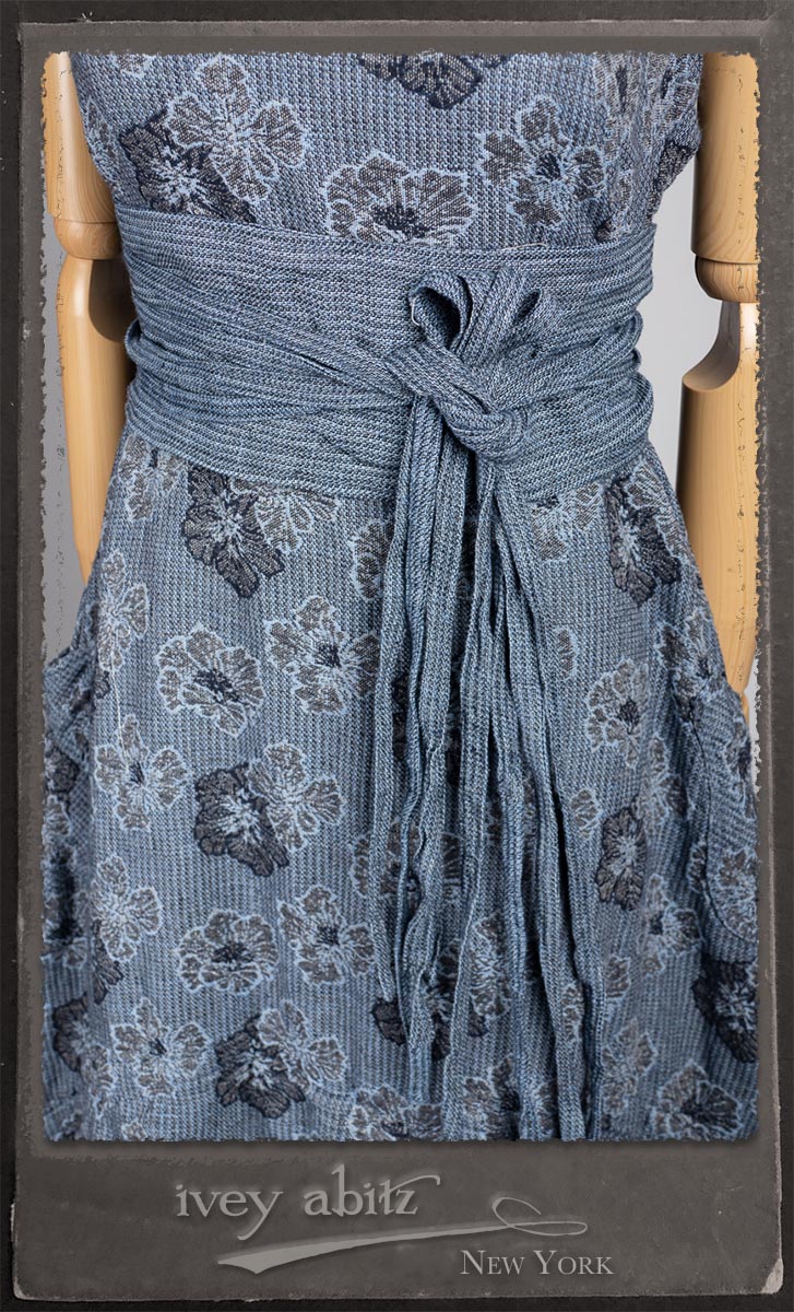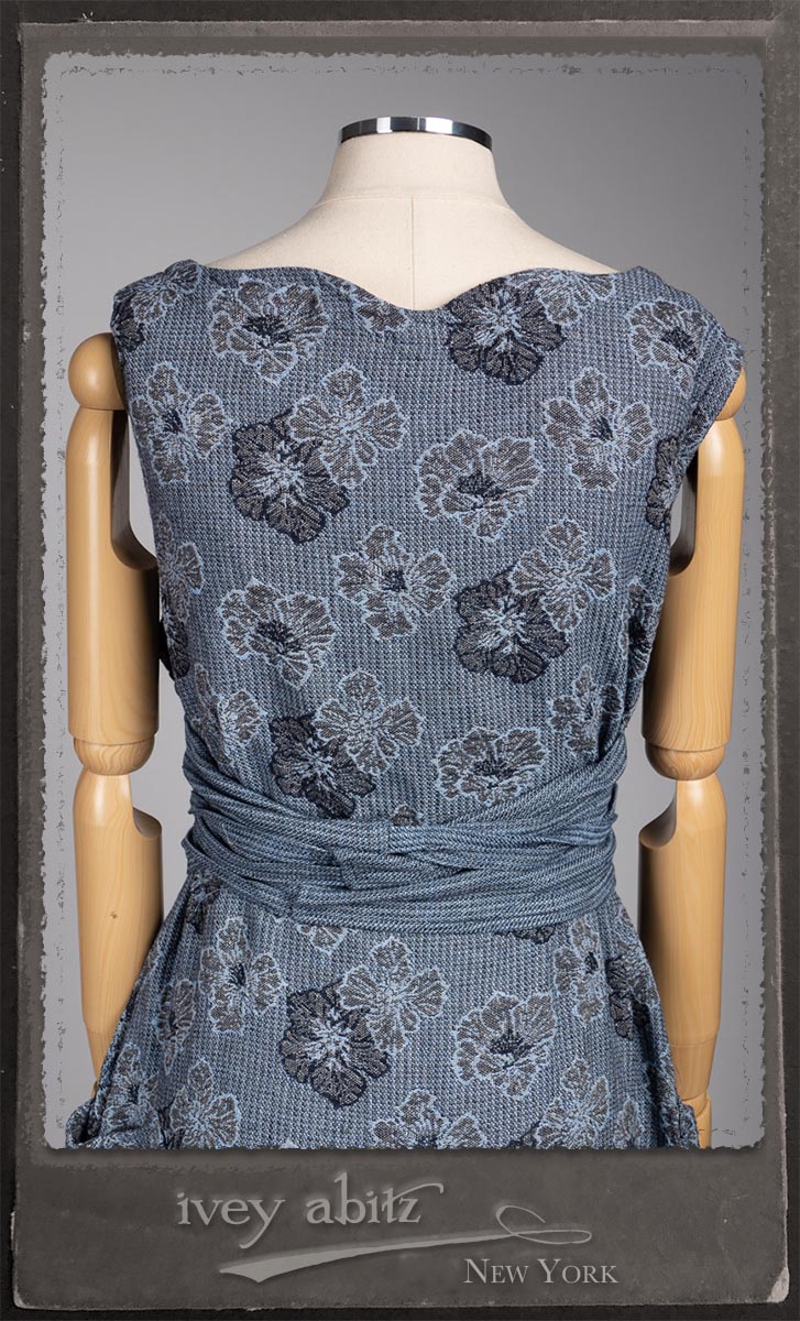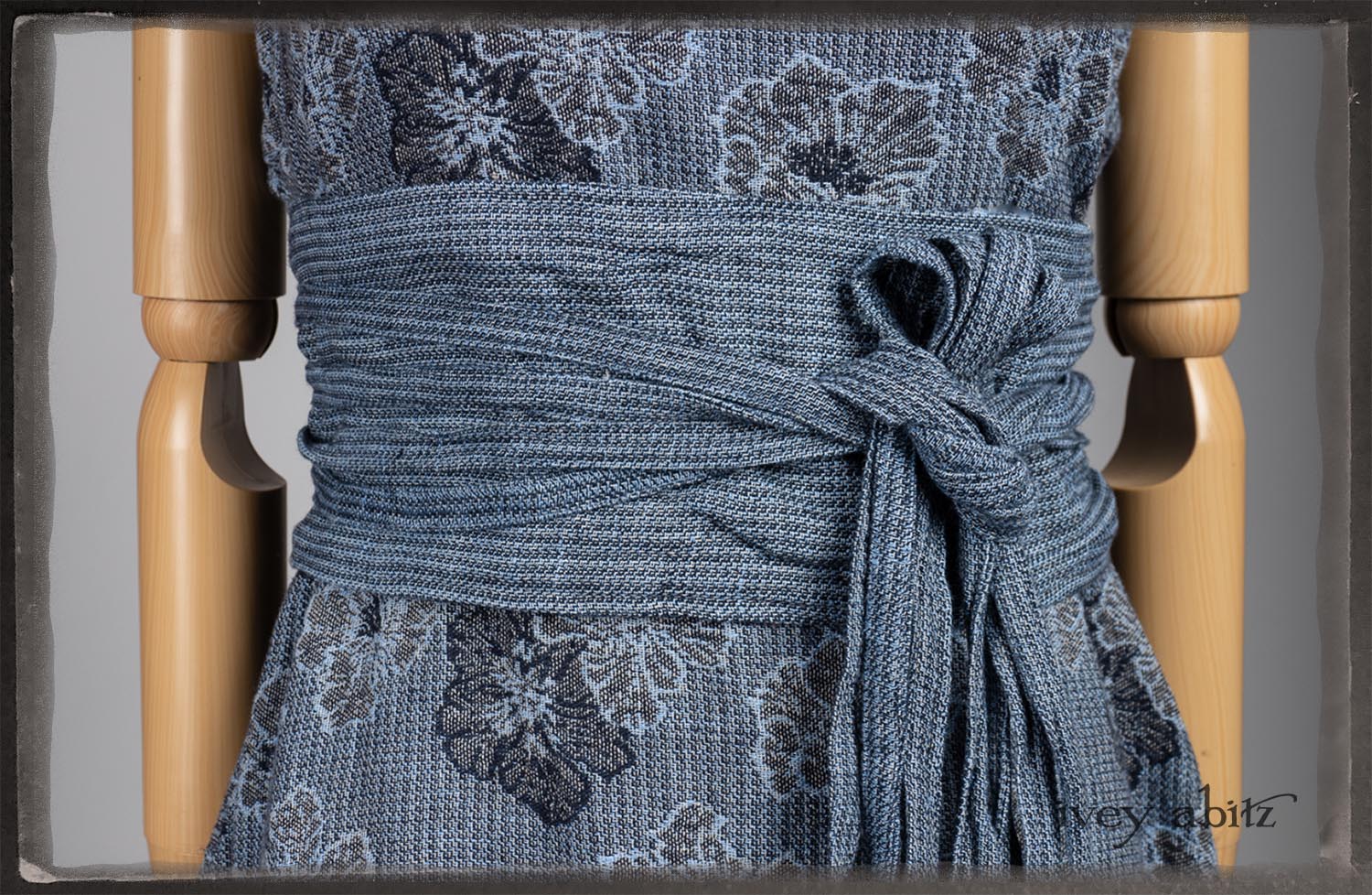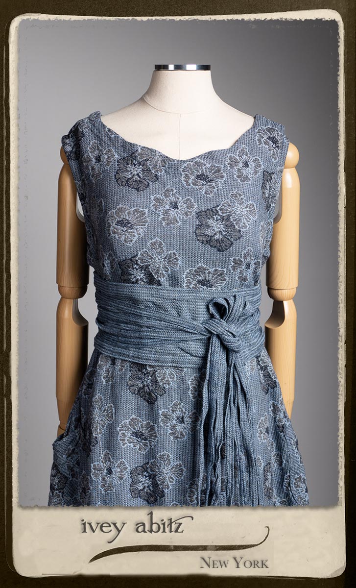 Heraldry Frock in Seascape Floral Weave; Porte Cochere Sash in Estuary Herringbone Weave.