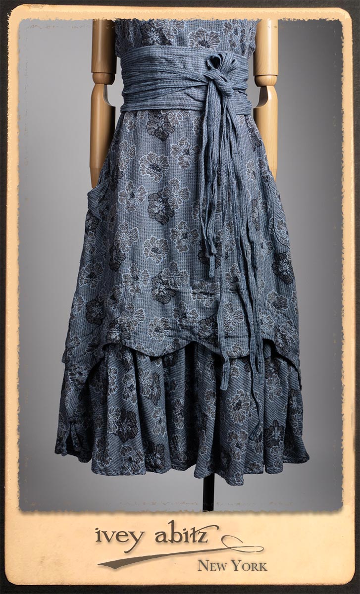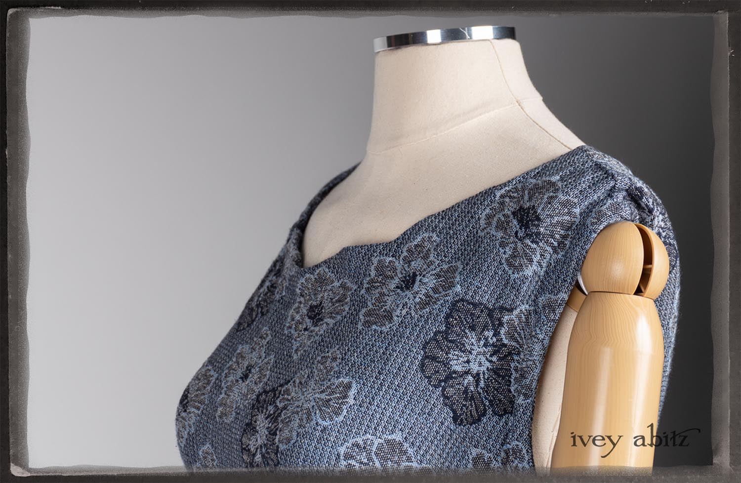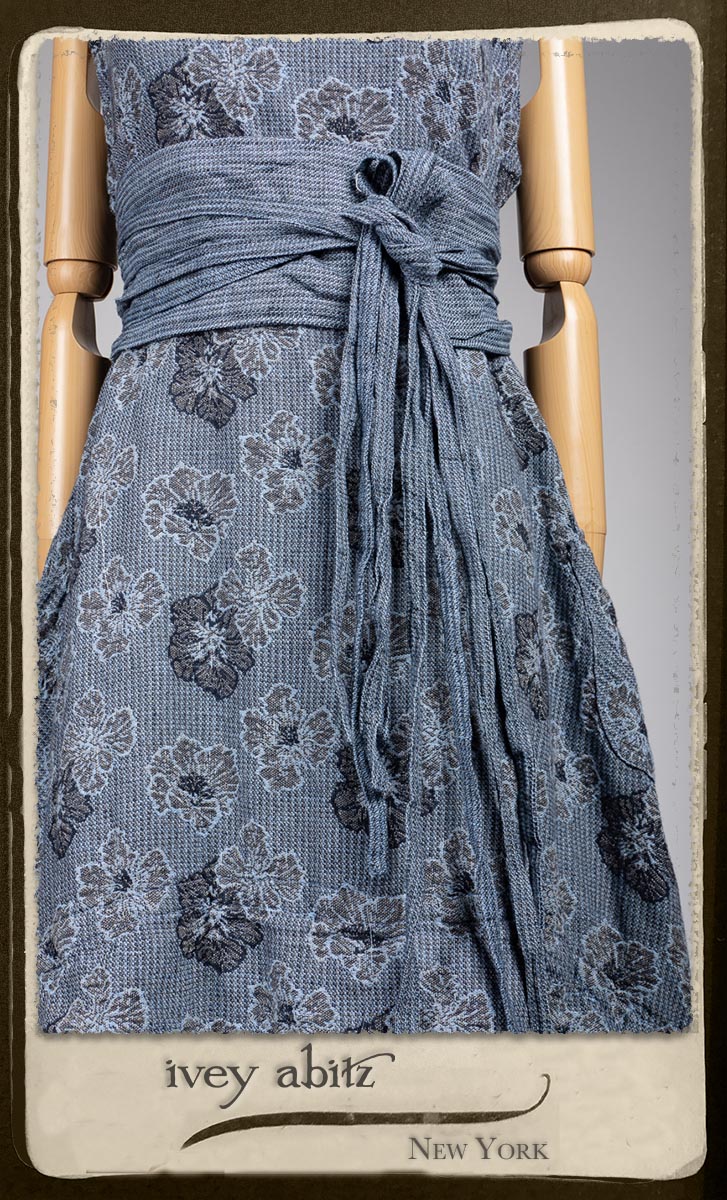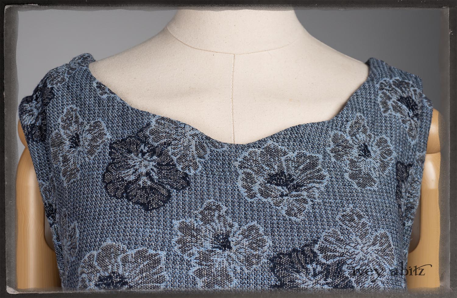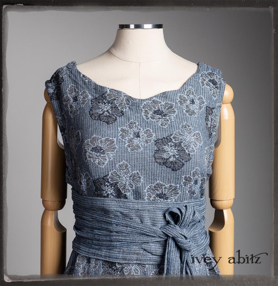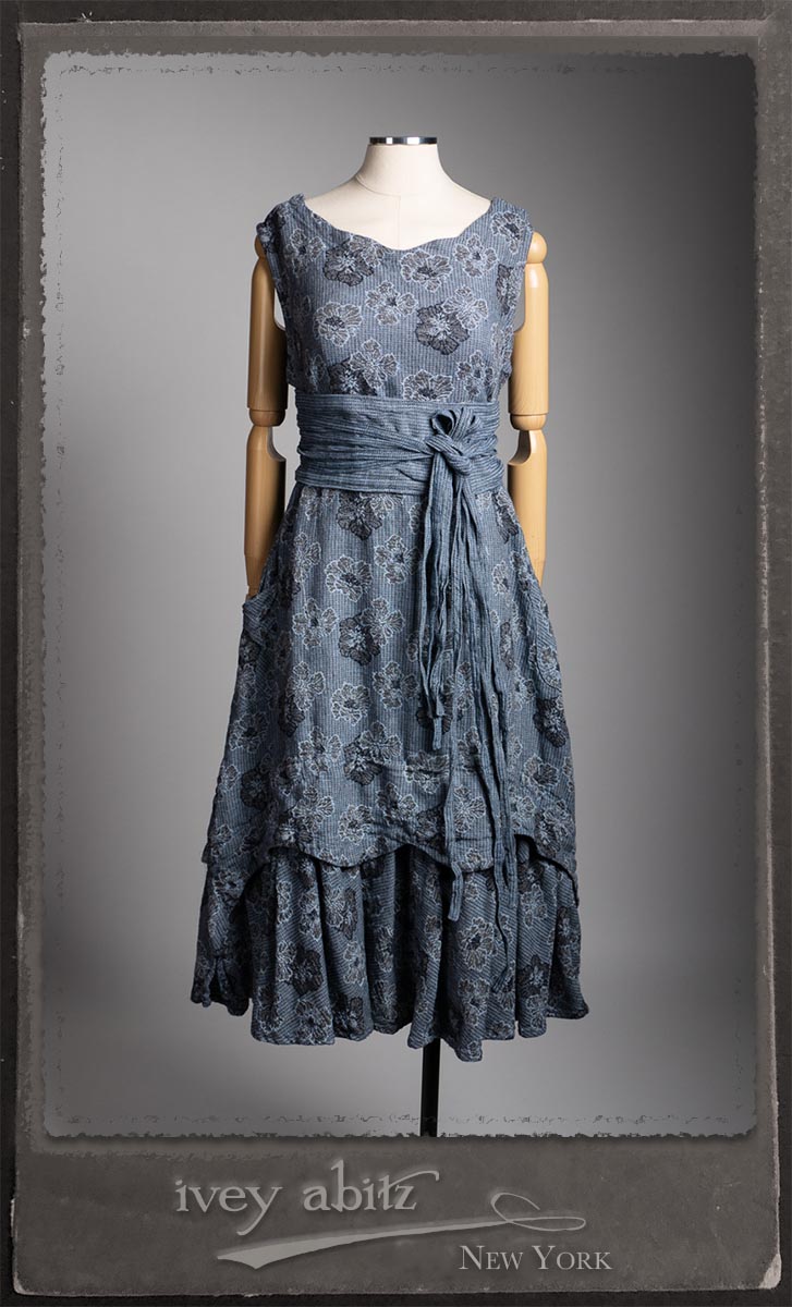 Heraldry Frock in Seascape Floral Weave; Porte Cochere Sash in Estuary Herringbone Weave.