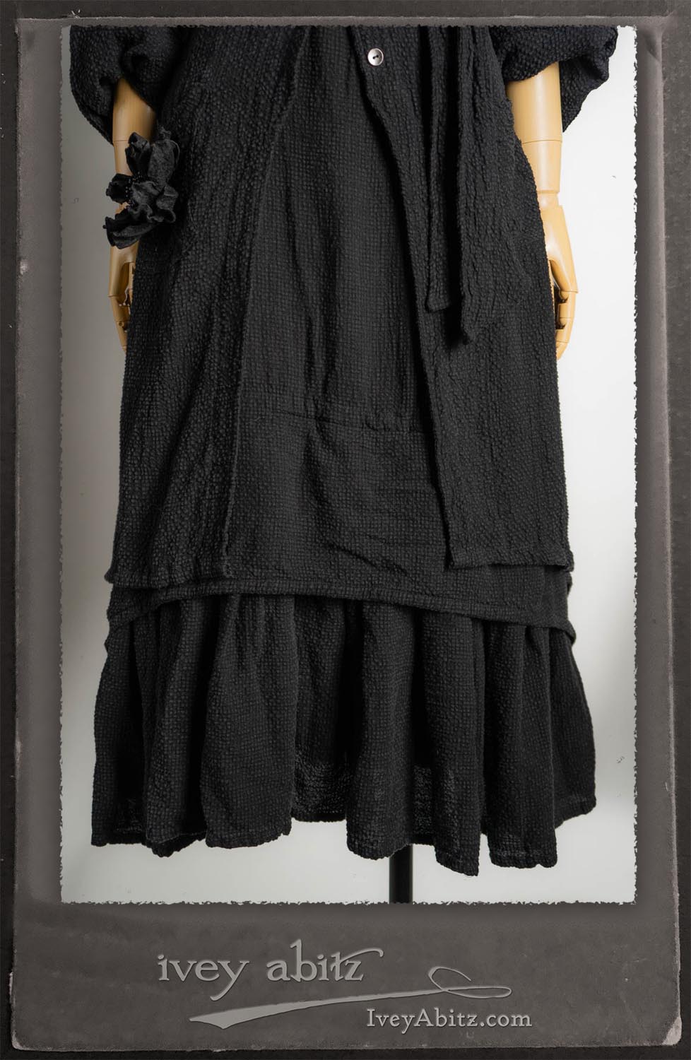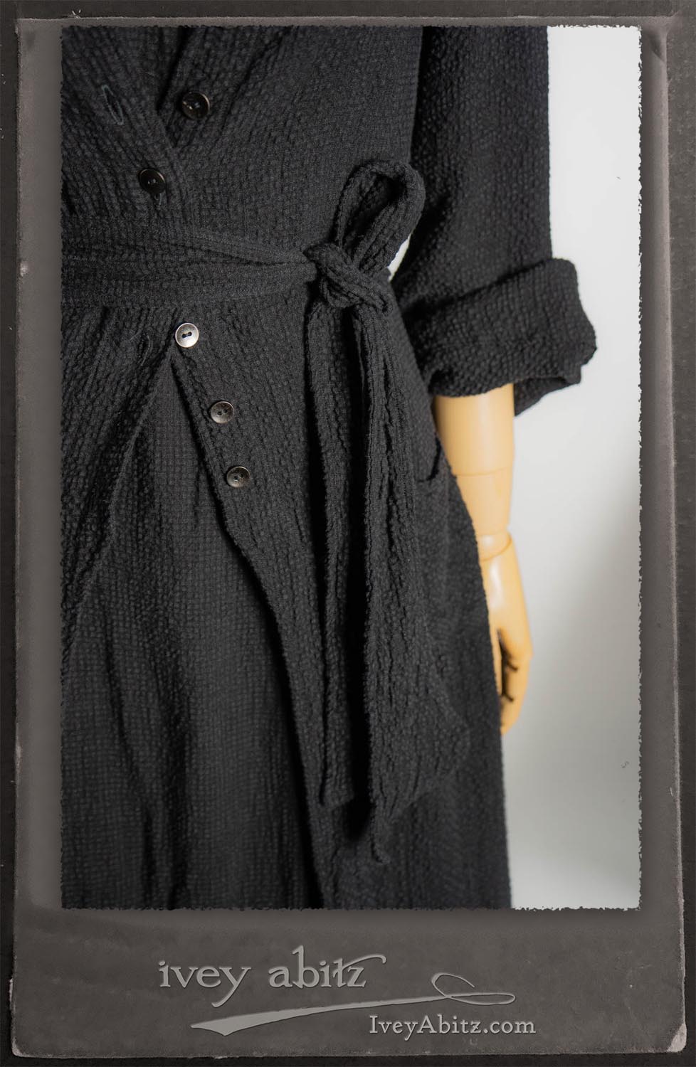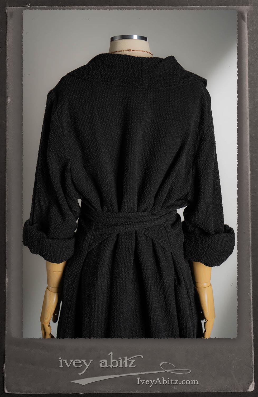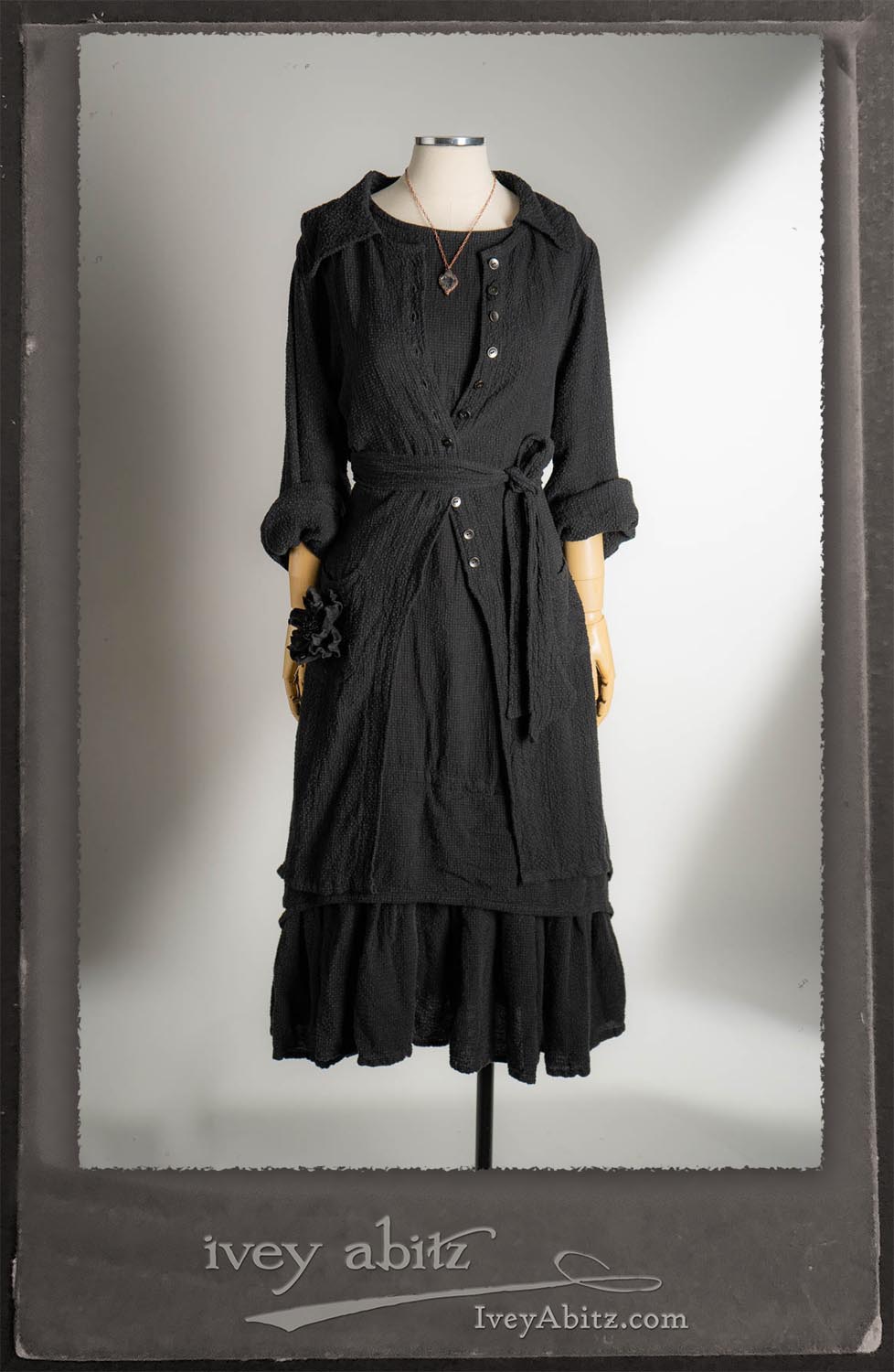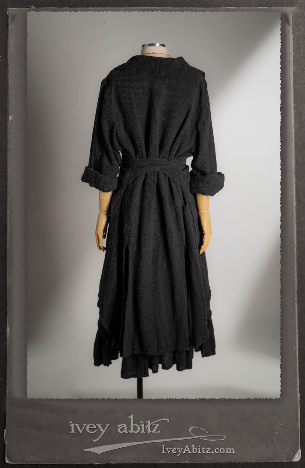 Elsie Duster Coat in Black Puckered Check Weave; Blanchefleur Frock in Black Puckered Check Weave; Nouvelle Necklace; Bonheur Brooch in Black Sculpted Felt.