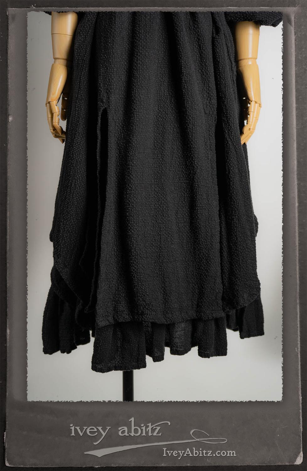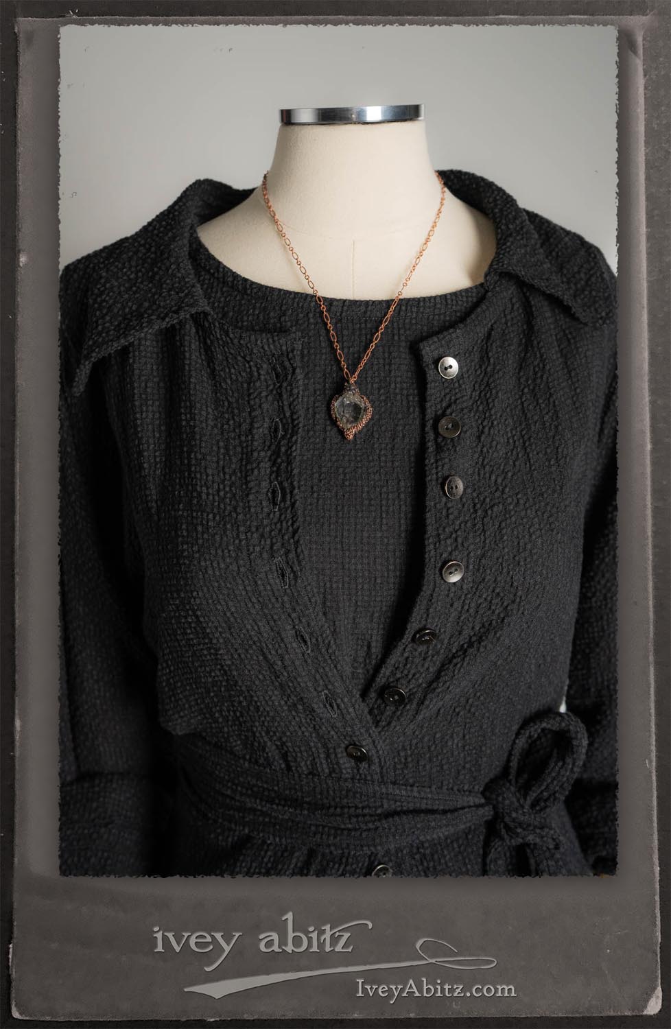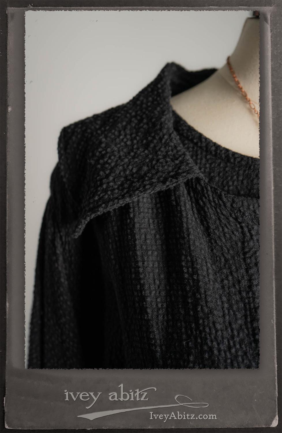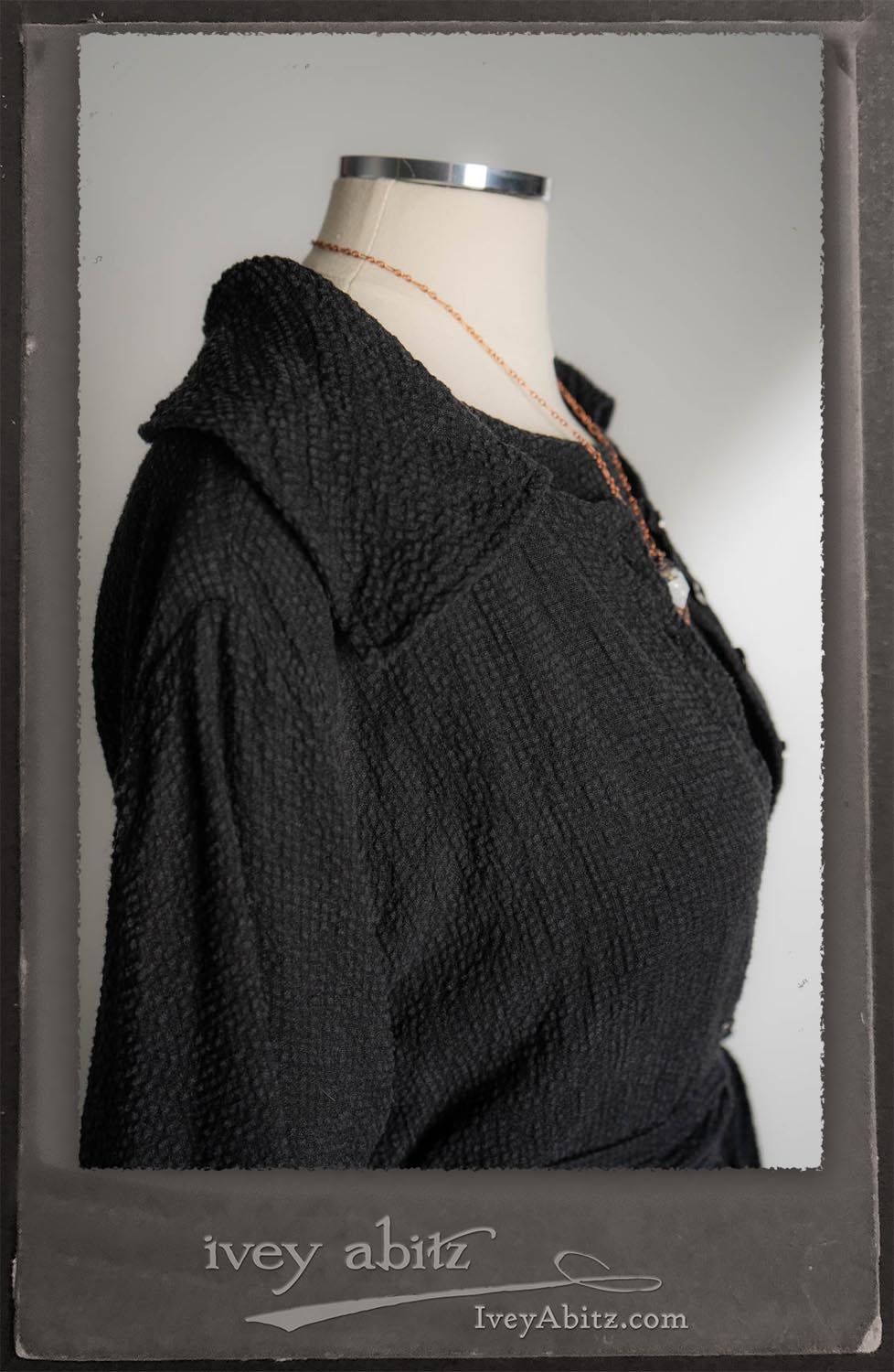 Elsie Duster Coat in Black Puckered Check Weave; Blanchefleur Frock in Black Puckered Check Weave; Nouvelle Necklace; Bonheur Brooch in Black Sculpted Felt.
