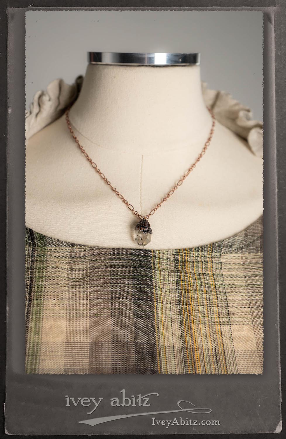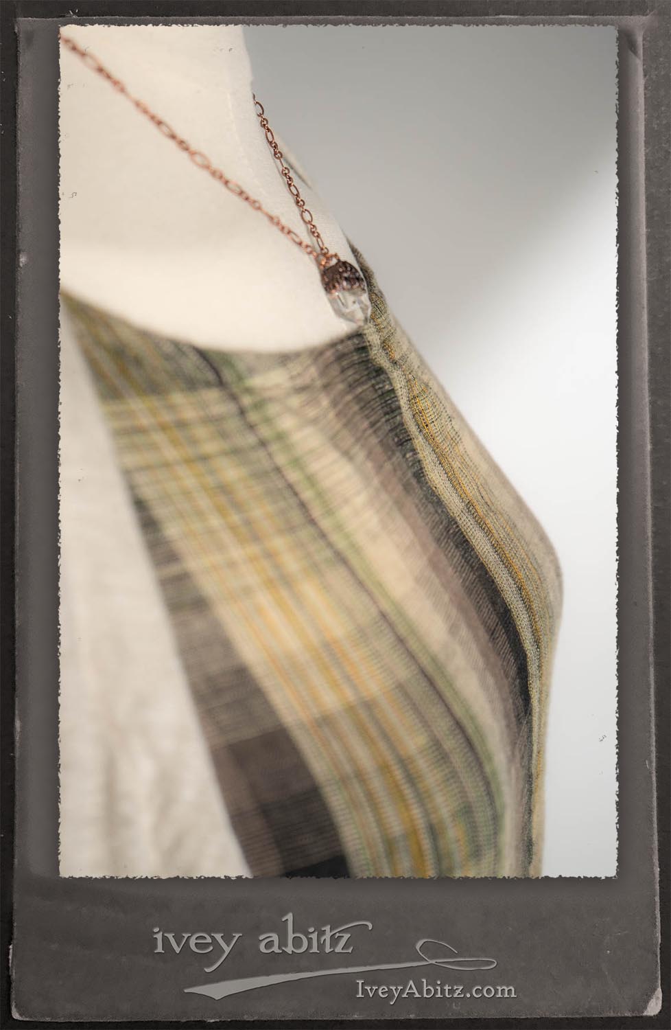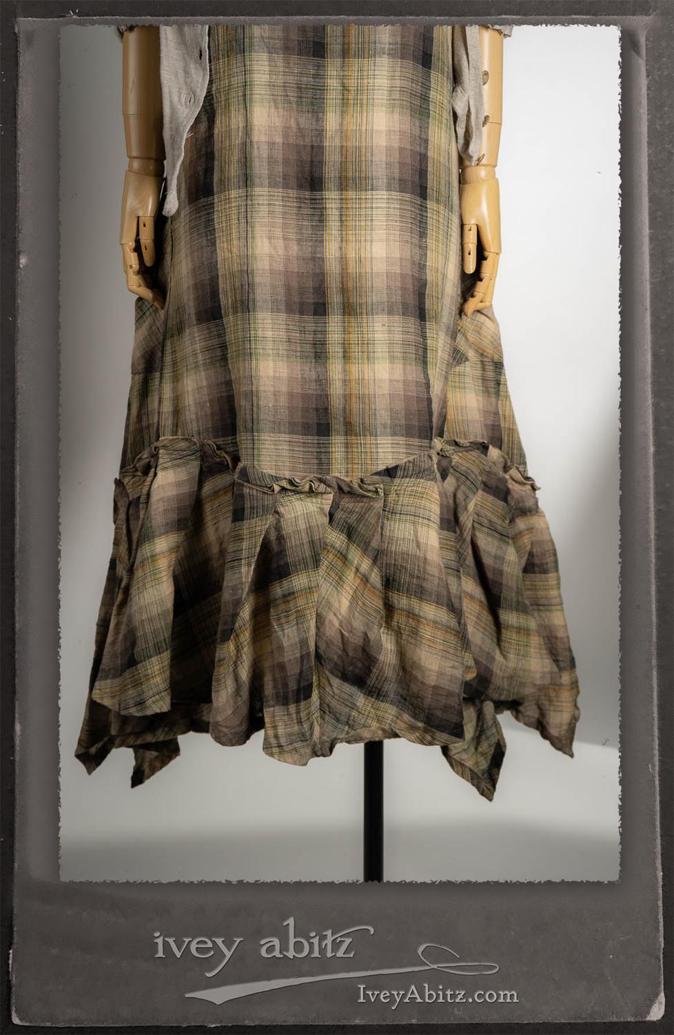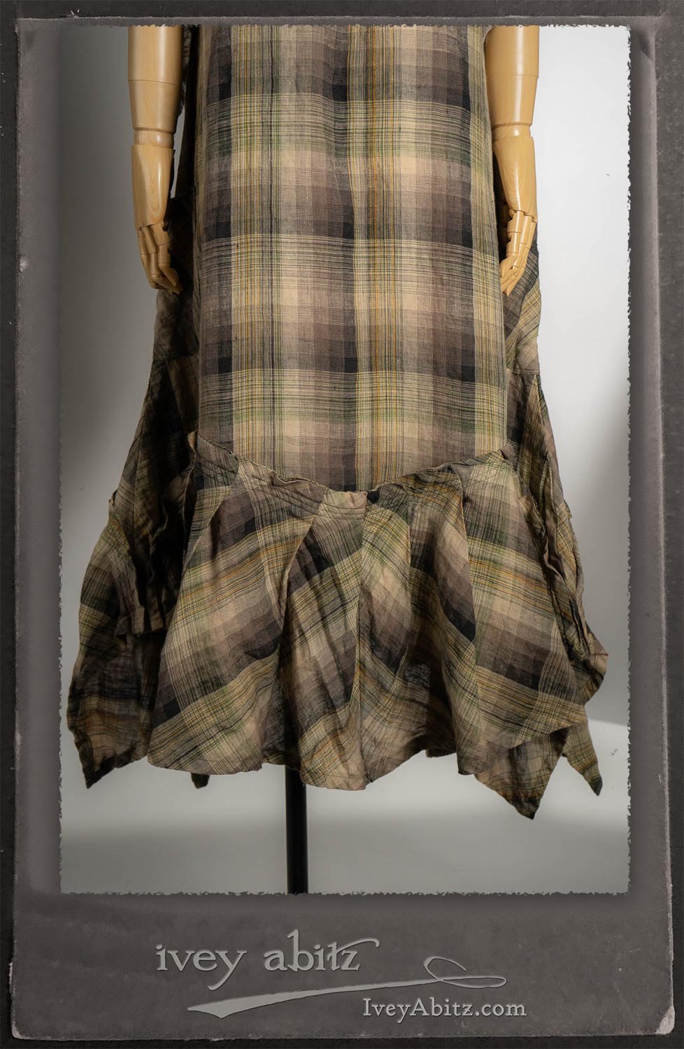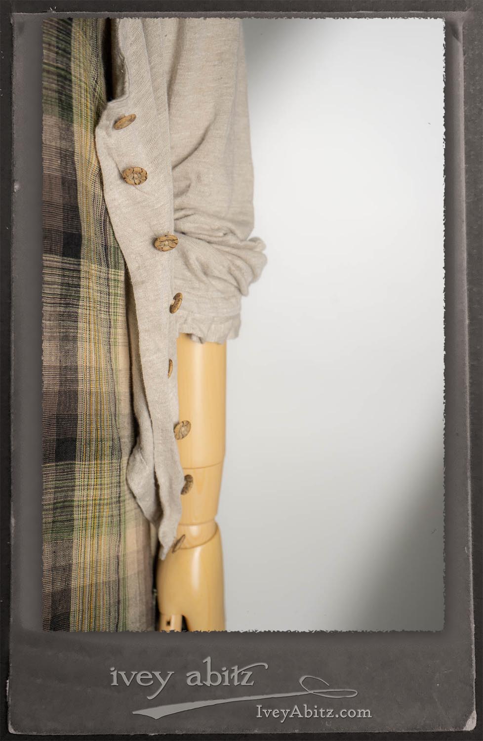 Canterbury Cardigan in Signature Sandy Lightweight Linen Knit; Nouvelle Necklace; Fairholme Frock in Garden Plaid Linen.