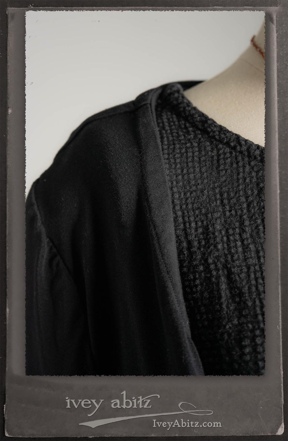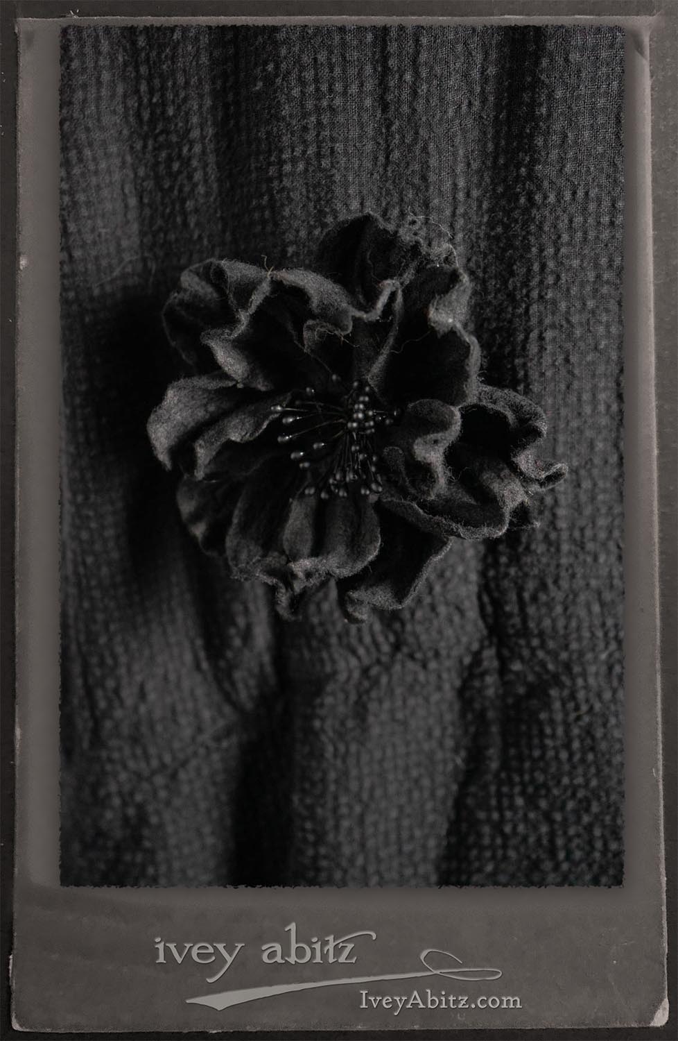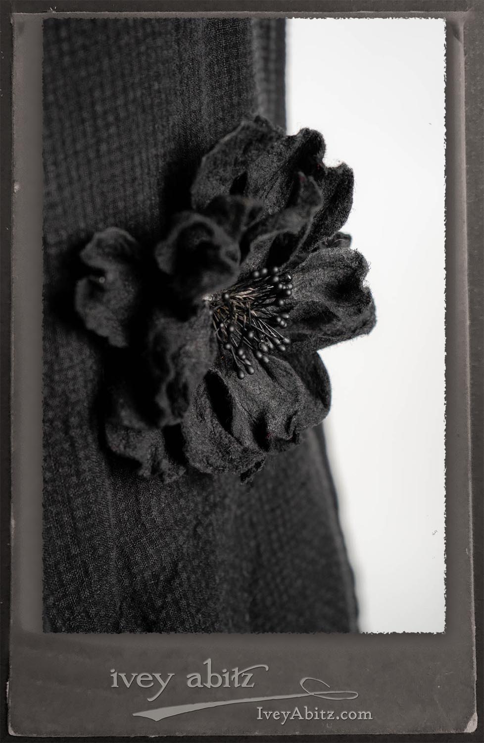 Elliot Jacket in Black Silky Bamboo Knit; Blanchefleur Frock in Black Puckered Check Weave; Cilla Slip Frock in Black Silky Bamboo Knit; Bonheur Brooch in Black Sculpted Felt; Nouvelle Necklace.