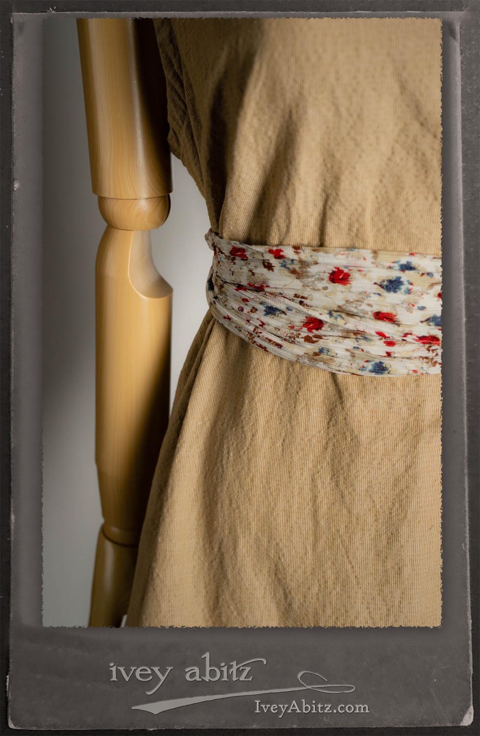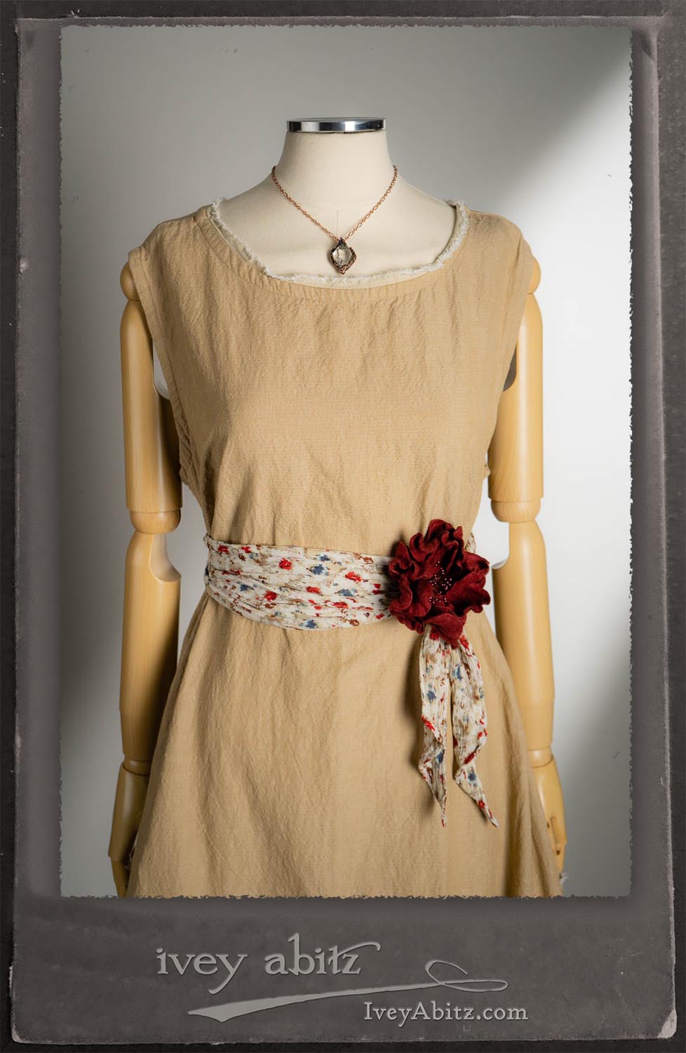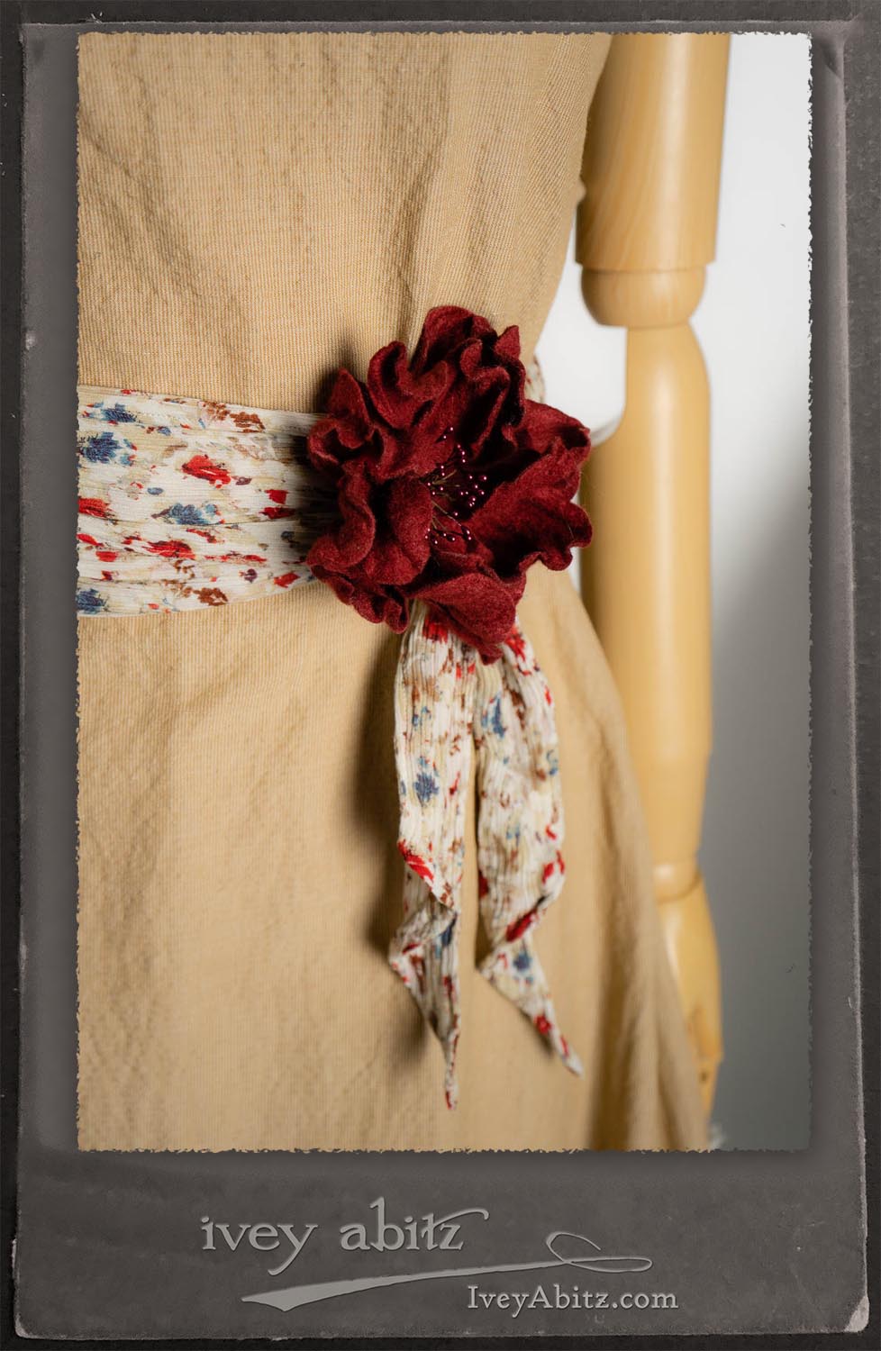 Limited Edition Blanchefleur Frock in Sun and Sand Stripe Weave; Fairholme Sash in Brooklyn Floral Silk Chiffon; Bonheur Brooch in Ruby Sculpted Felt.