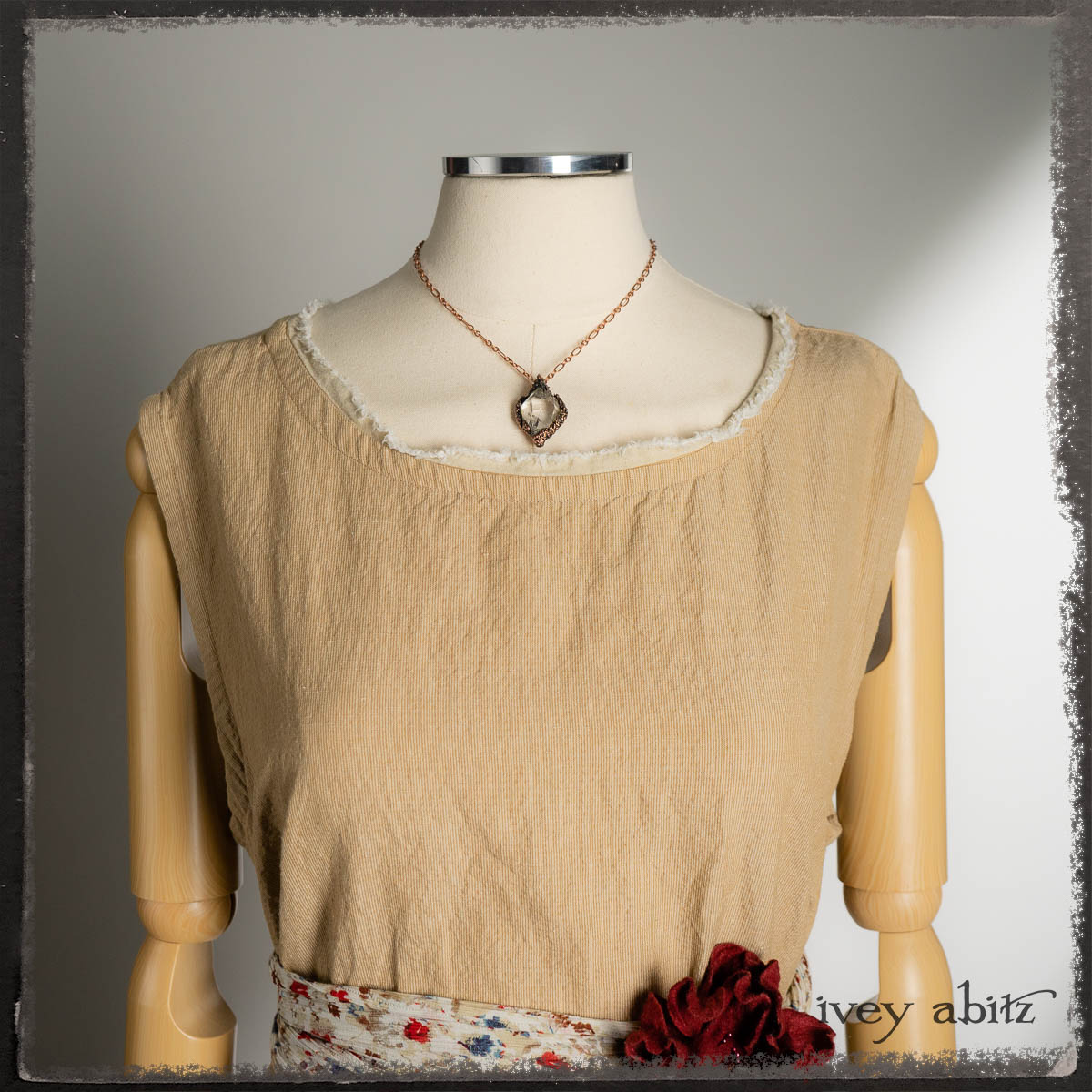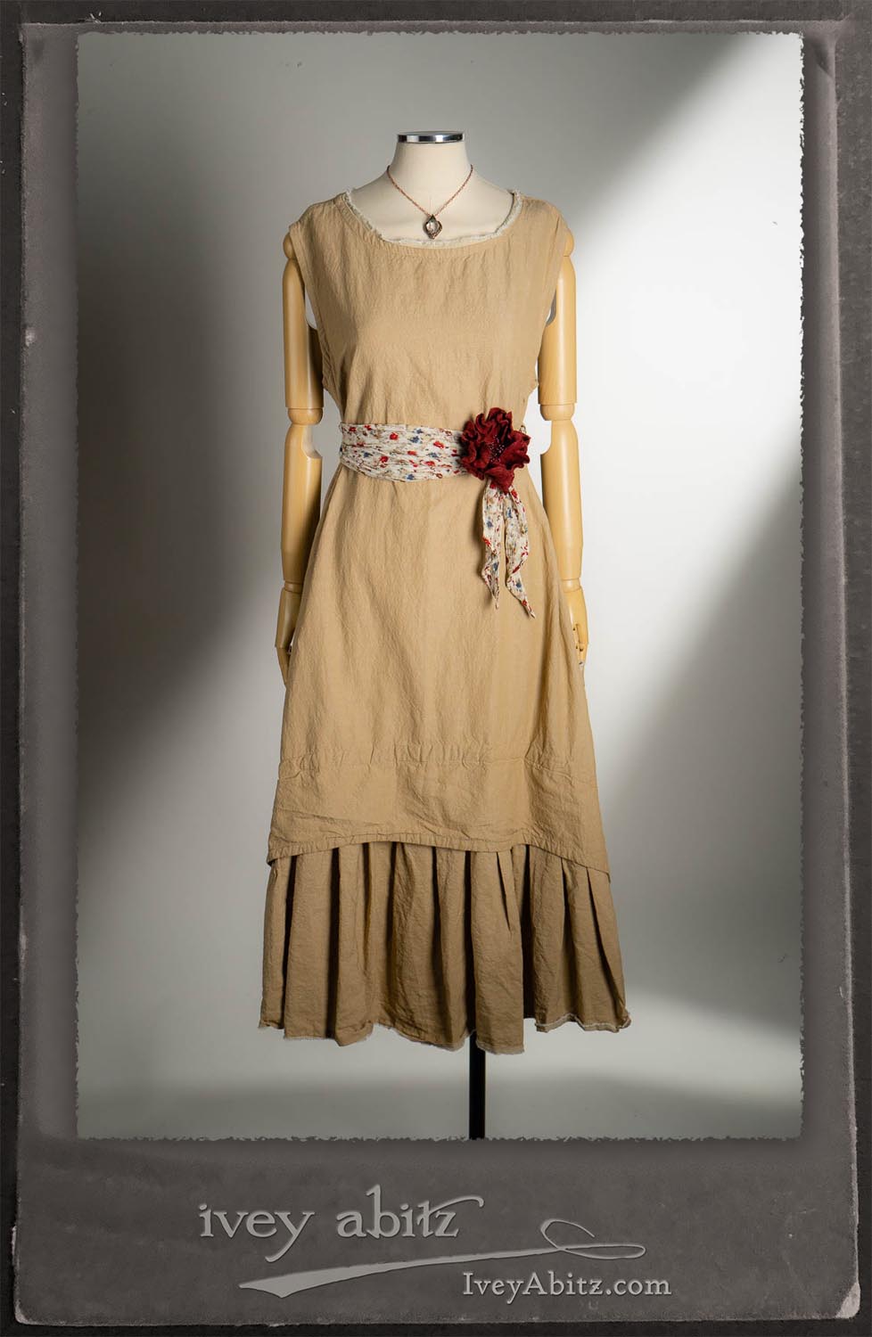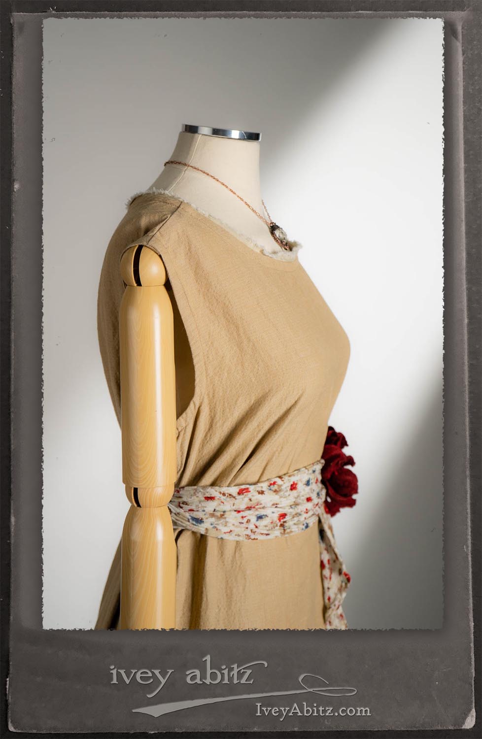 Limited Edition Blanchefleur Frock in Sun and Sand Stripe Weave; Fairholme Sash in Brooklyn Floral Silk Chiffon; Bonheur Brooch in Ruby Sculpted Felt.