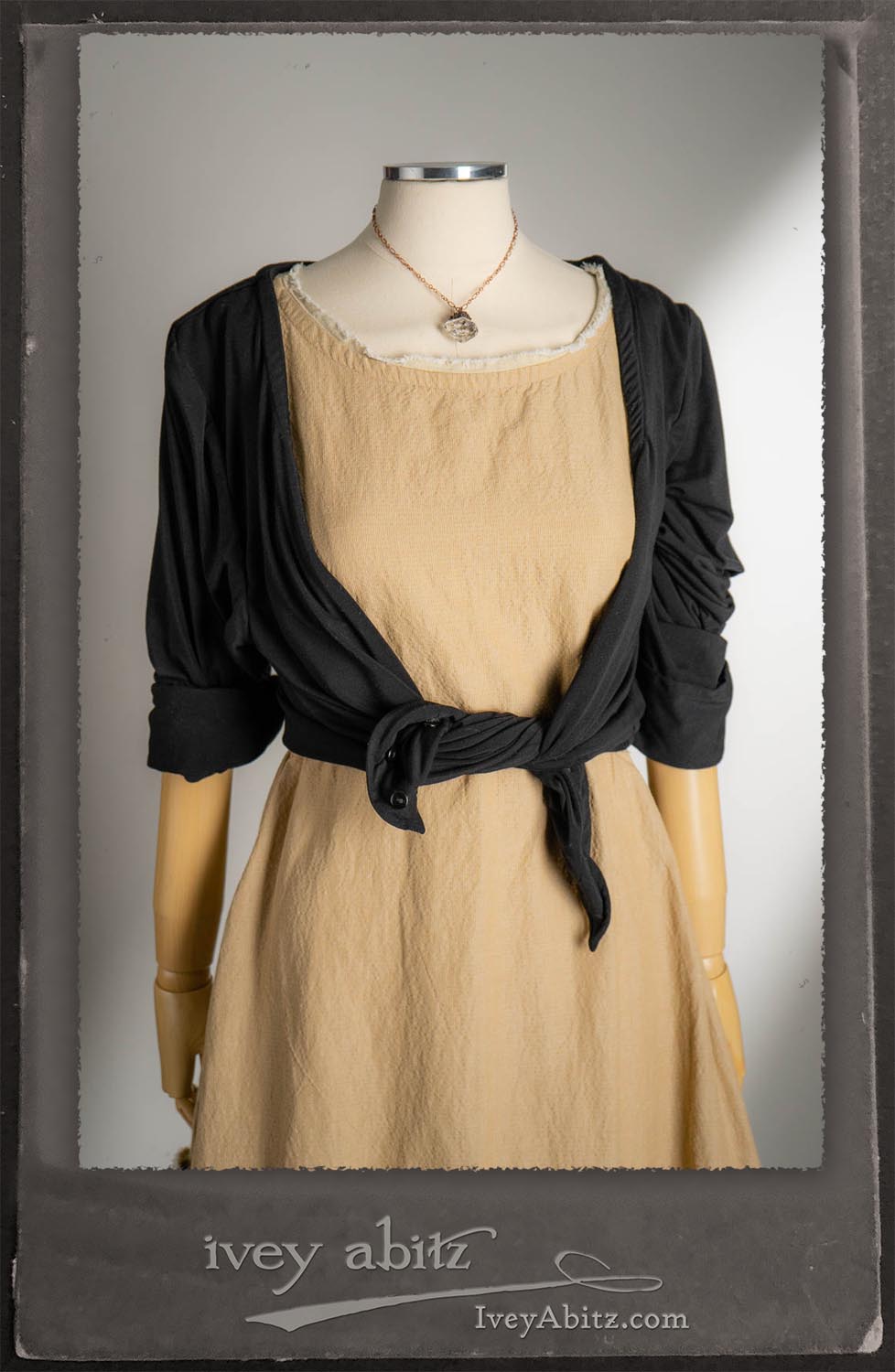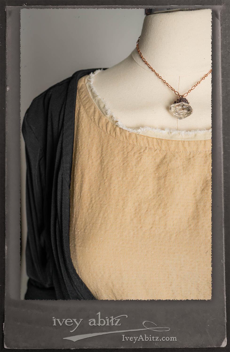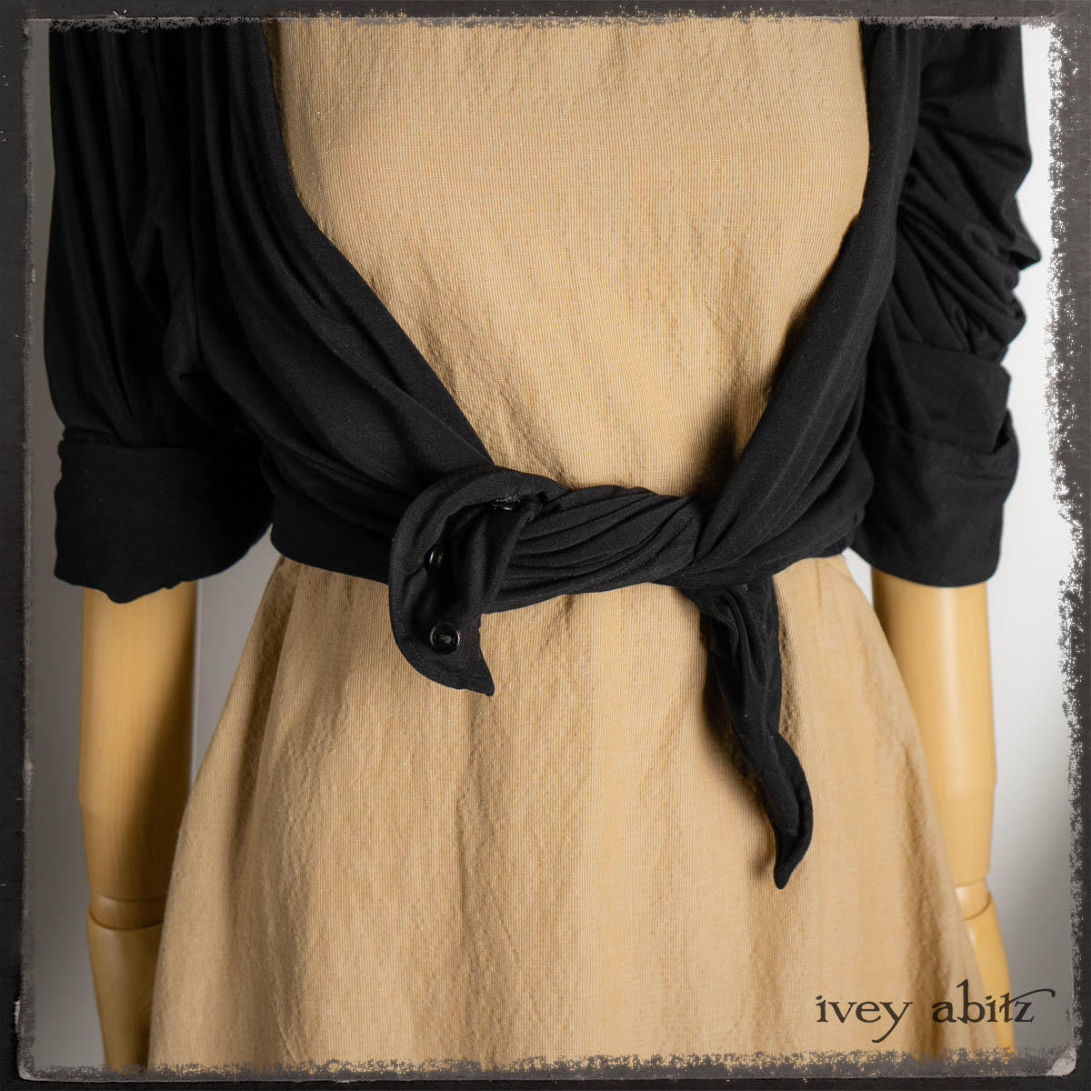 Limited Edition Blanchefleur Frock in Sun and Sand Stripe Weave; Elliot Jacket in Black Silky Bamboo Knit; Nouvelle Necklace.