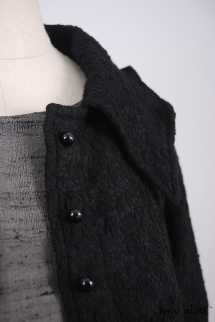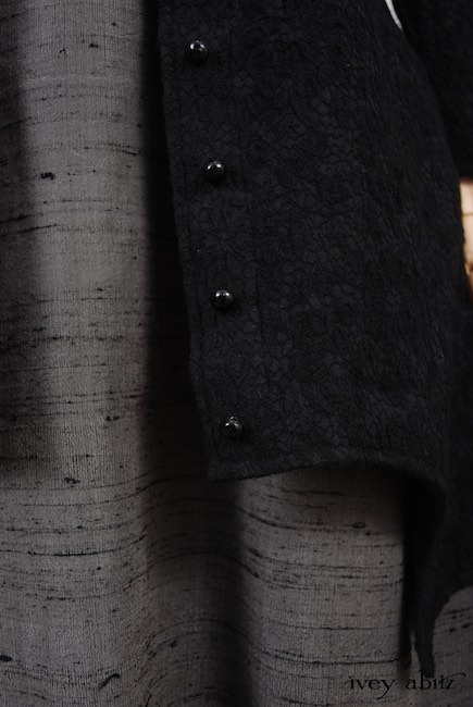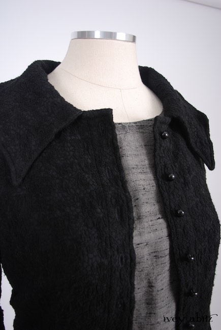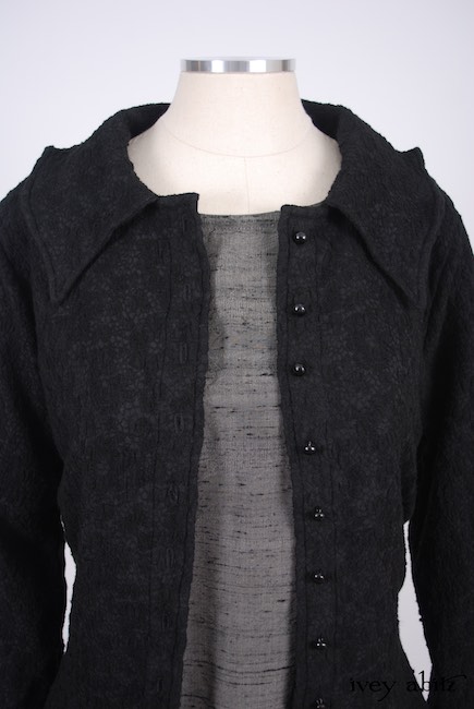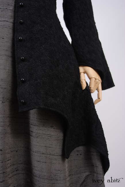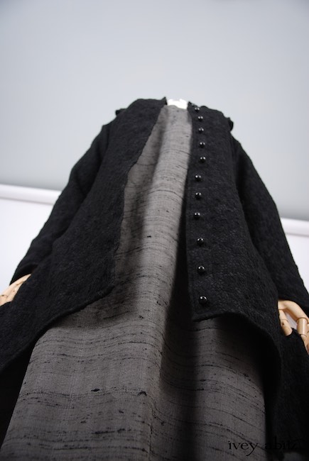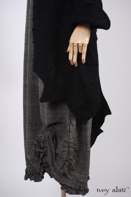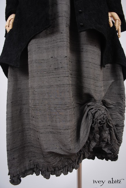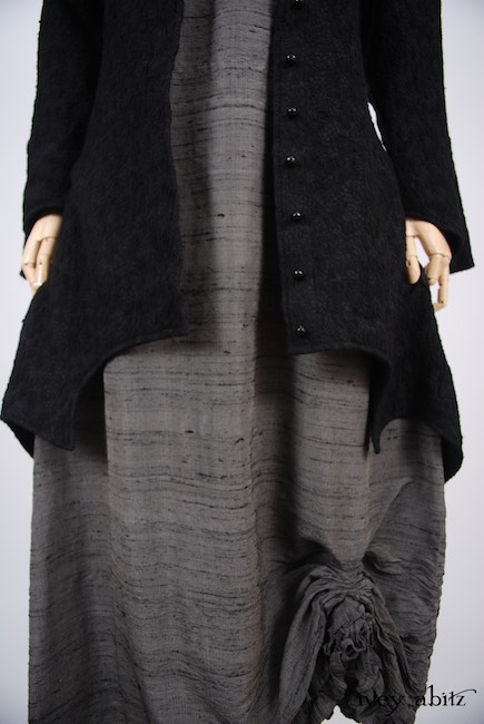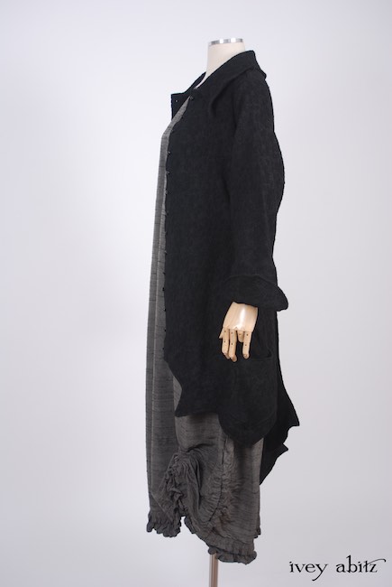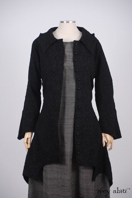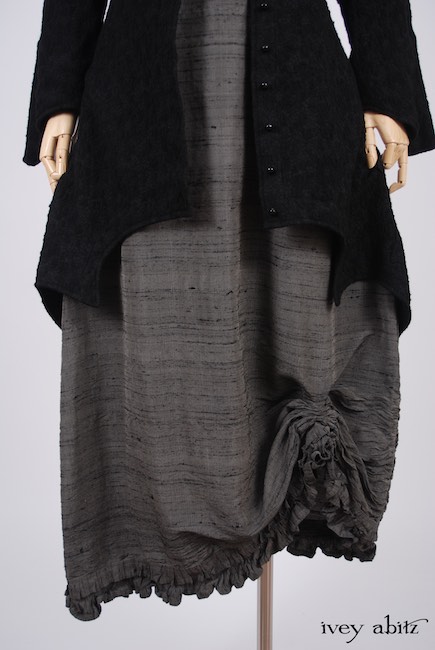 Chittister Shirt Jacket in Inkwell Jacquard Weave; Canterbury Frock in Wolfie Grey Washed Silk