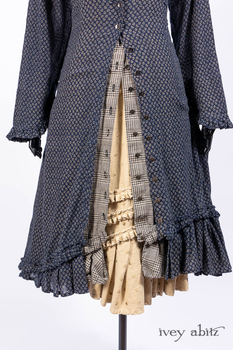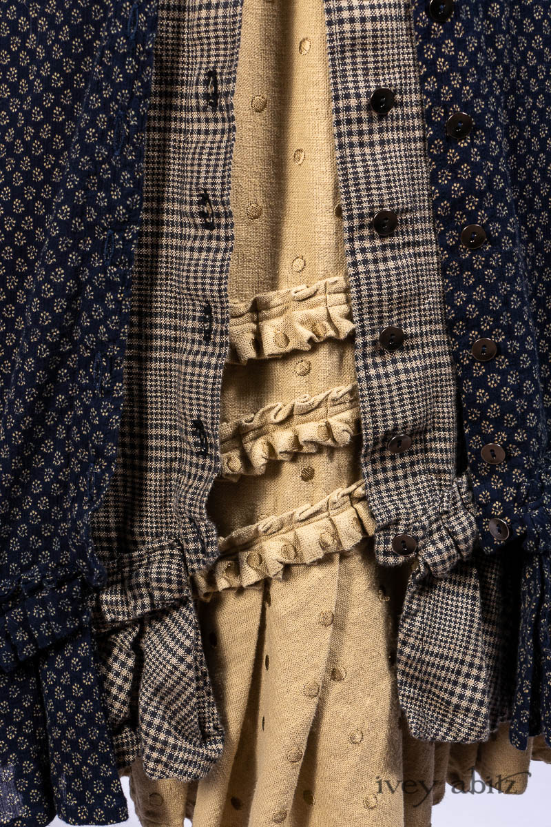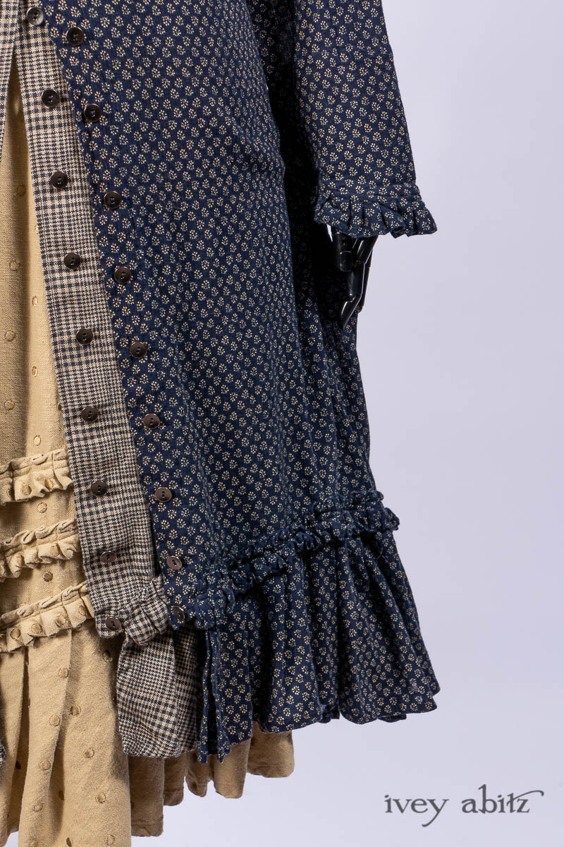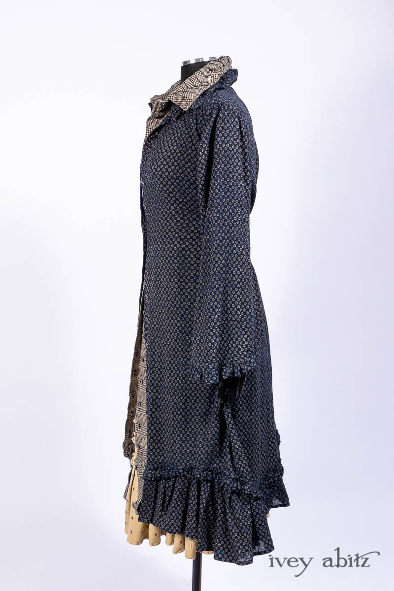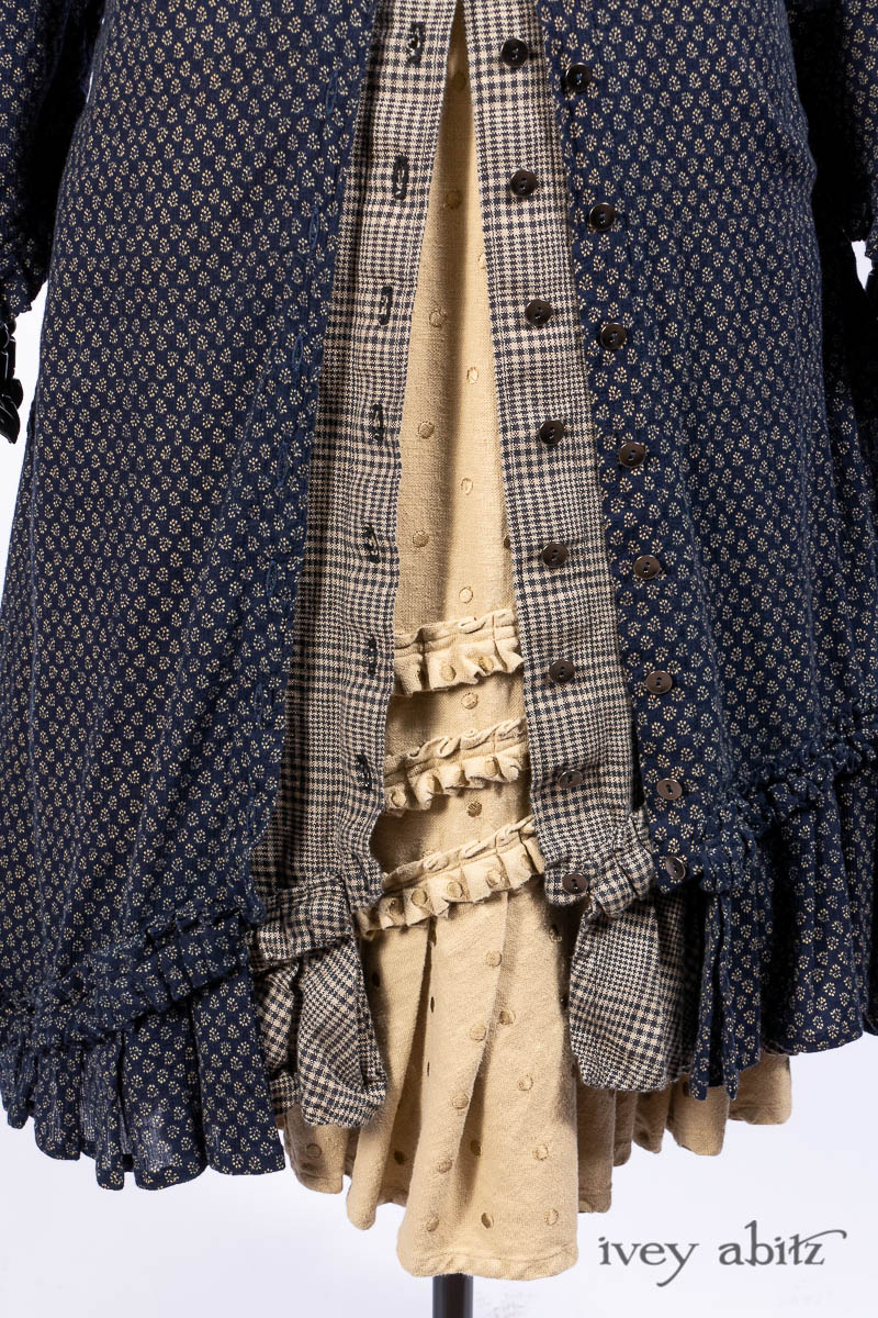 Wilhemena Duster Coat in Sandstone and River Petite Fleur Voile; Wilhemena Frock in Sandstone and River Plaid Linen; Windrush Frock in Sandstone Embroidered Dot Linen. – Ivey Abitz Bespoke Clothing