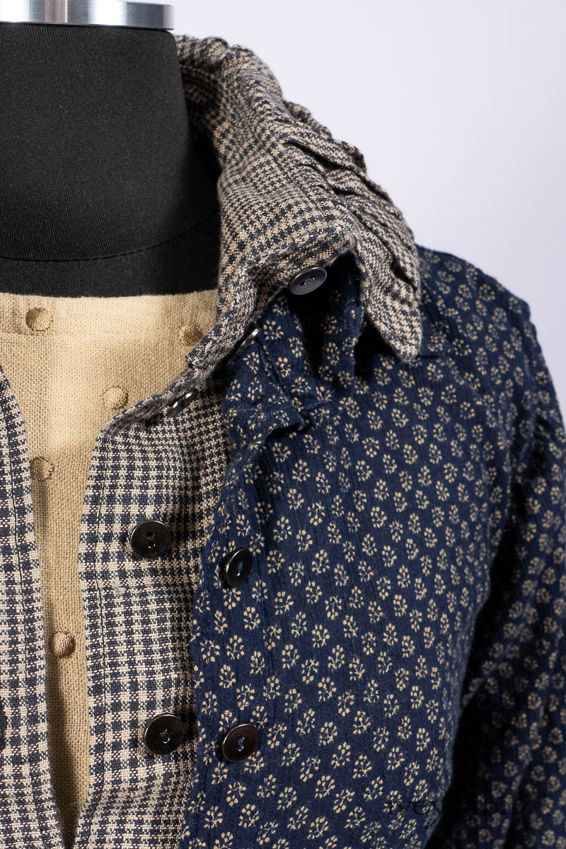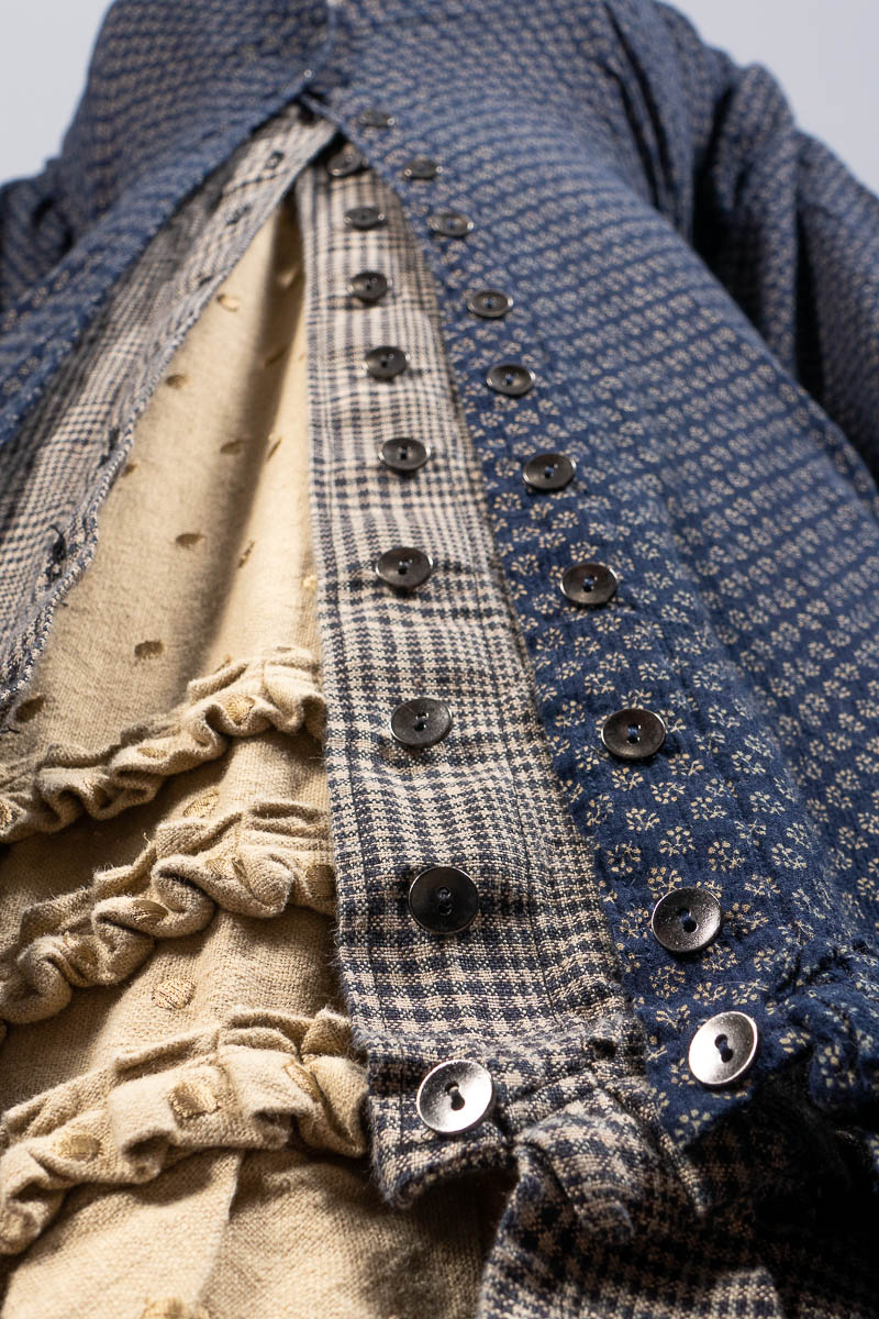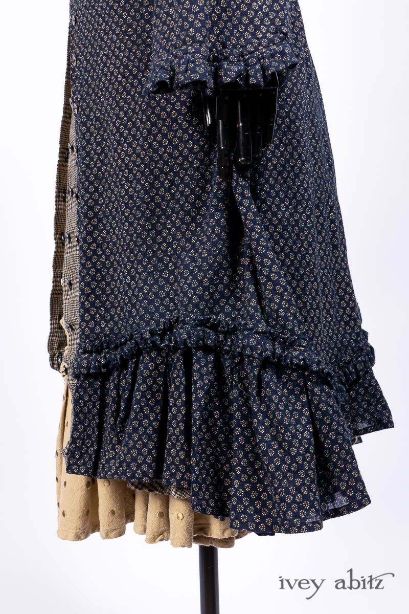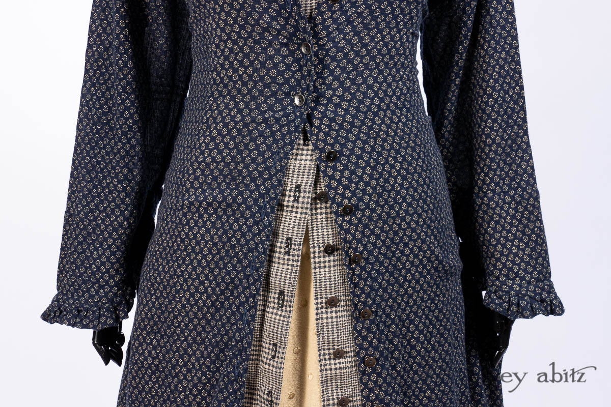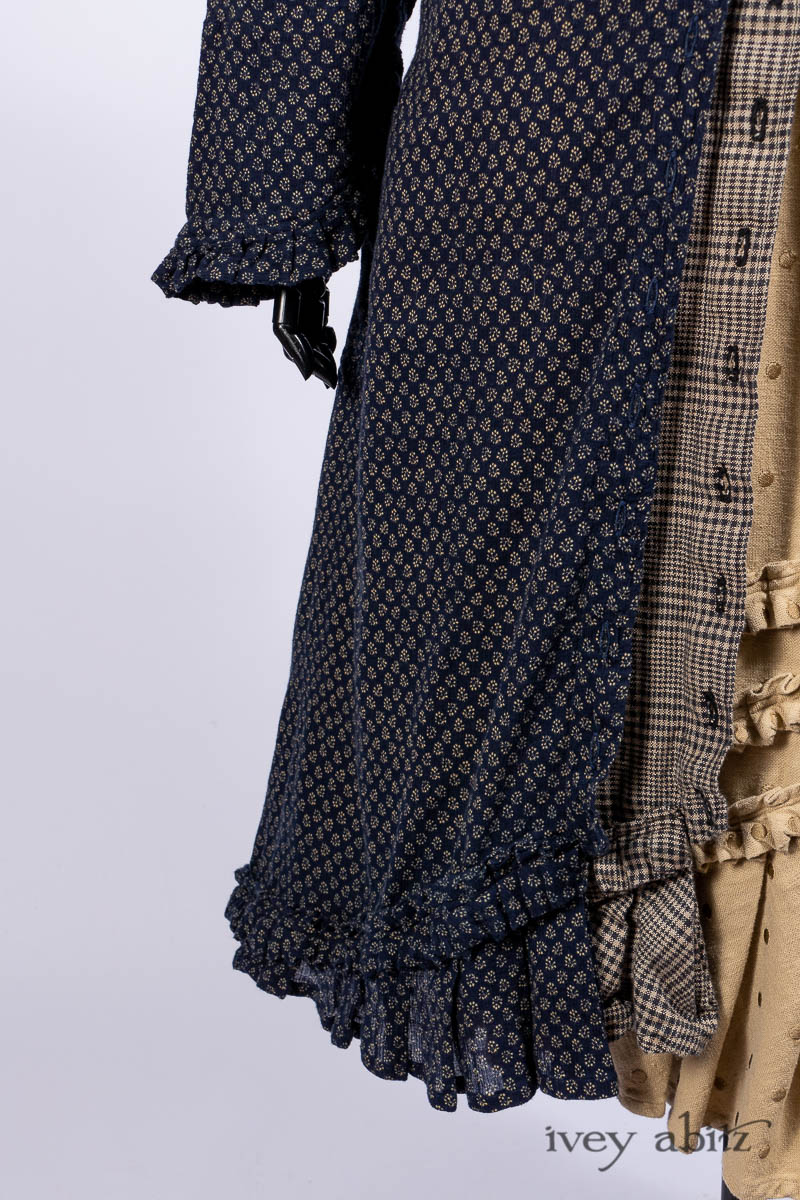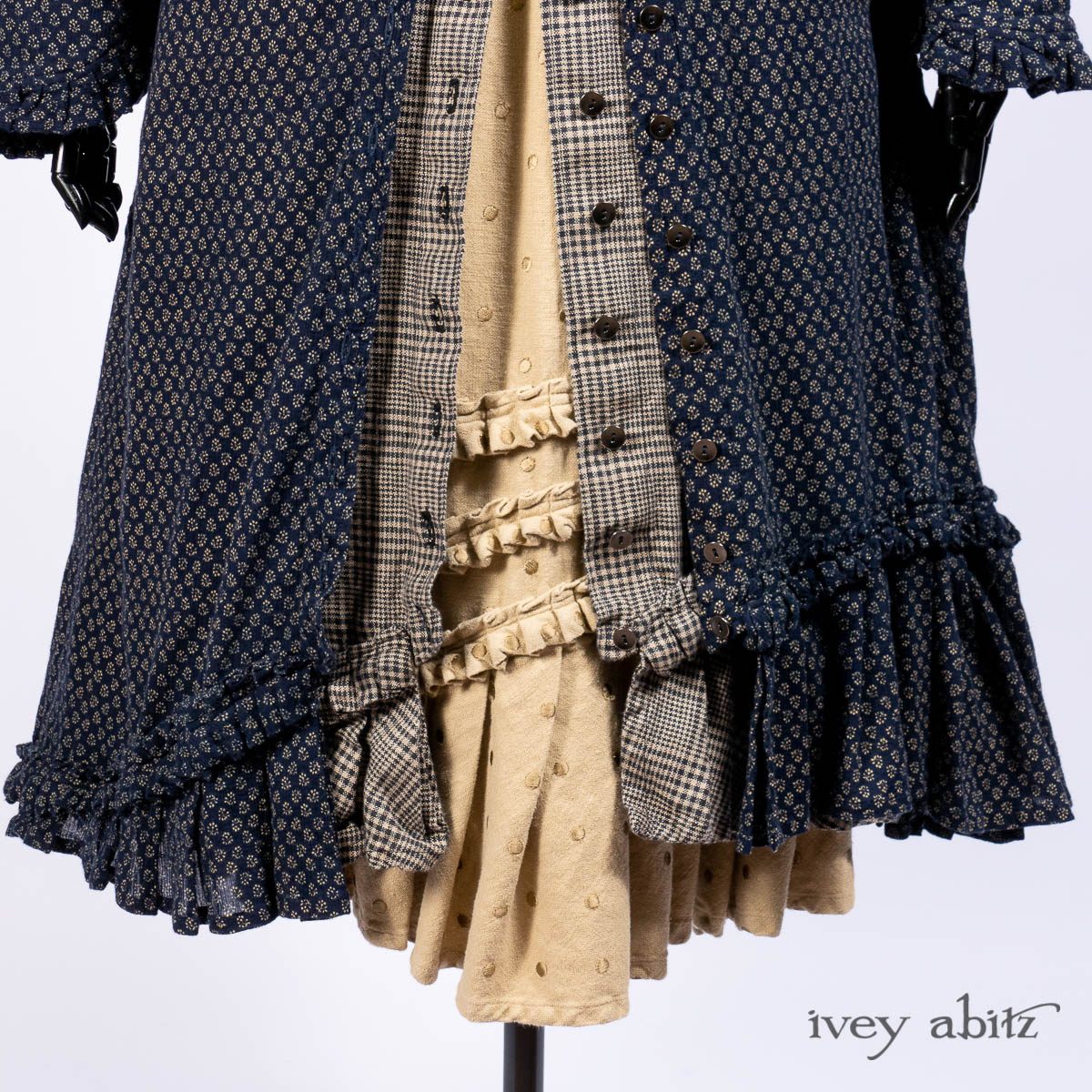 Wilhemena Duster Coat in Sandstone and River Petite Fleur Voile; Wilhemena Frock in Sandstone and River Plaid Linen; Windrush Frock in Sandstone Embroidered Dot Linen. – Ivey Abitz Bespoke Clothing