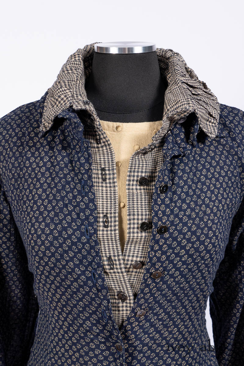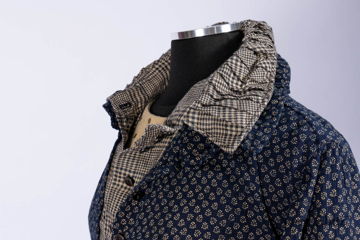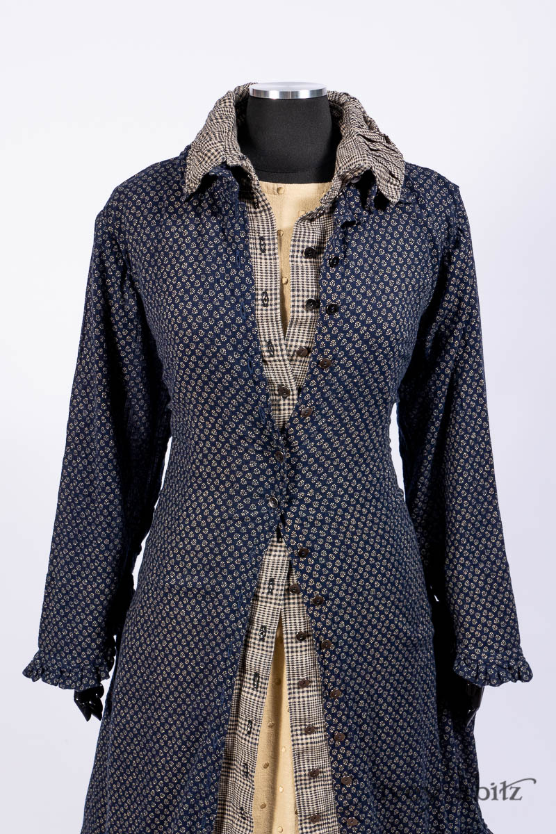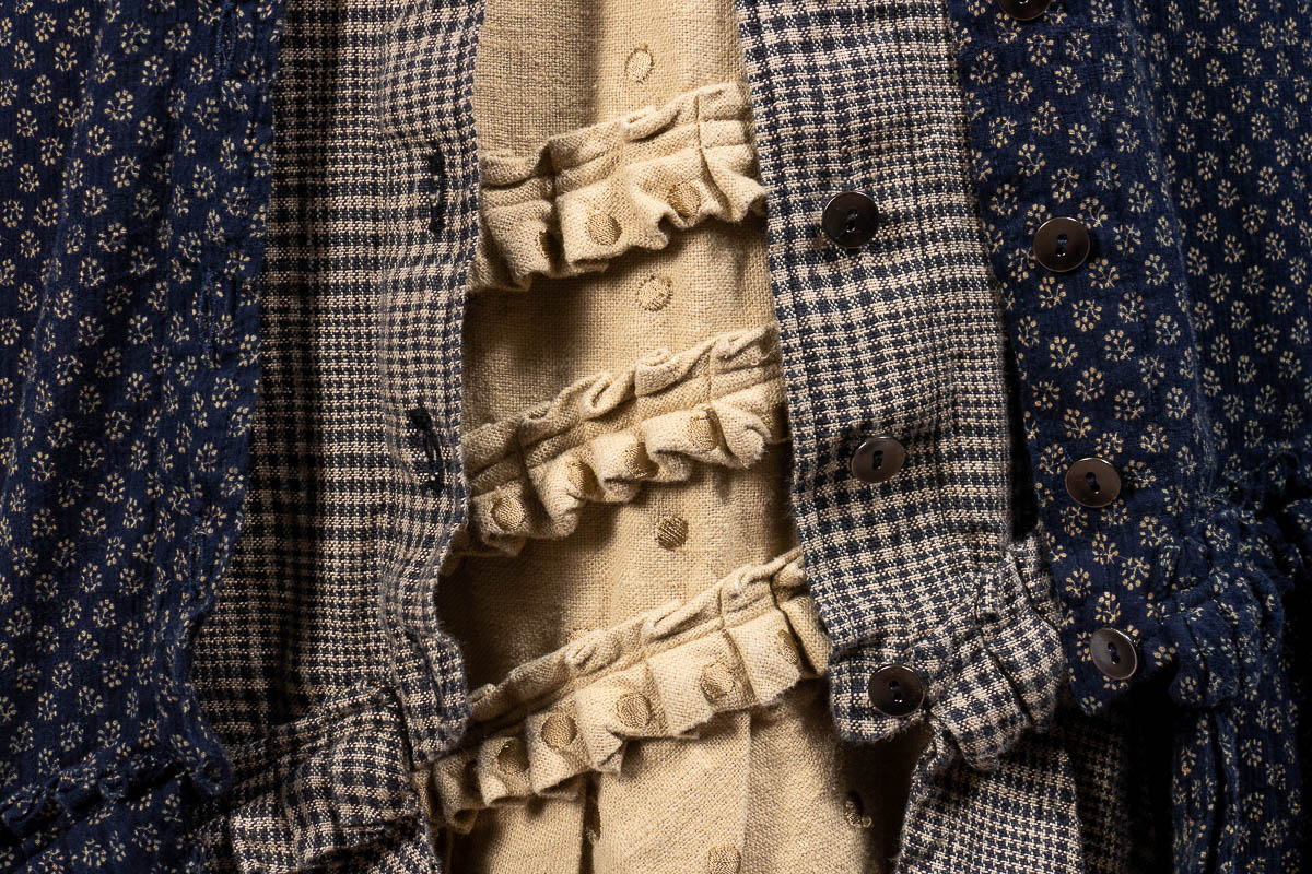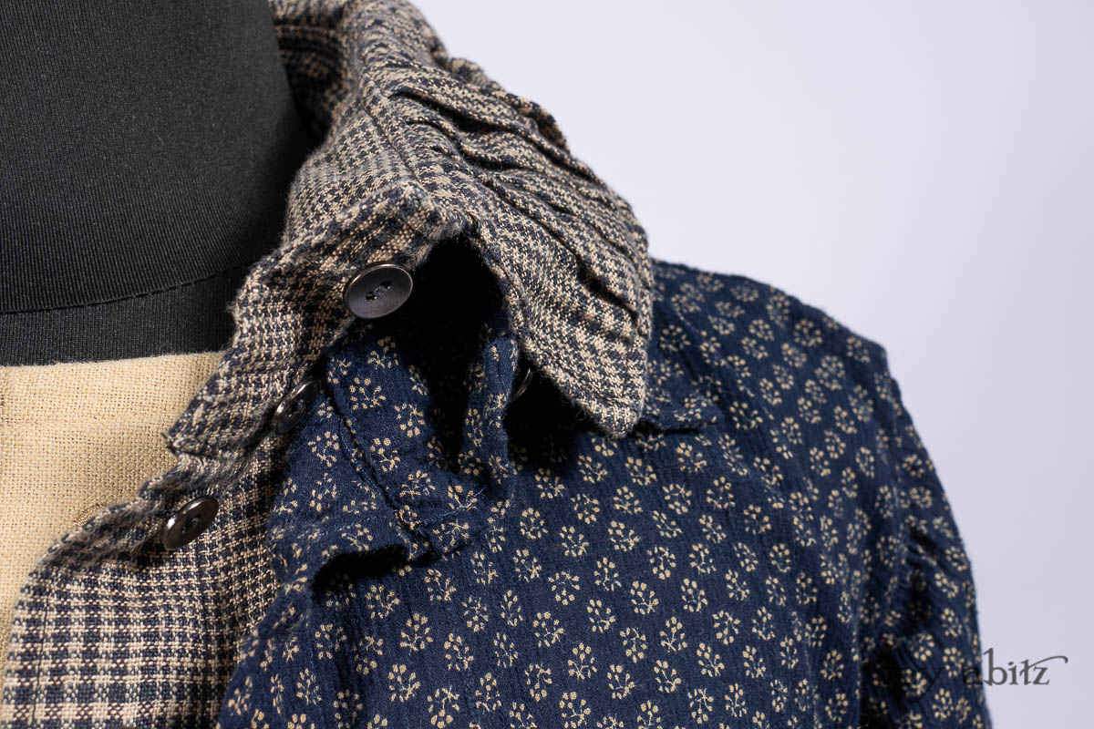 Wilhemena Duster Coat in Sandstone and River Petite Fleur Voile; Wilhemena Frock in Sandstone and River Plaid Linen; Windrush Frock in Sandstone Embroidered Dot Linen. – Ivey Abitz Bespoke Clothing