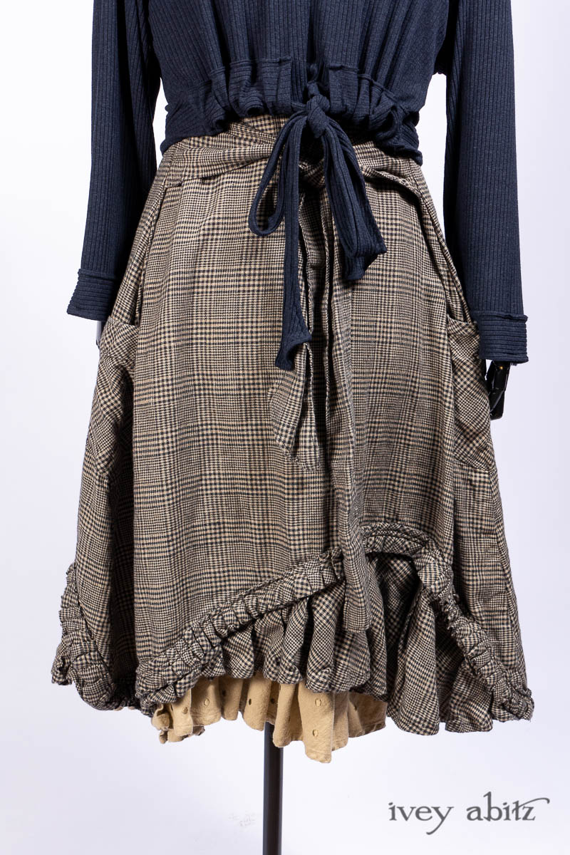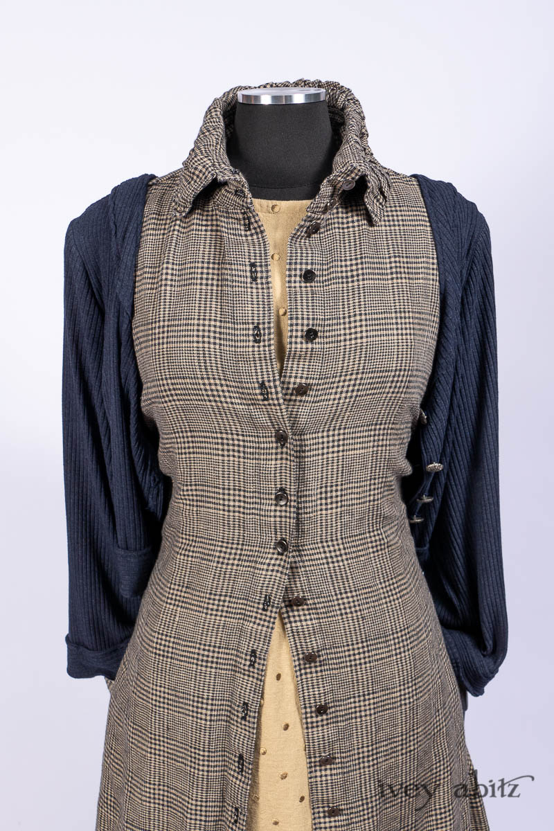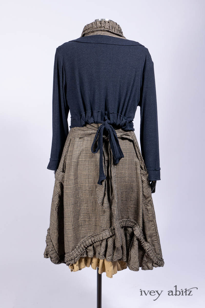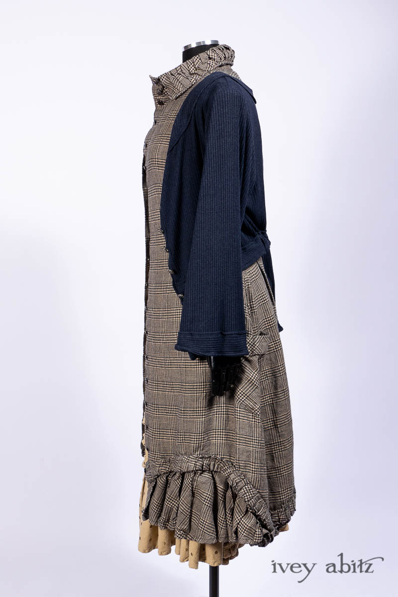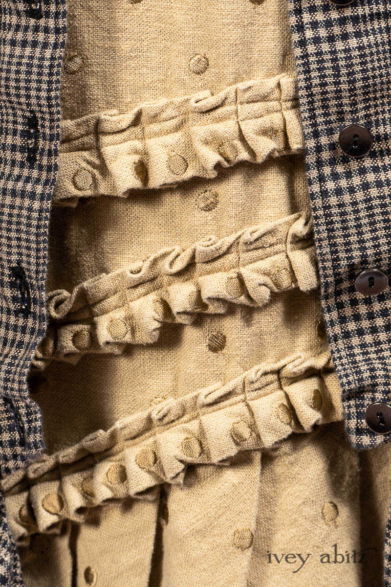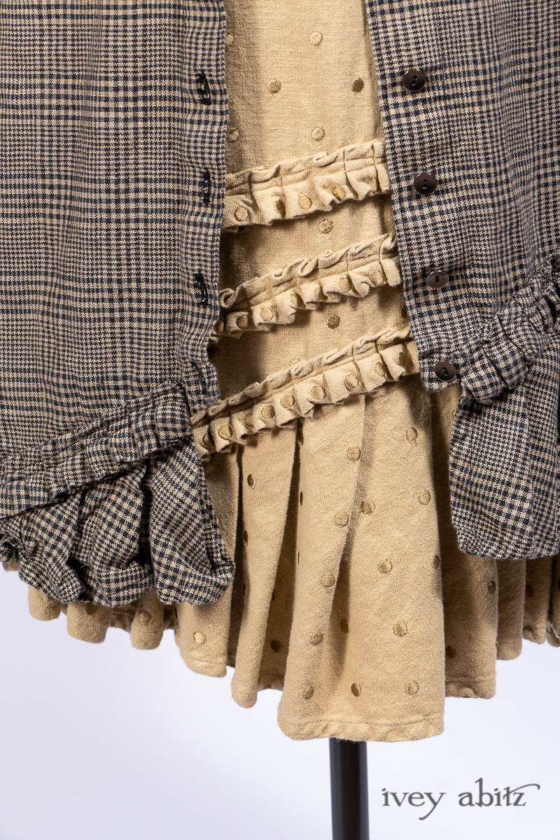 Hudson Jacket in Hudson River Ribbed Knit; Wilhemena Frock in Sandstone and River Plaid Linen; Windrush Frock in Sandstone Embroidered Dot Linen. – Ivey Abitz Bespoke Clothing