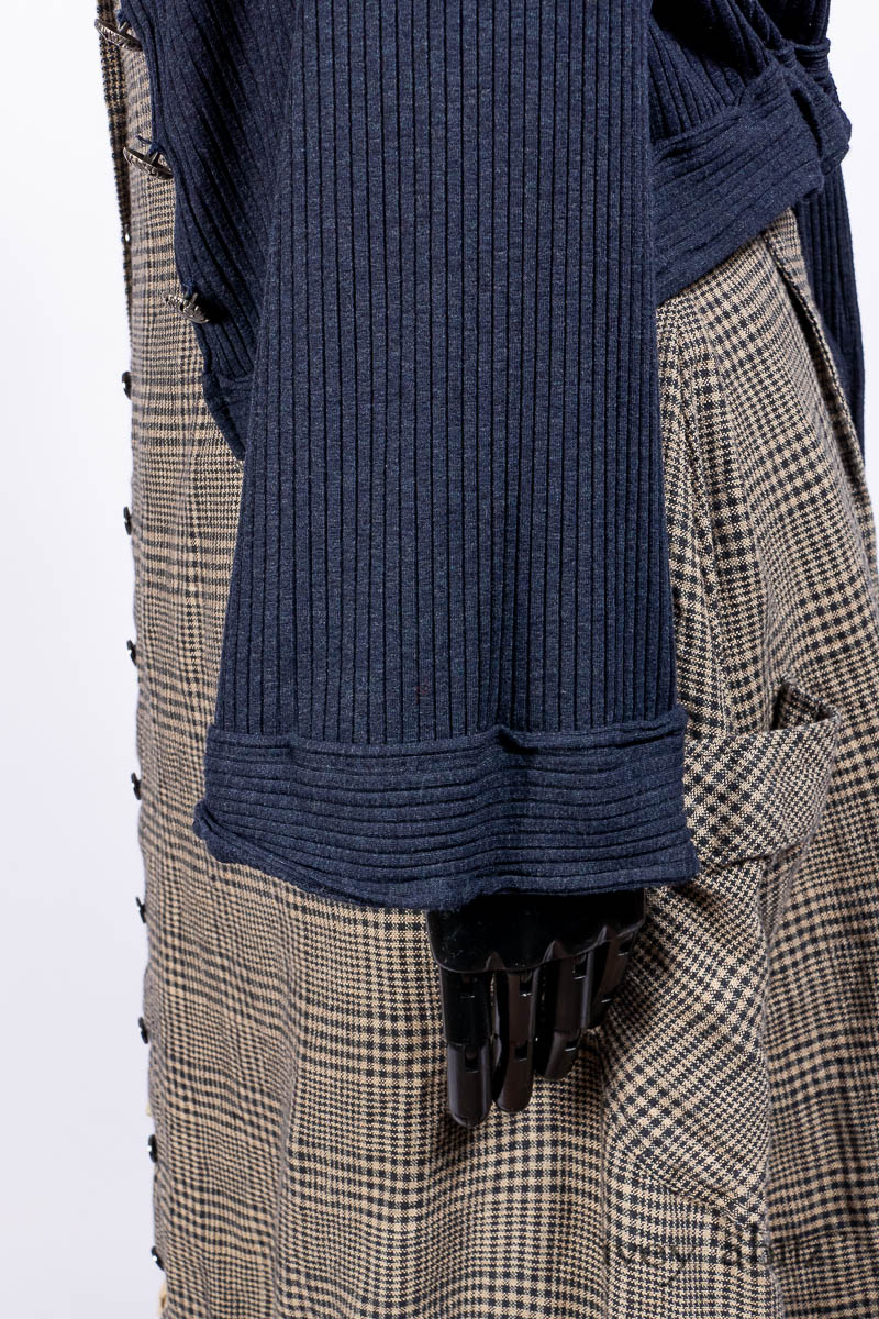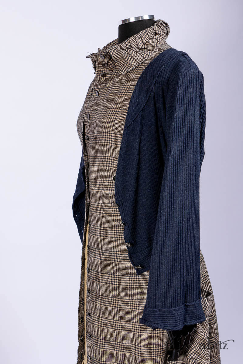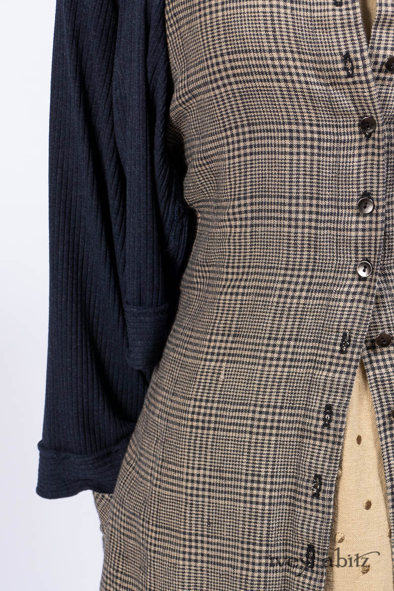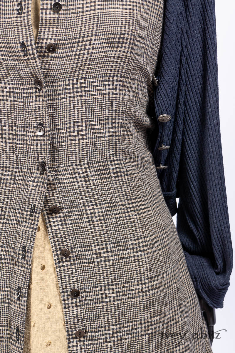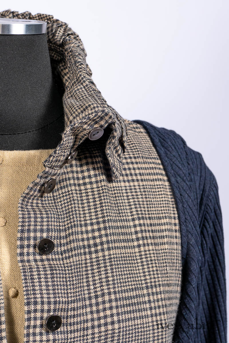 Hudson Jacket in Hudson River Ribbed Knit; Wilhemena Frock in Sandstone and River Plaid Linen; Windrush Frock in Sandstone Embroidered Dot Linen. – Ivey Abitz Bespoke Clothing