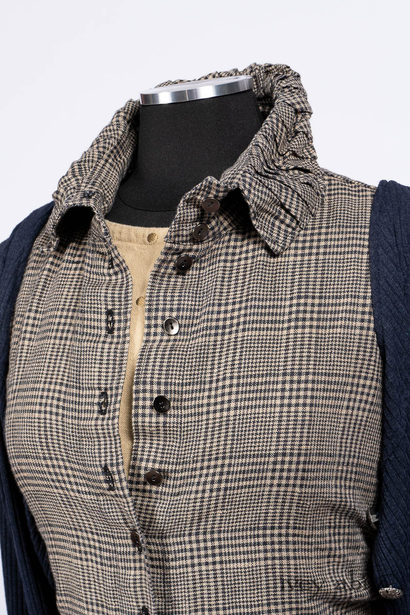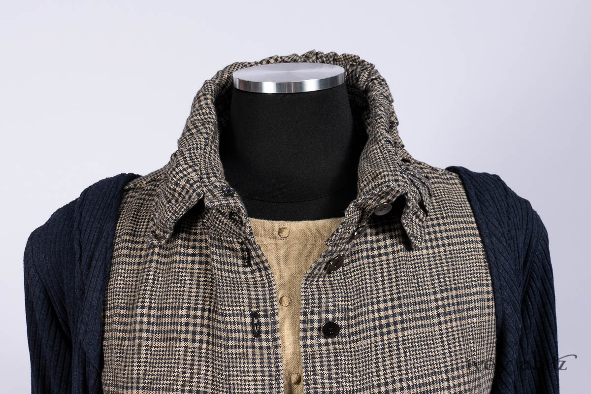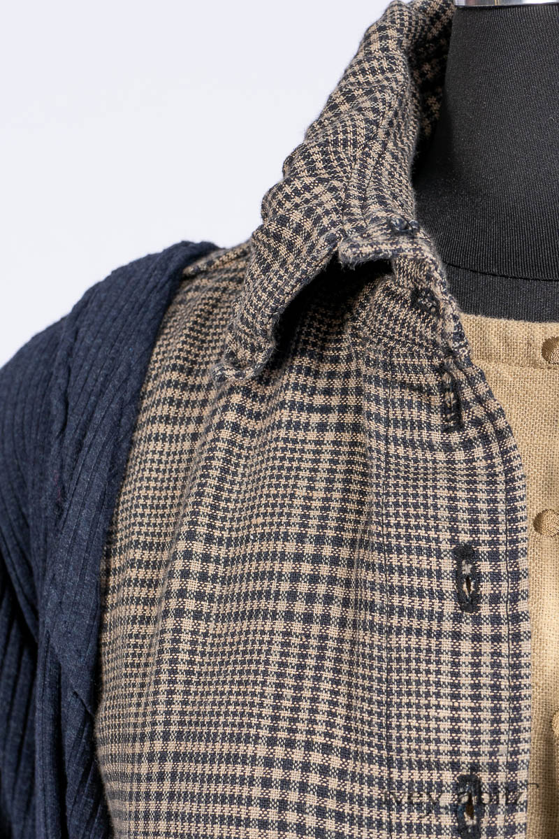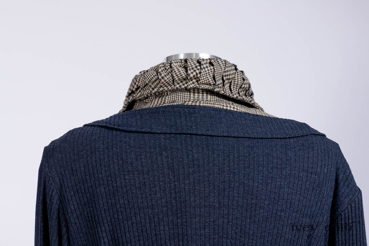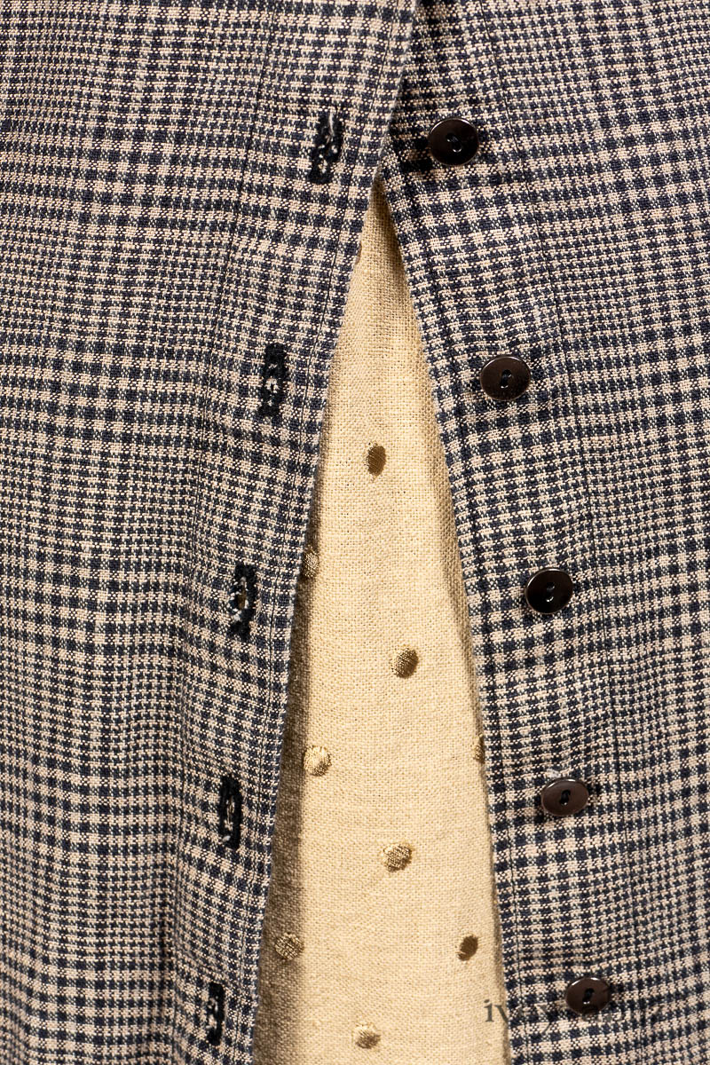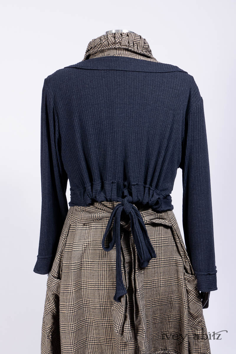 Hudson Jacket in Hudson River Ribbed Knit; Wilhemena Frock in Sandstone and River Plaid Linen; Windrush Frock in Sandstone Embroidered Dot Linen. – Ivey Abitz Bespoke Clothing