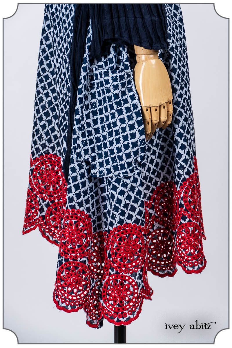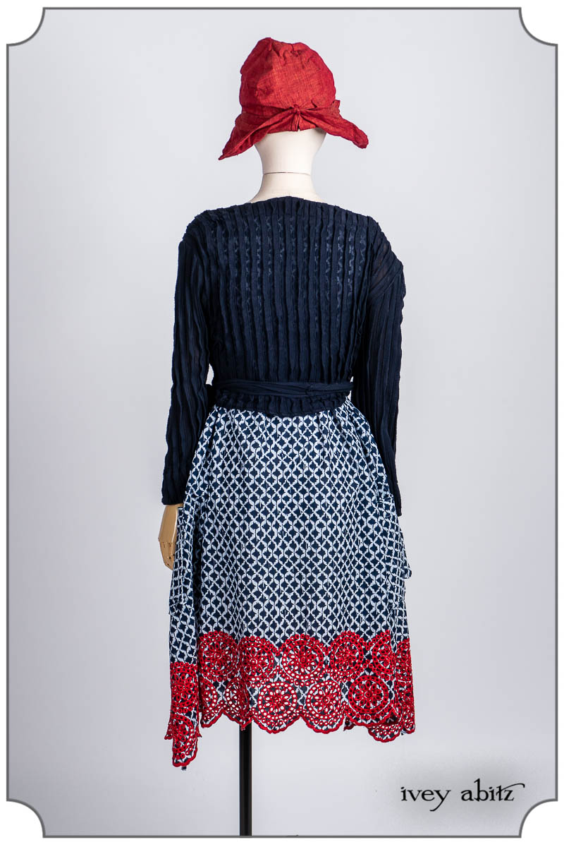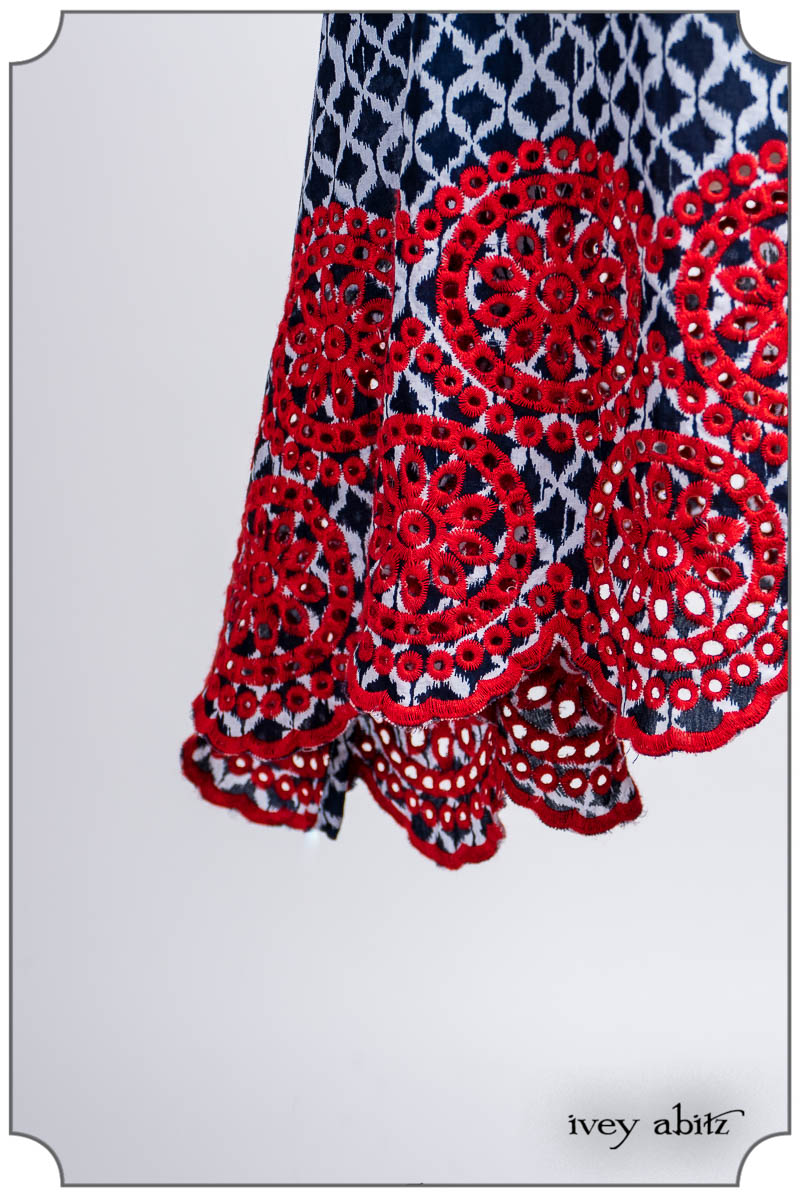 - Pique-nique Frock in Bastille Blue and Poppy Embroidered Weave