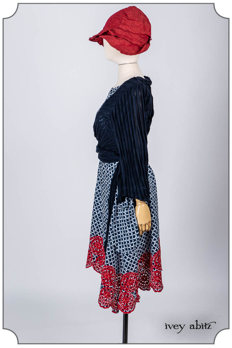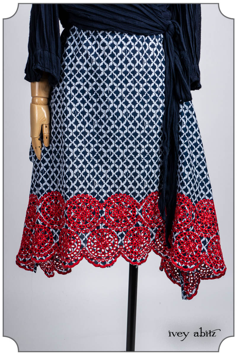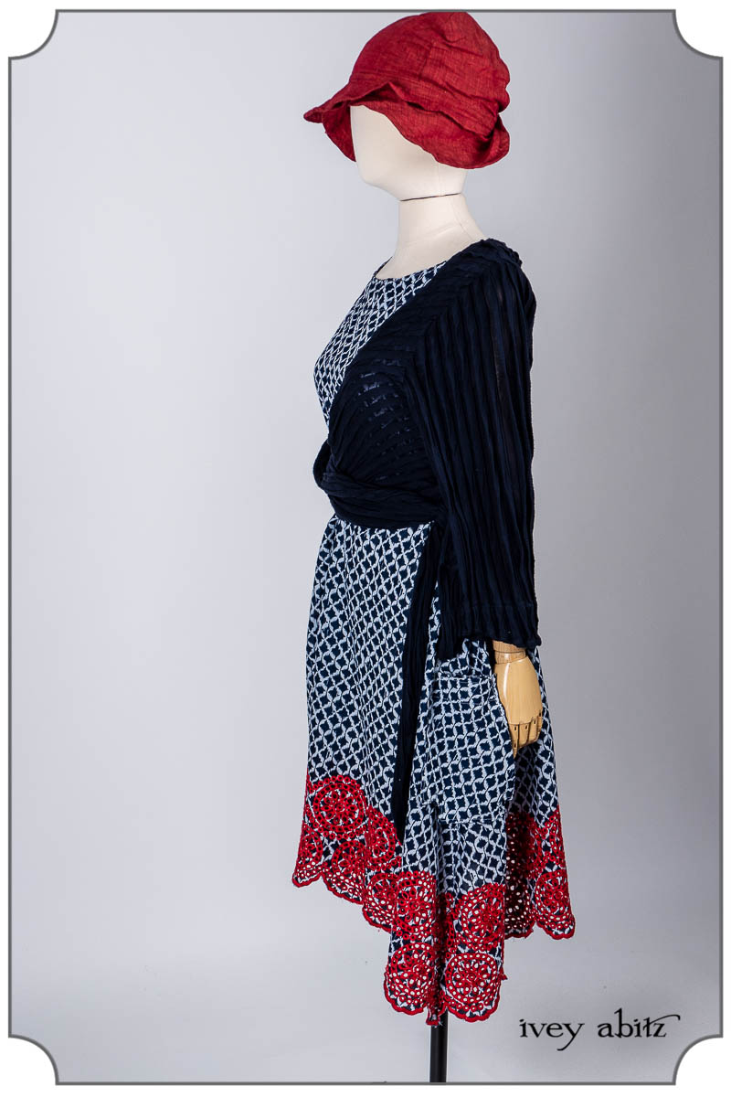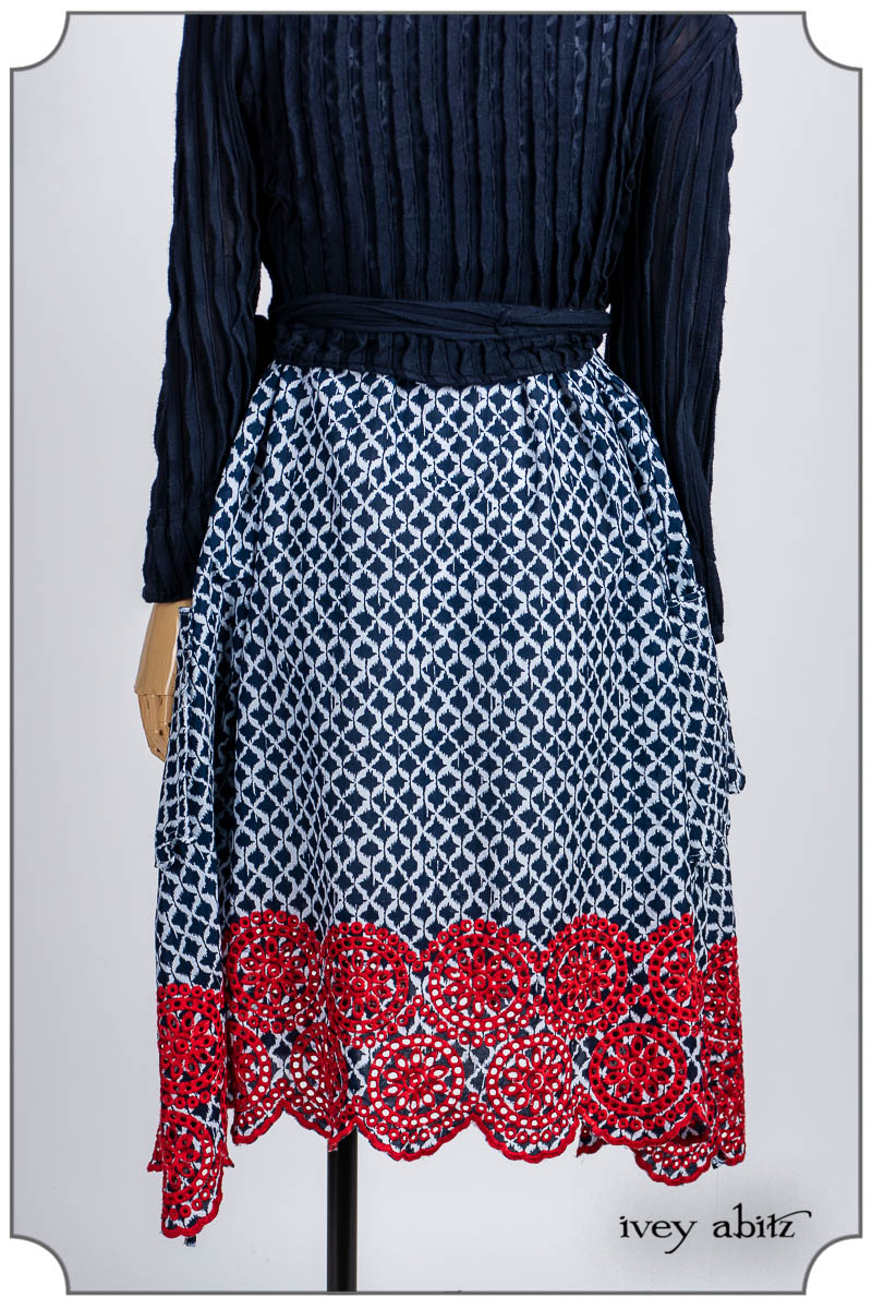 - Pique-nique Frock in Bastille Blue and Poppy Embroidered Weave
