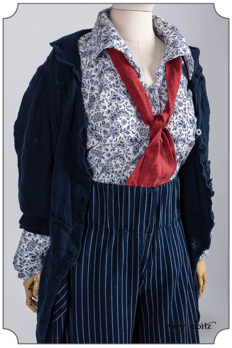• Campanella Shirt Jacket in Bastille Blue Washed Crinkled Weave