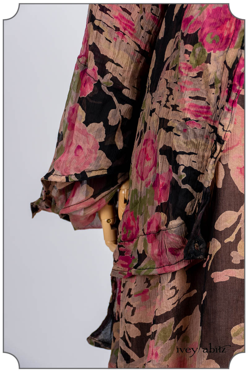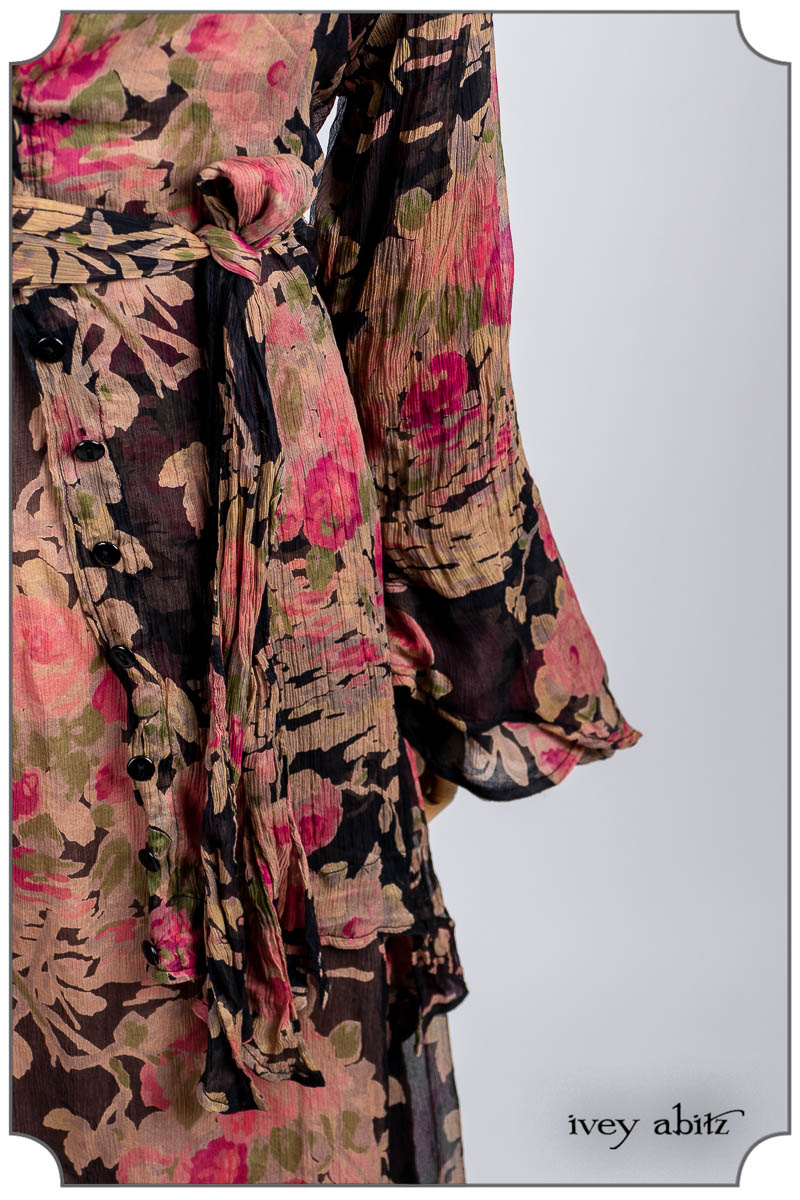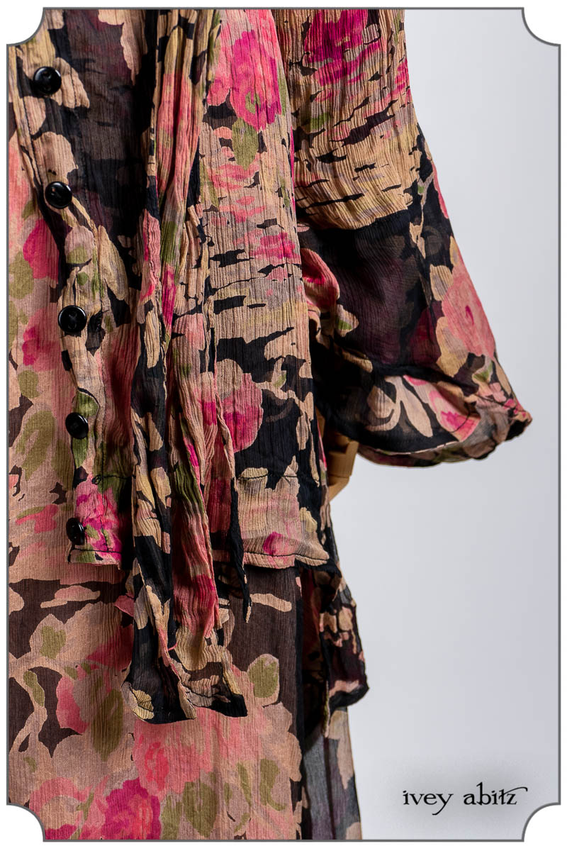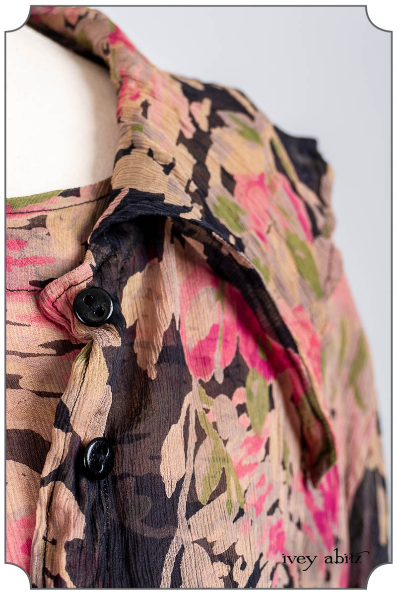 - Chittister Shirt Jacket in Rose and Noir Nouveau Floral Silk Chiffon
