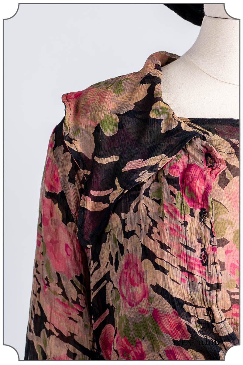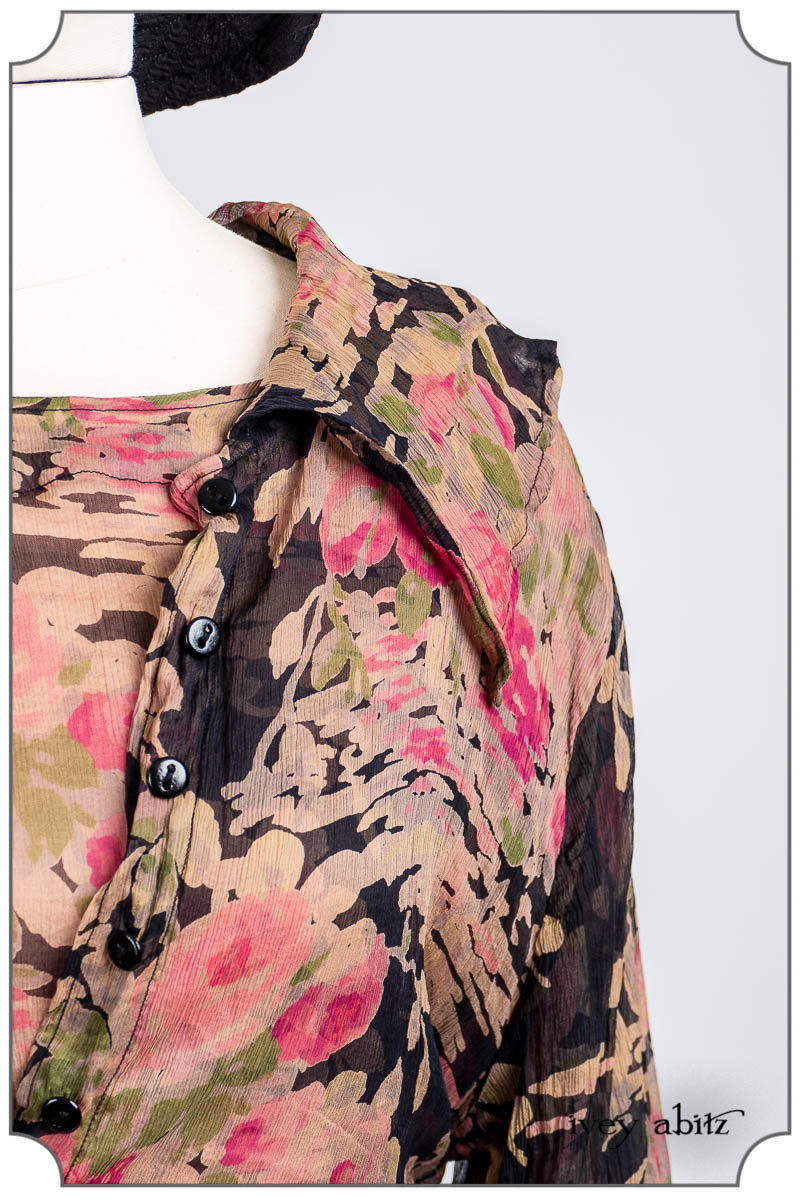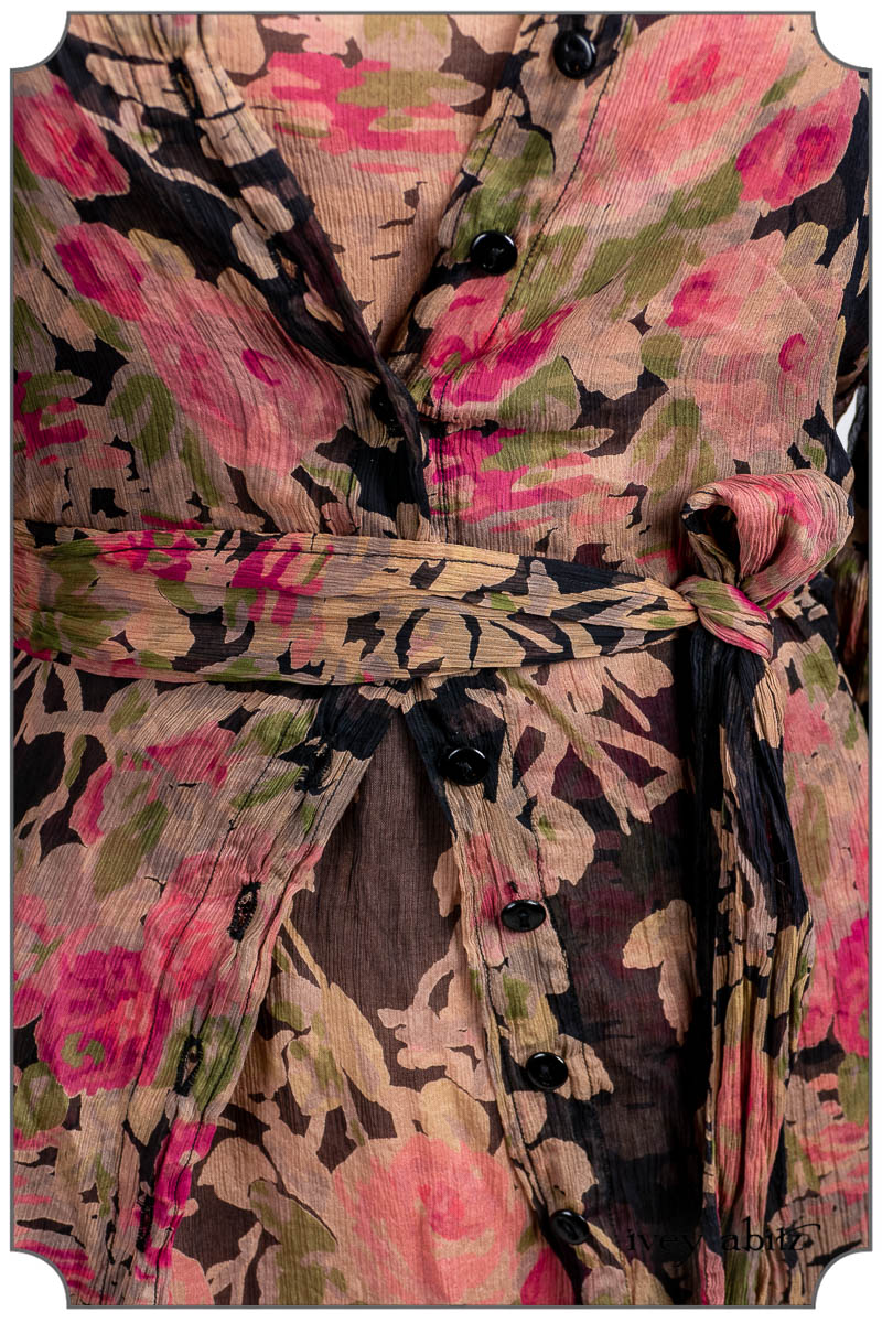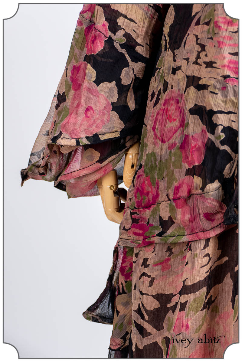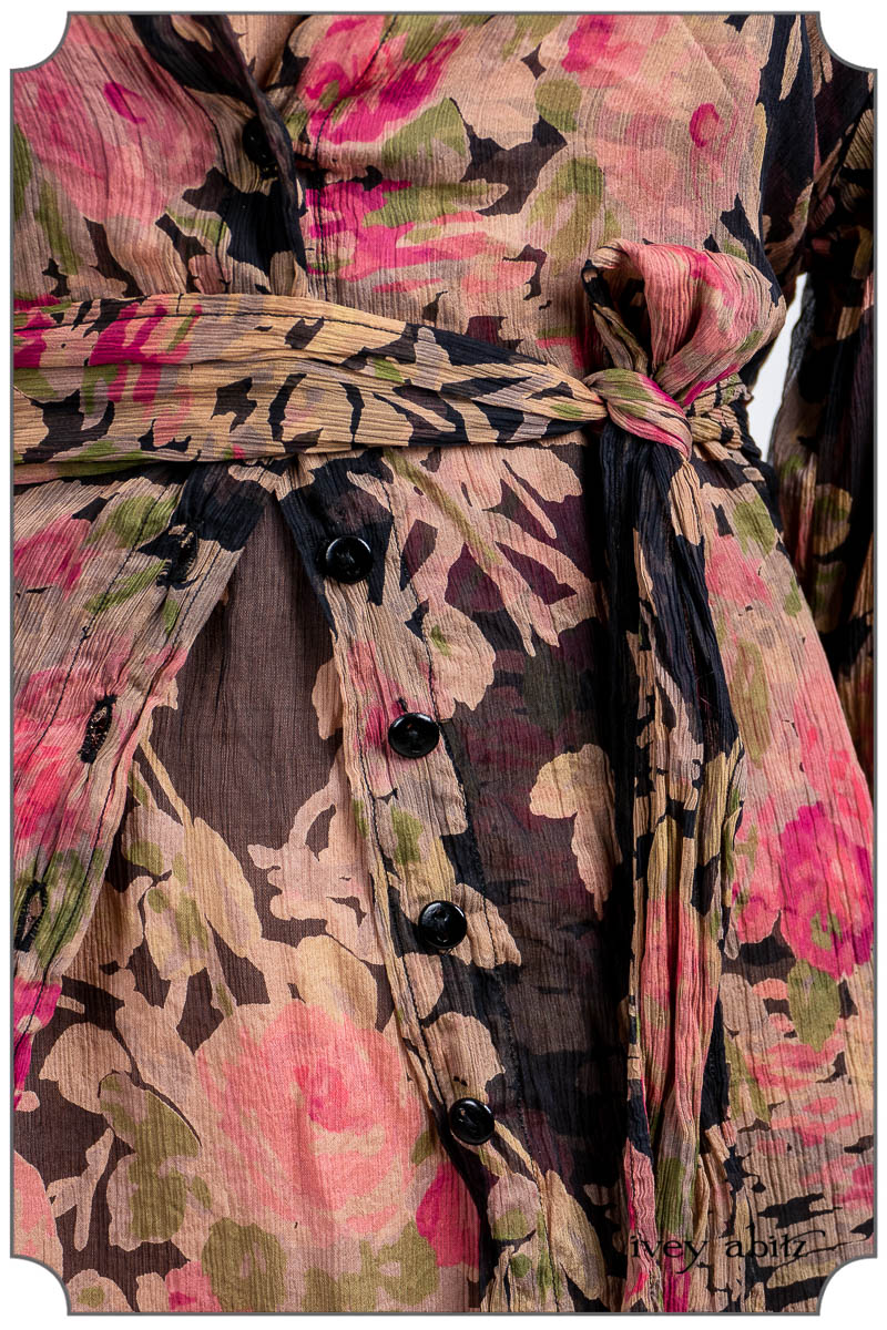 - Chittister Shirt Jacket in Rose and Noir Nouveau Floral Silk Chiffon