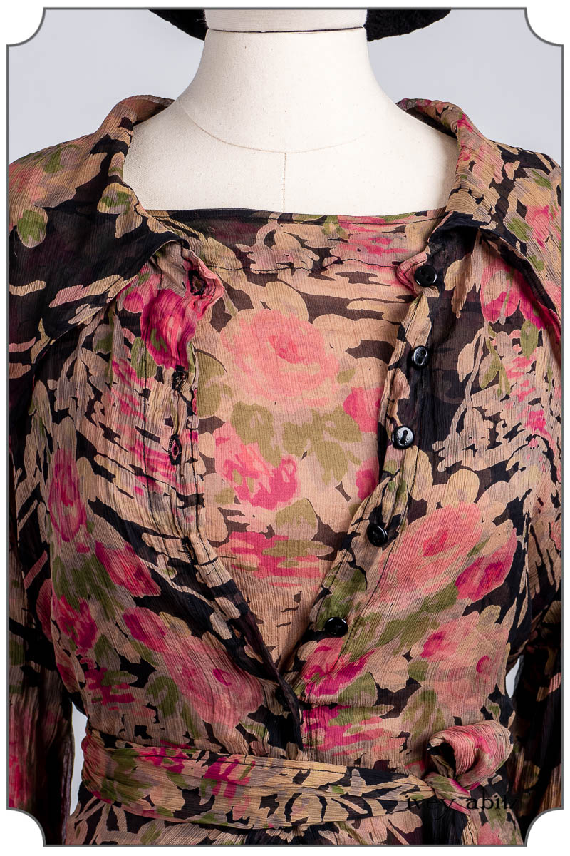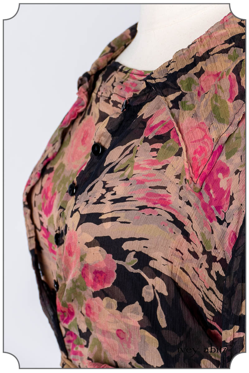 - Chittister Dress in Rose and Noir Floral Silk Chiffon