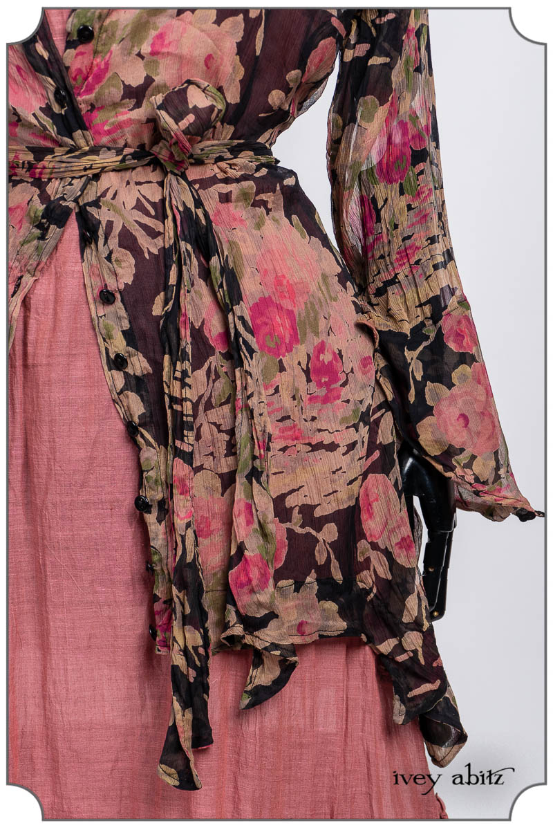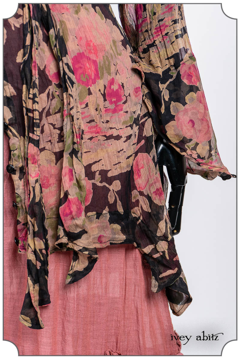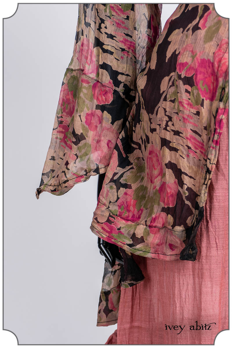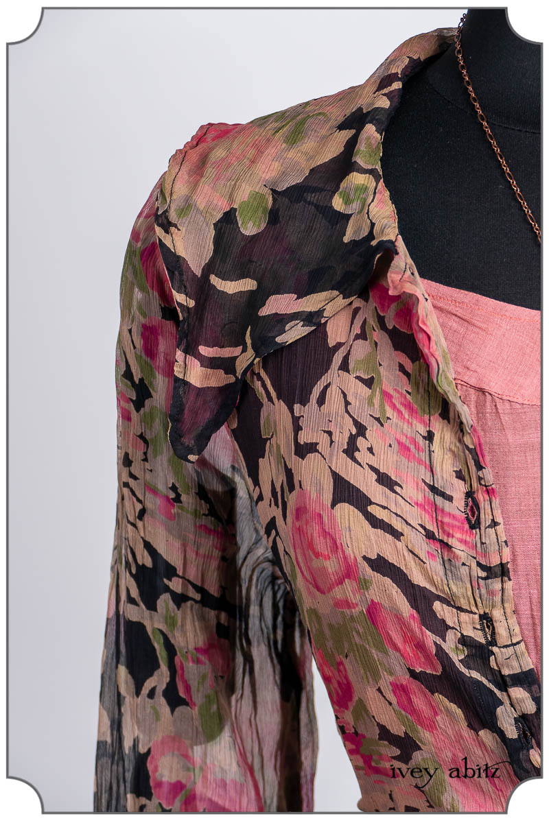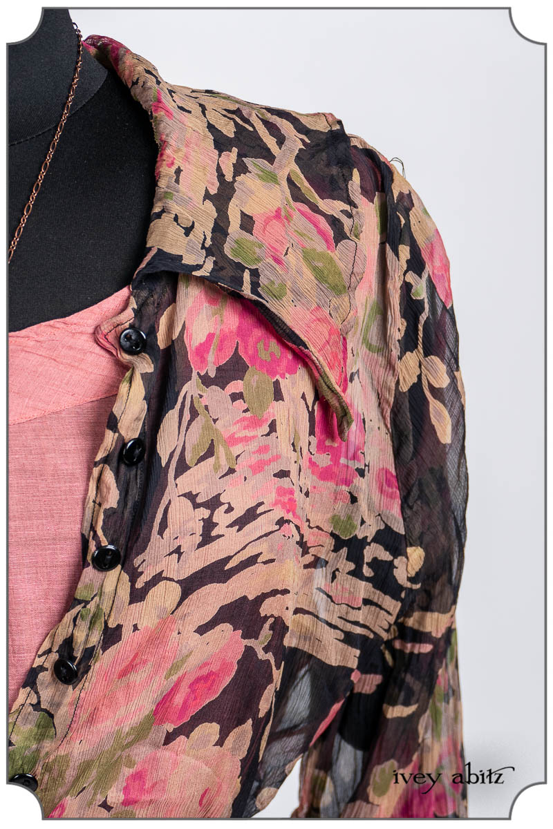 - Chittister Shirt Jacket in Noir and Rose Floral Silk Chiffon