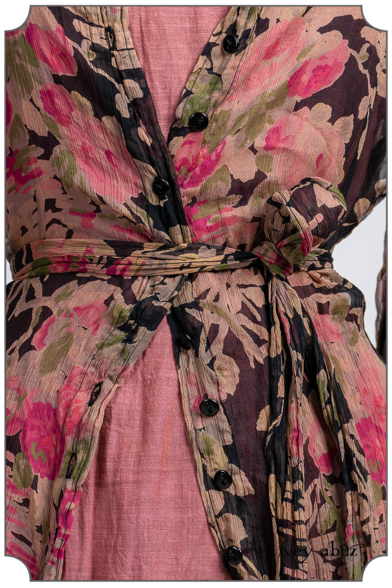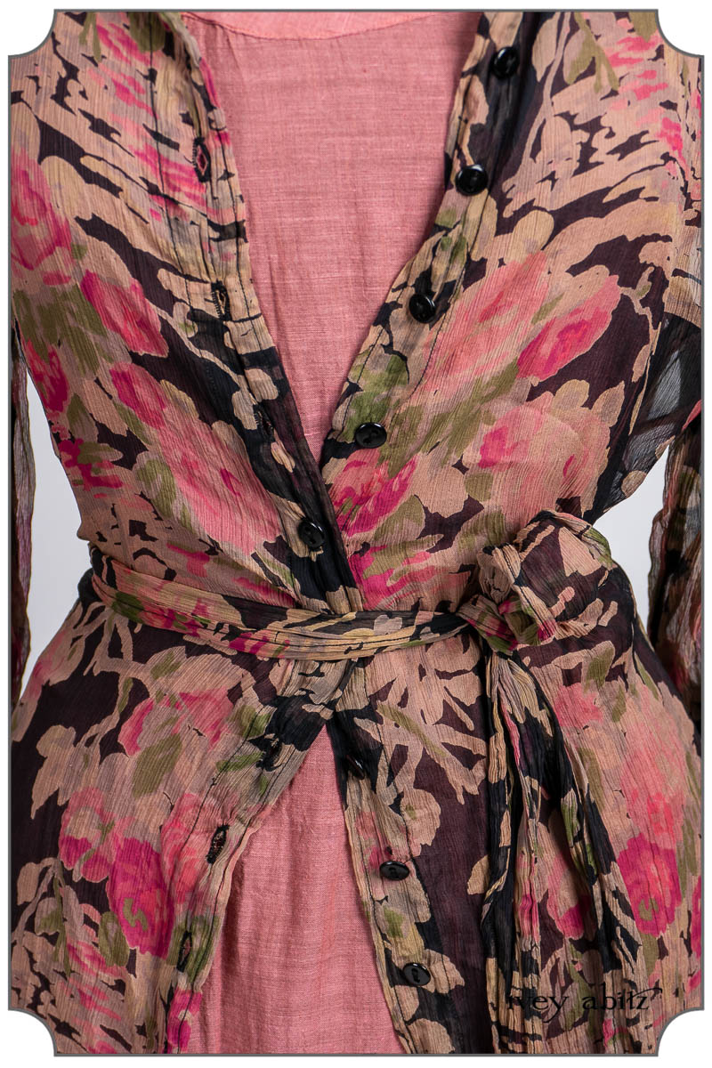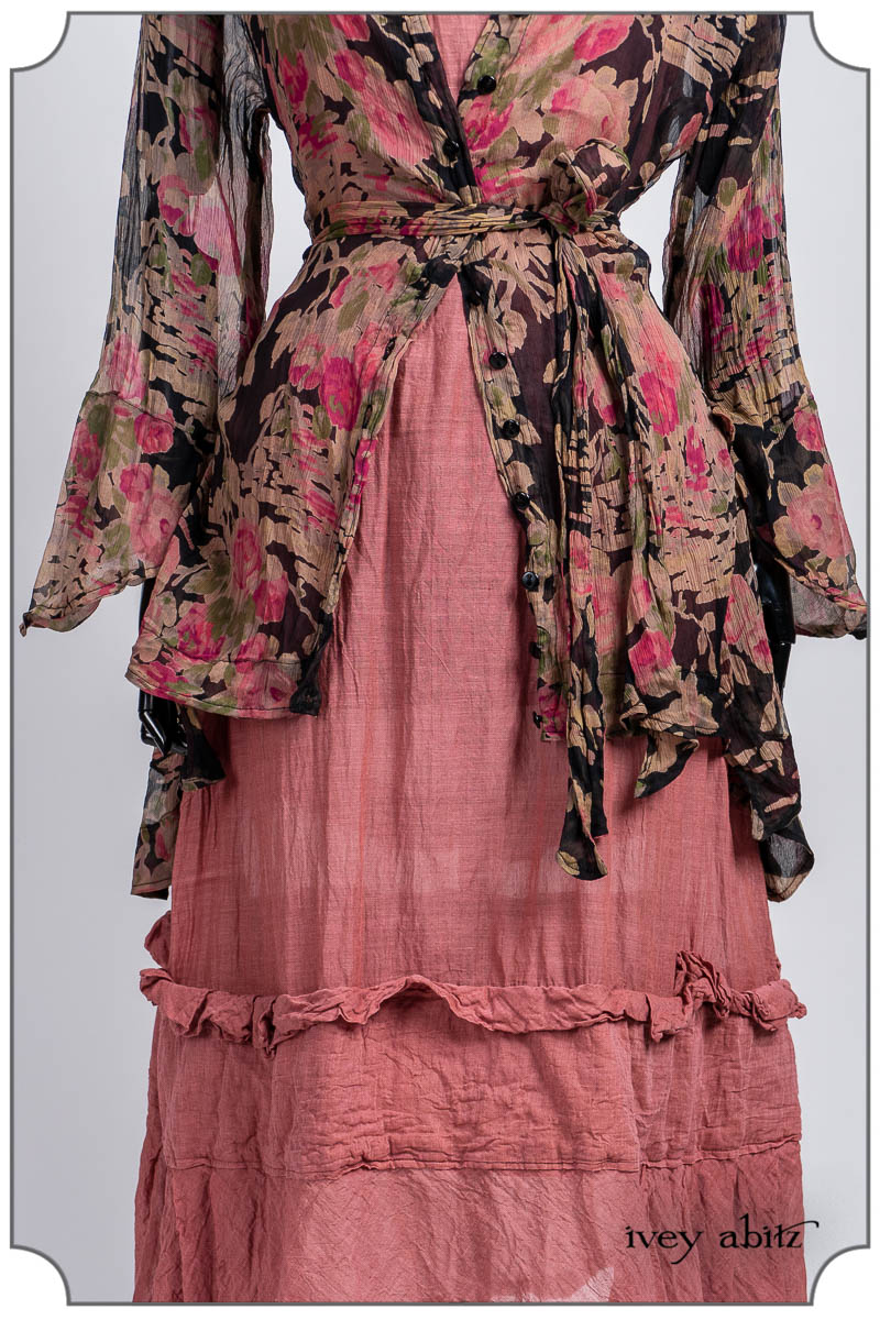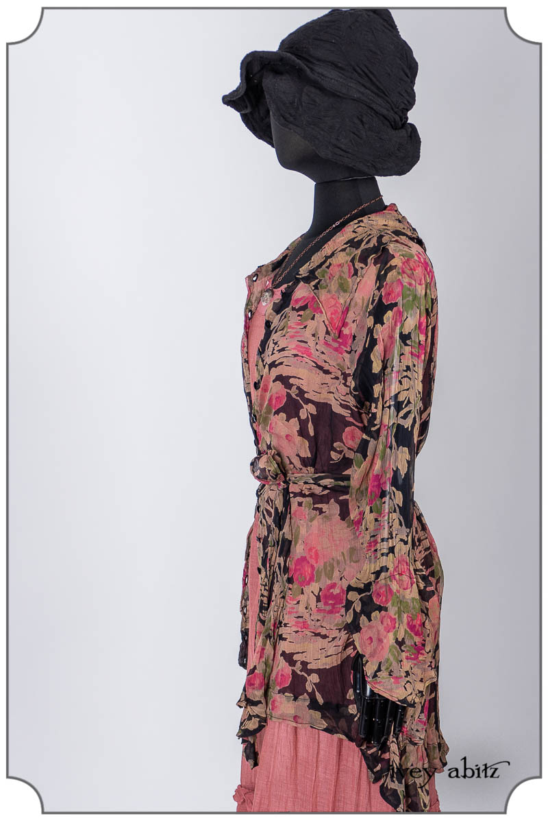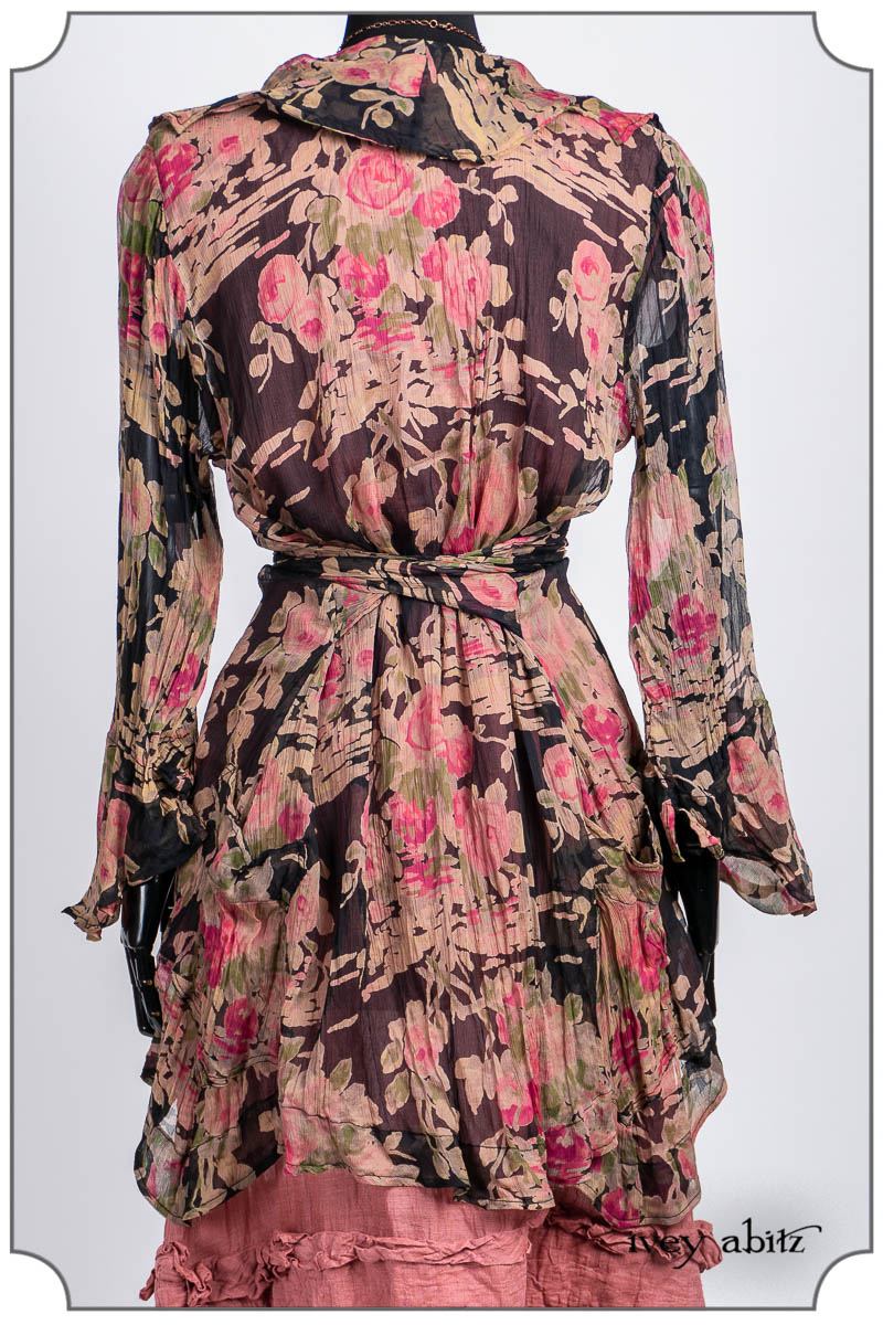 - Chittister Shirt Jacket in Noir and Rose Floral Silk Chiffon
