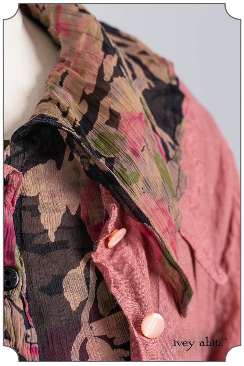 - Chittister Shirt Jacket in Noir and Rose Floral Silk Chiffon