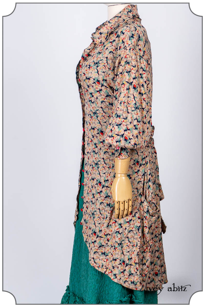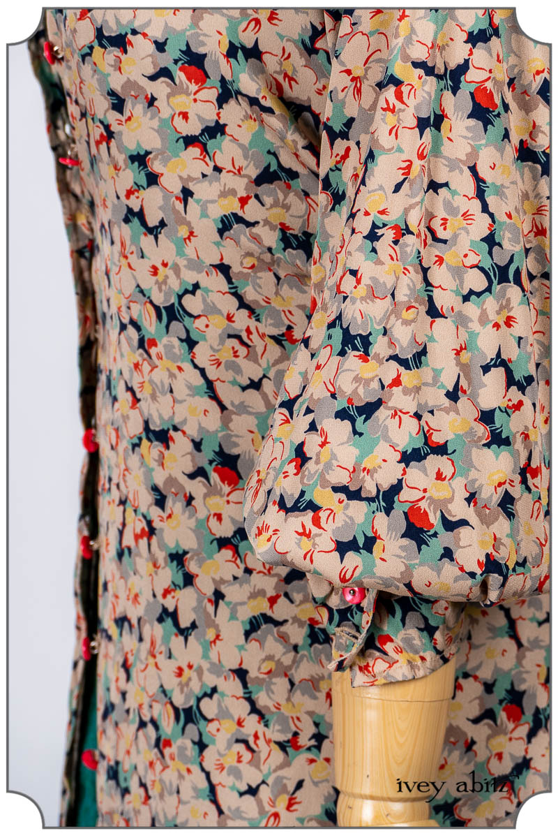 - Truitt Shirt Jacket in Veranda Fleur Stretch Silk Charmeuse