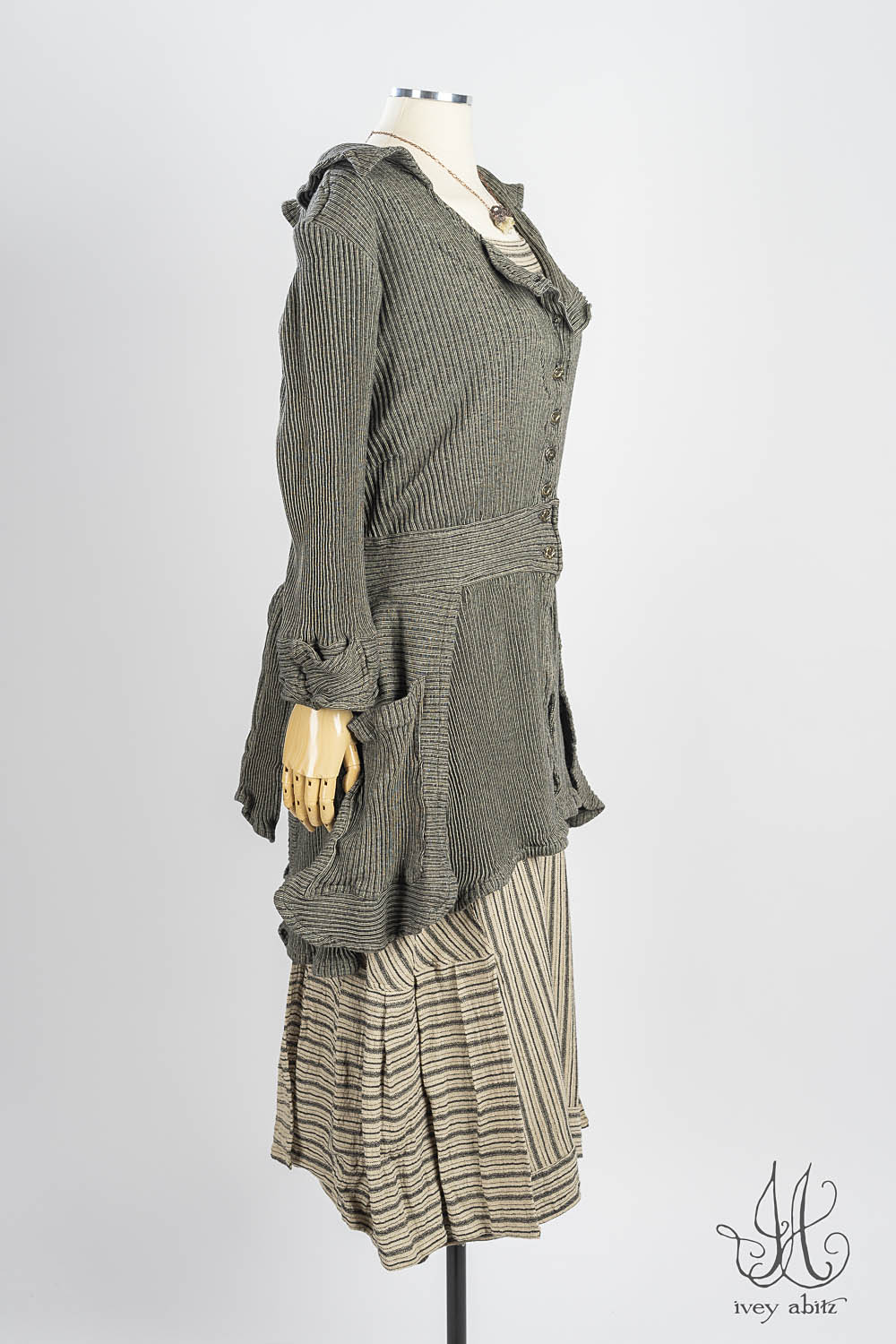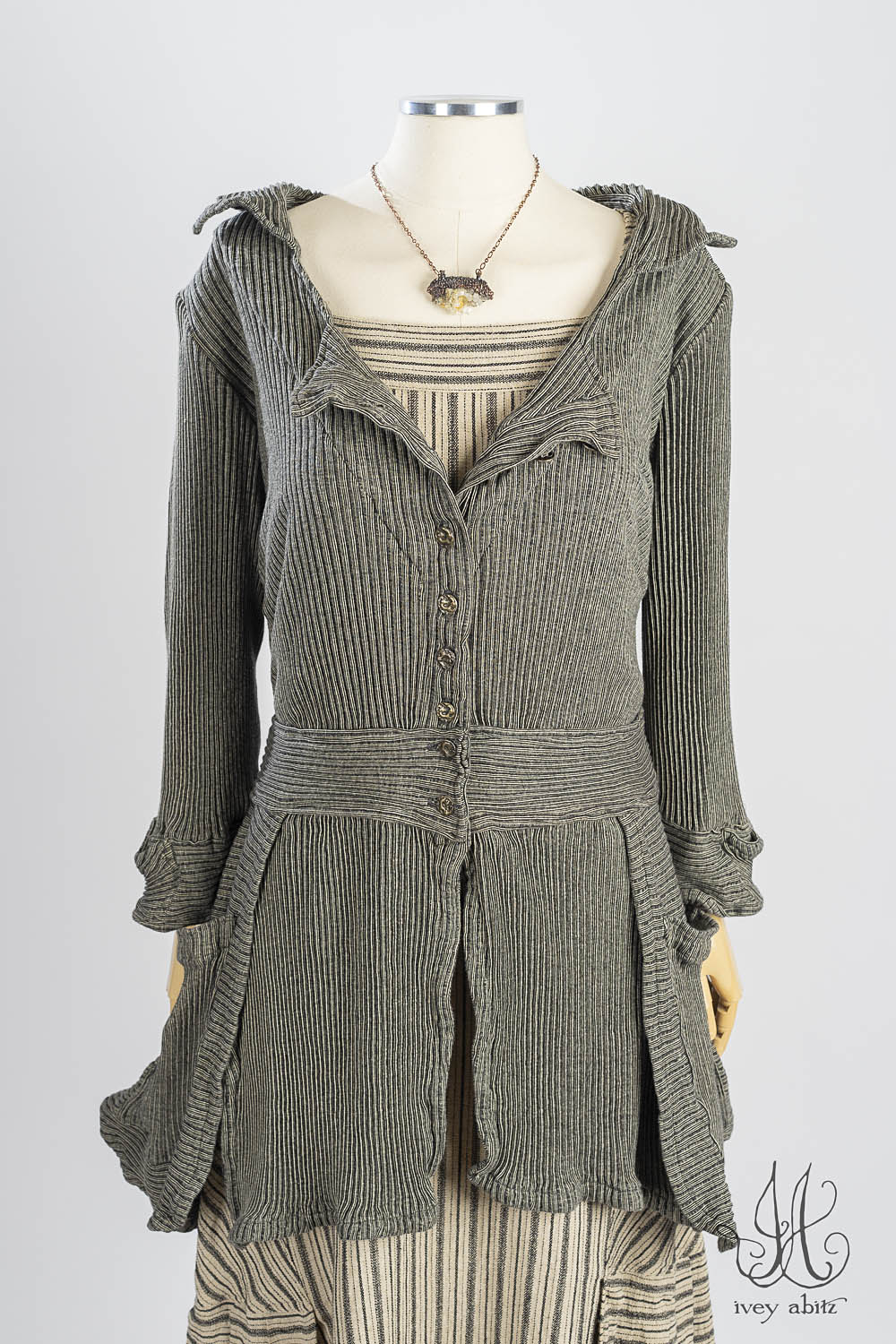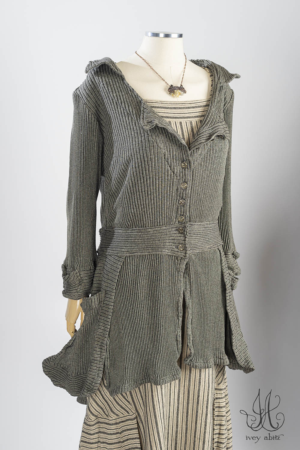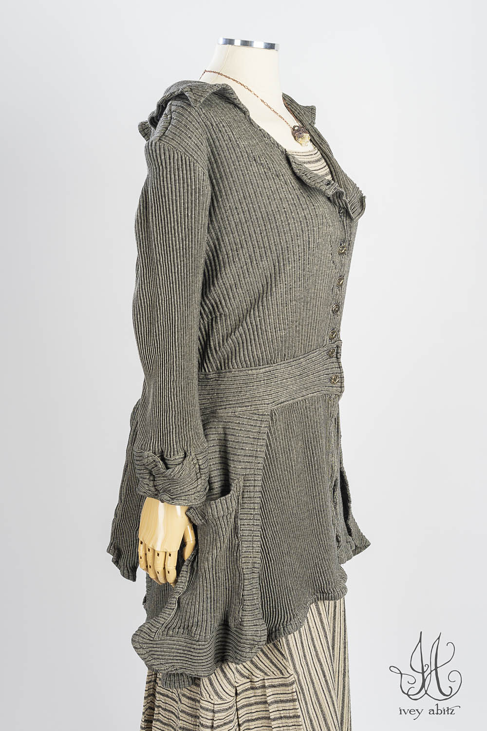 - Campanella Shirt Jacket in Iron and Stone Accordion Ribbed Knit