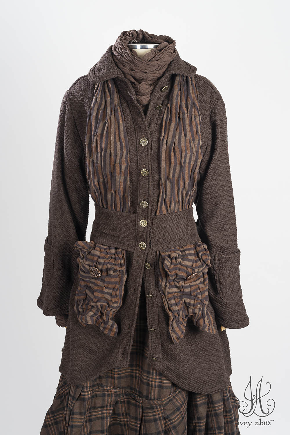 - Lelant Neck Wrap and Arm Sleeves in Oak Puckered Knit