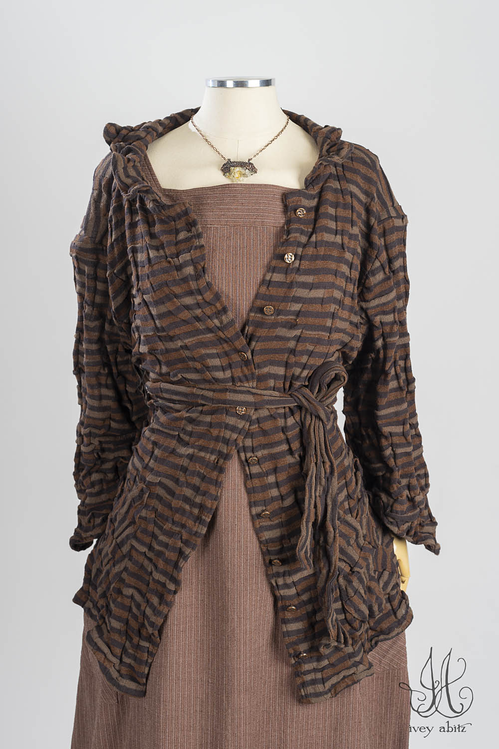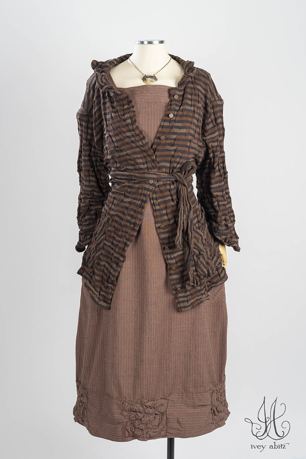 - Madeline Rose Frock in Heirloom Oak Pinstripe Stretch Weave