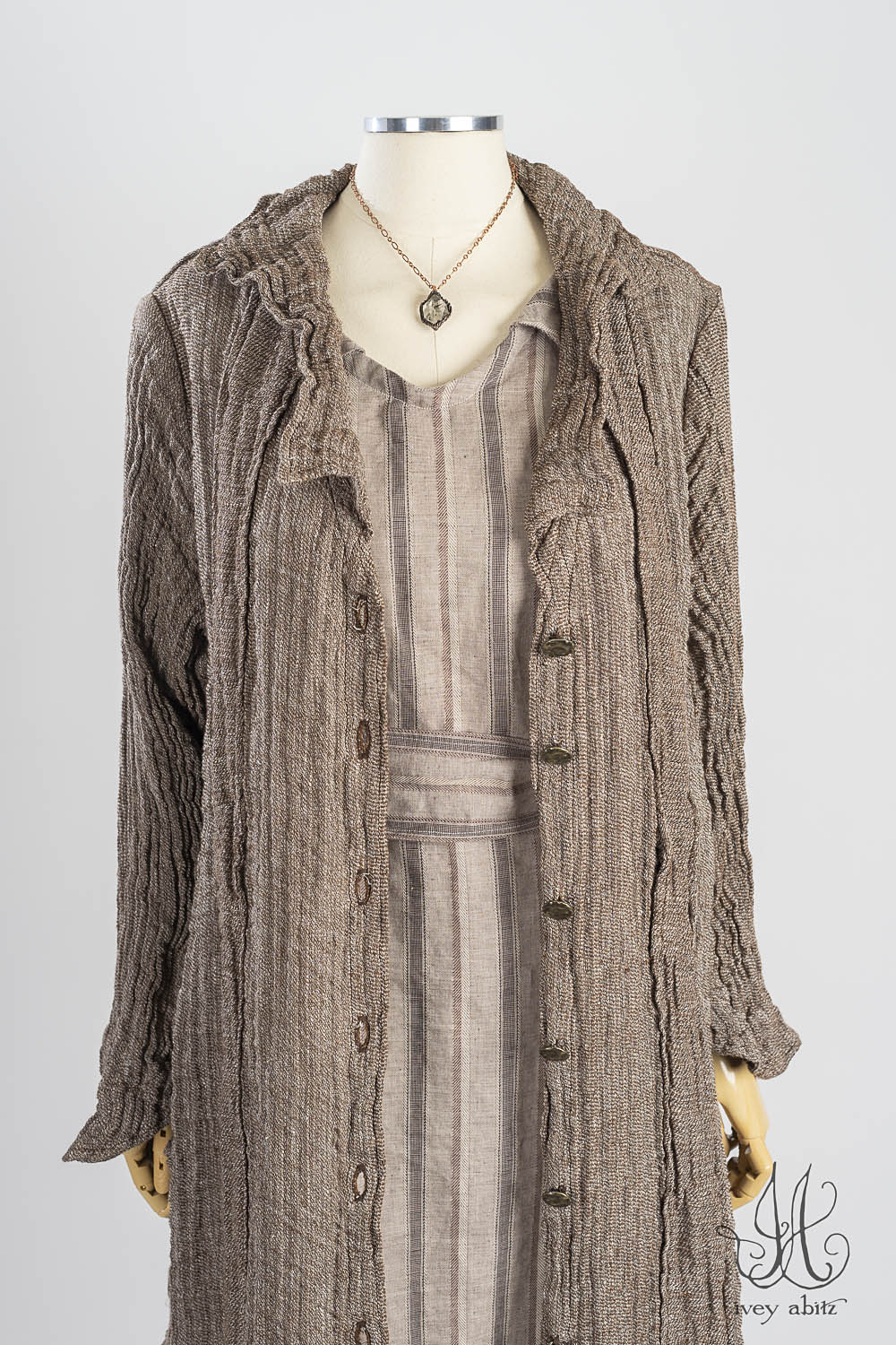 - Vanetten Duster Coat in Limbert Brown Crinkled Washed Weave