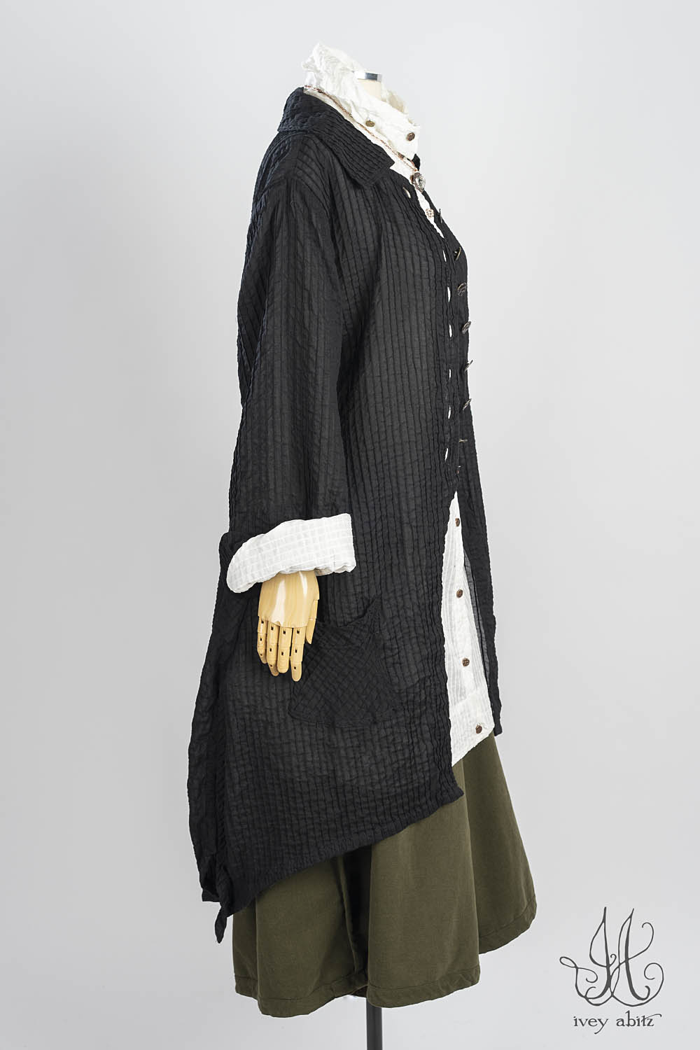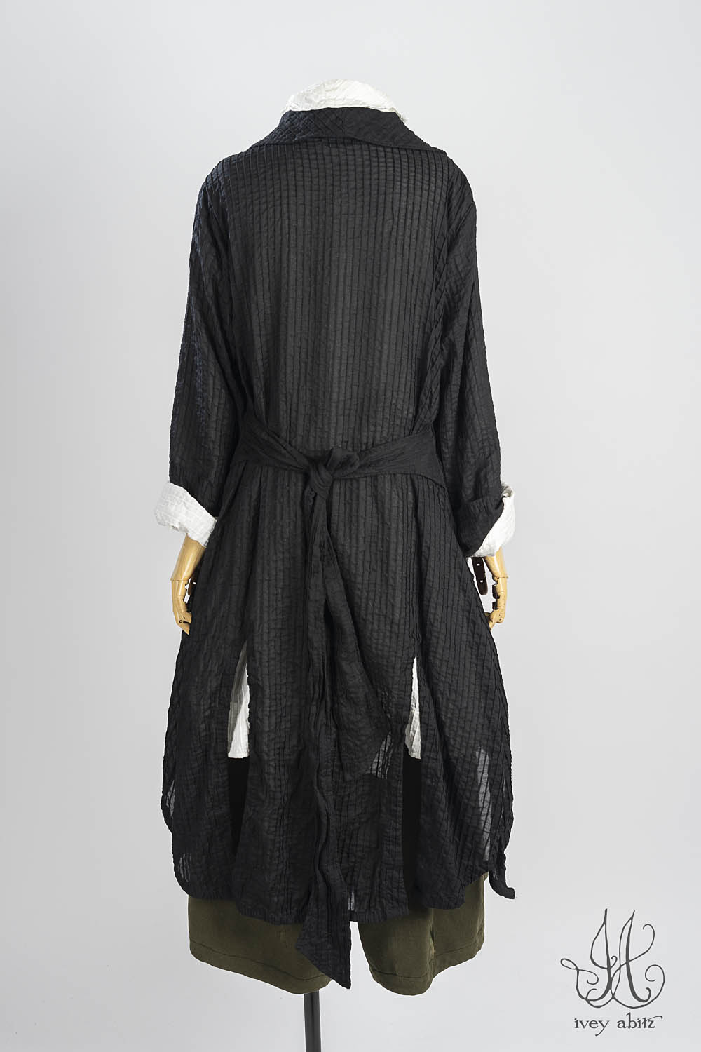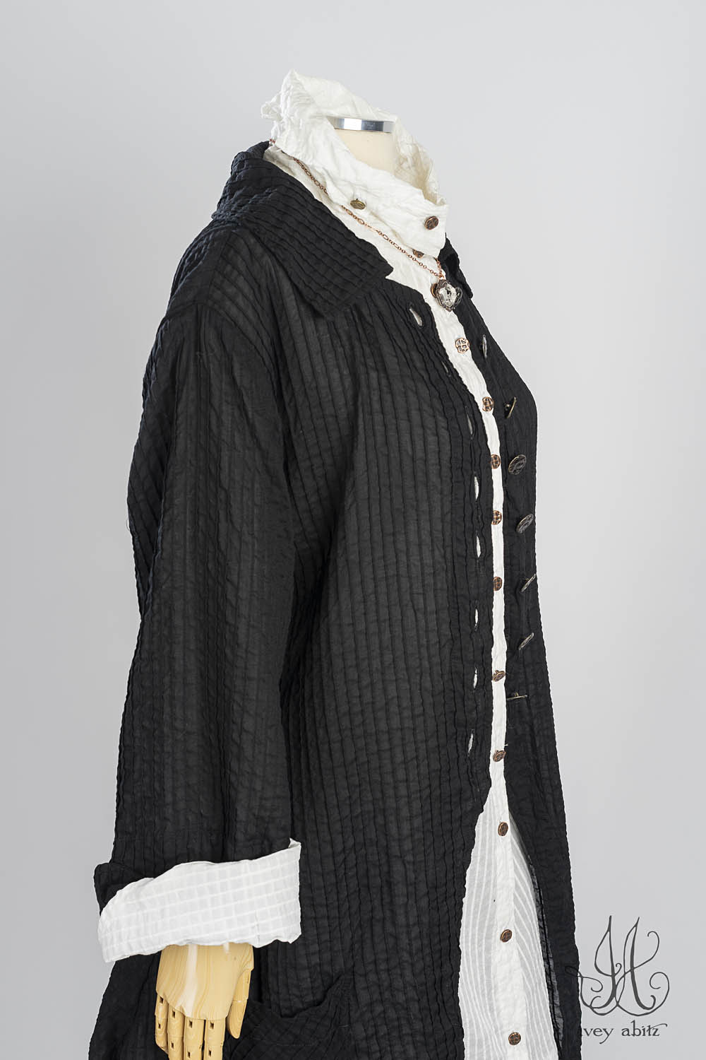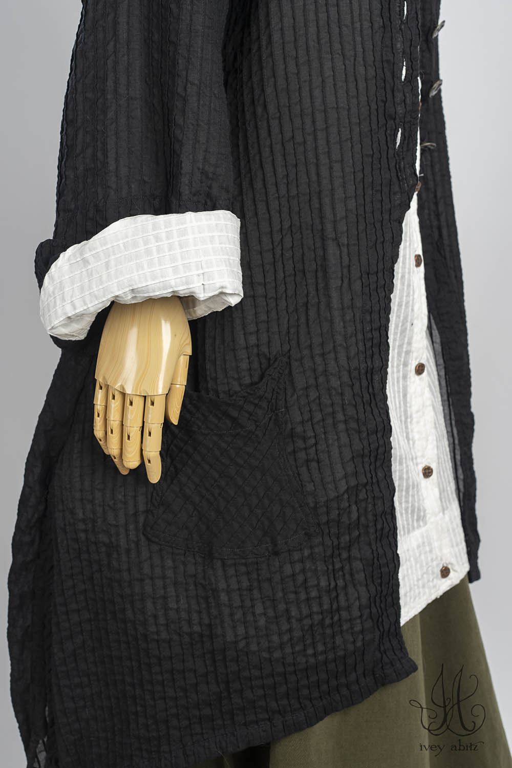 - Elsie Duster Coat in Iron Pin Tucked Voile