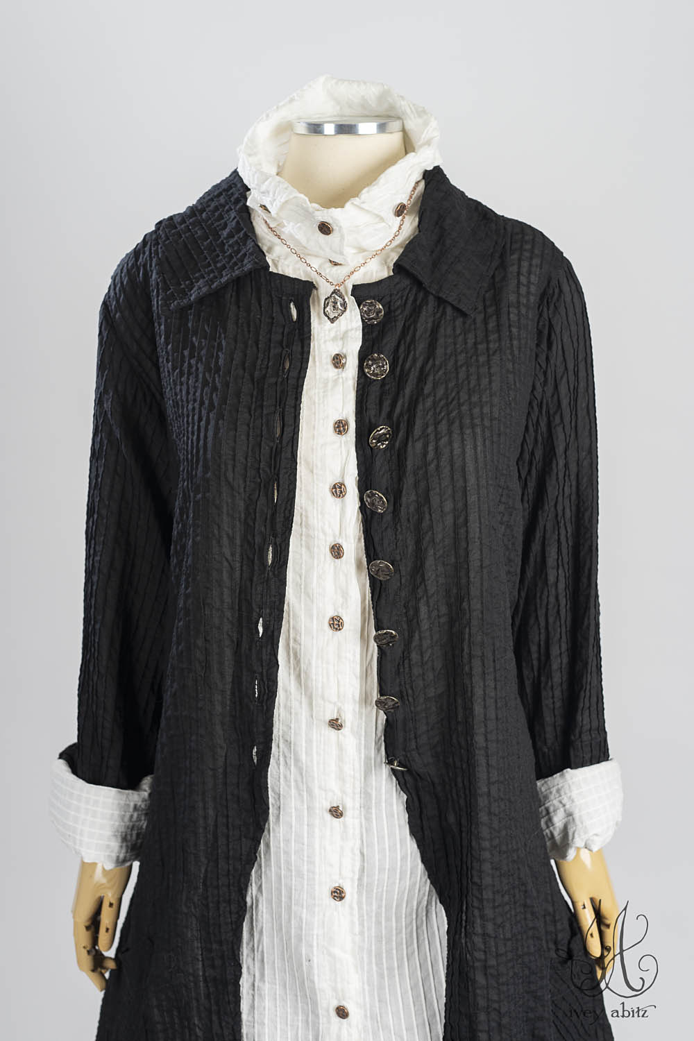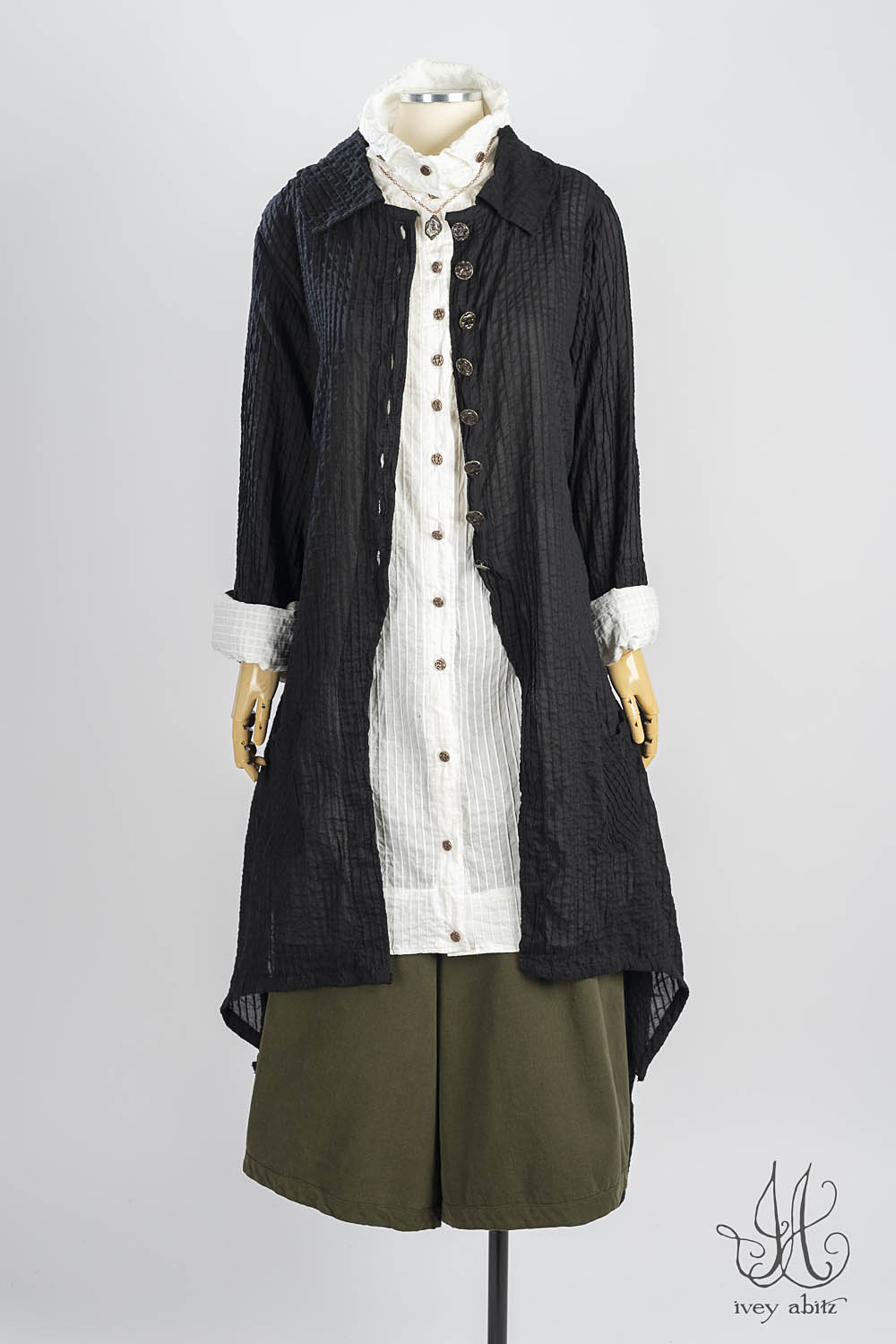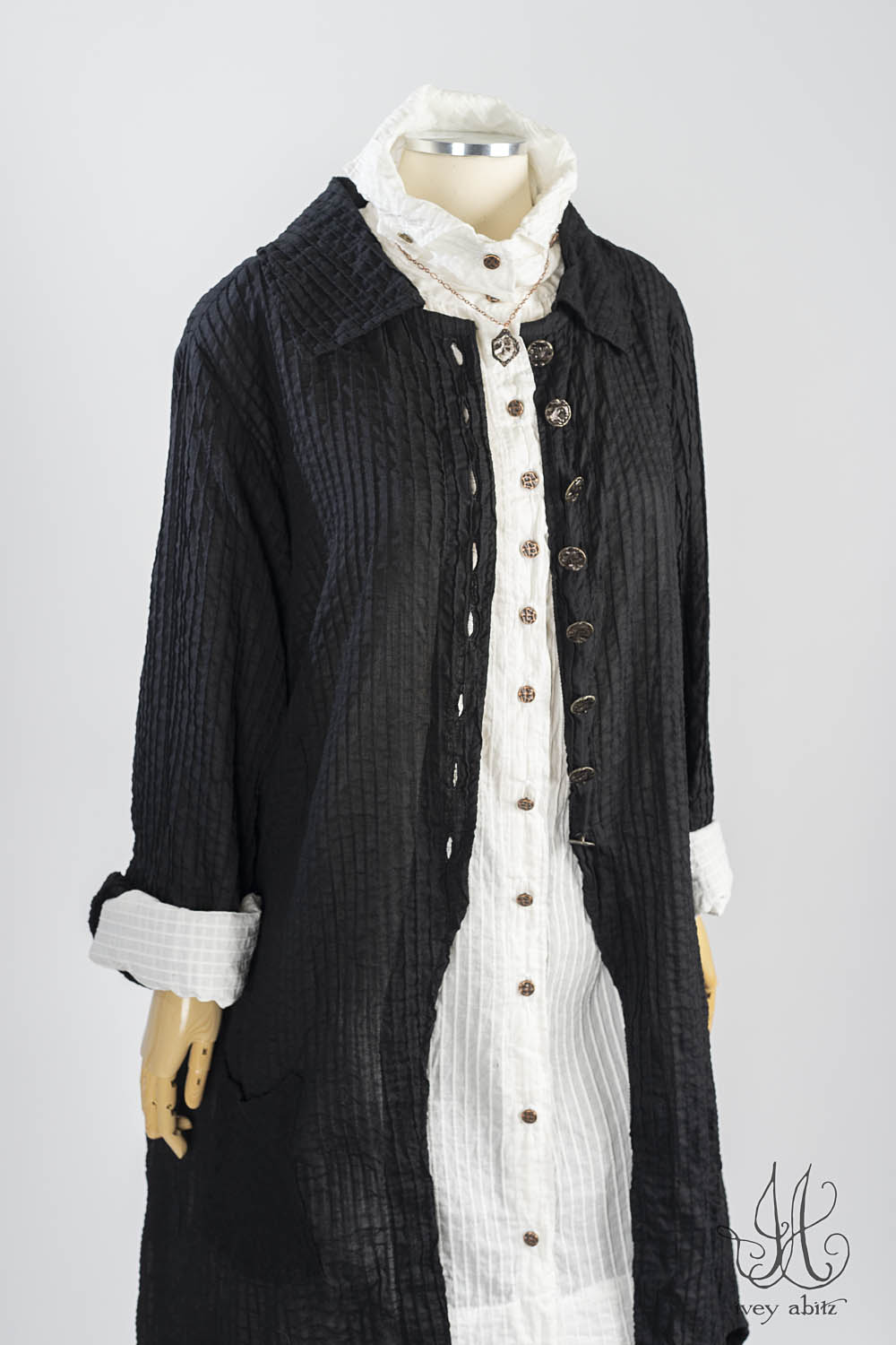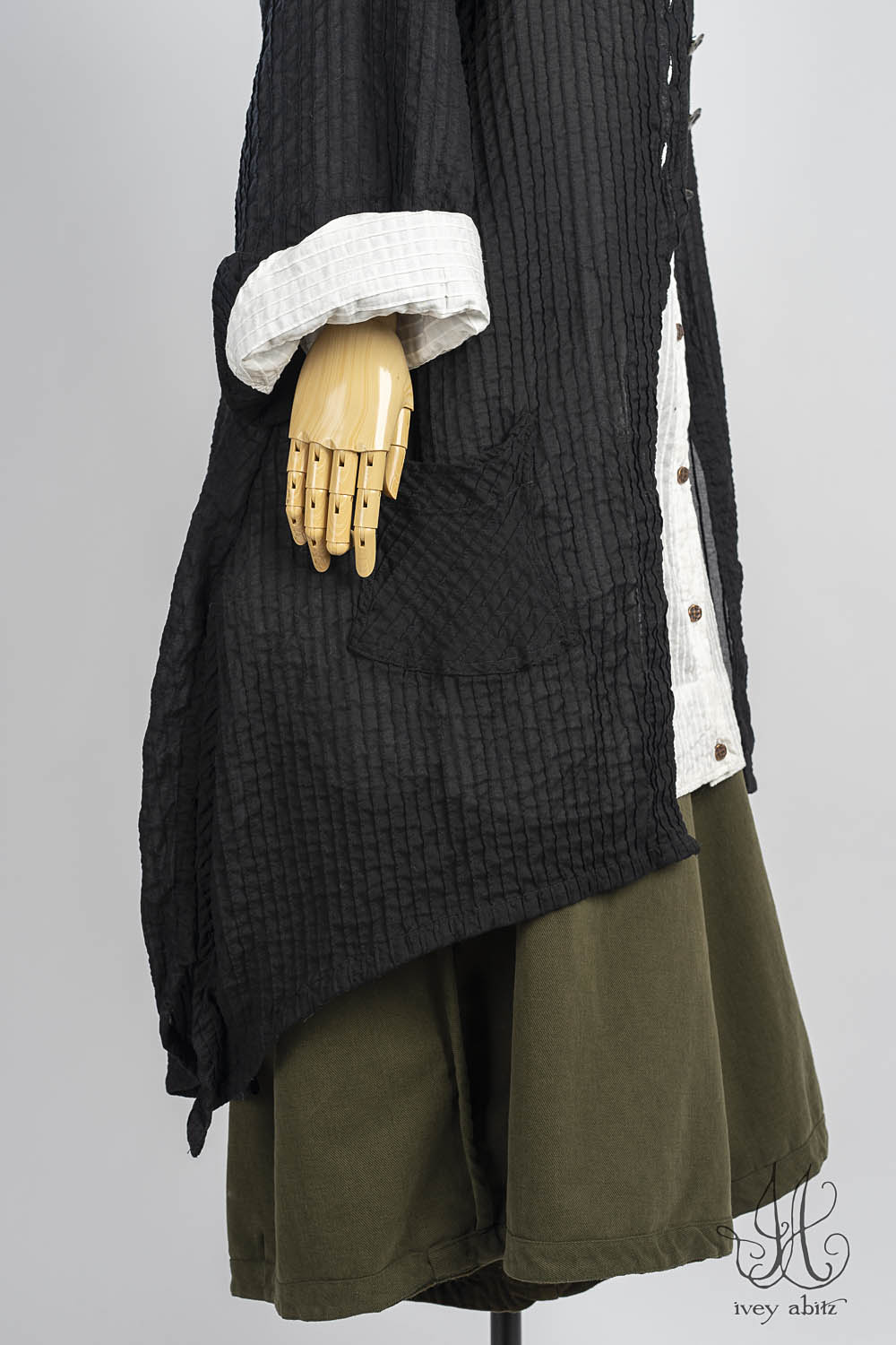 - Elsie Duster Coat in Iron Pin Tucked Voile