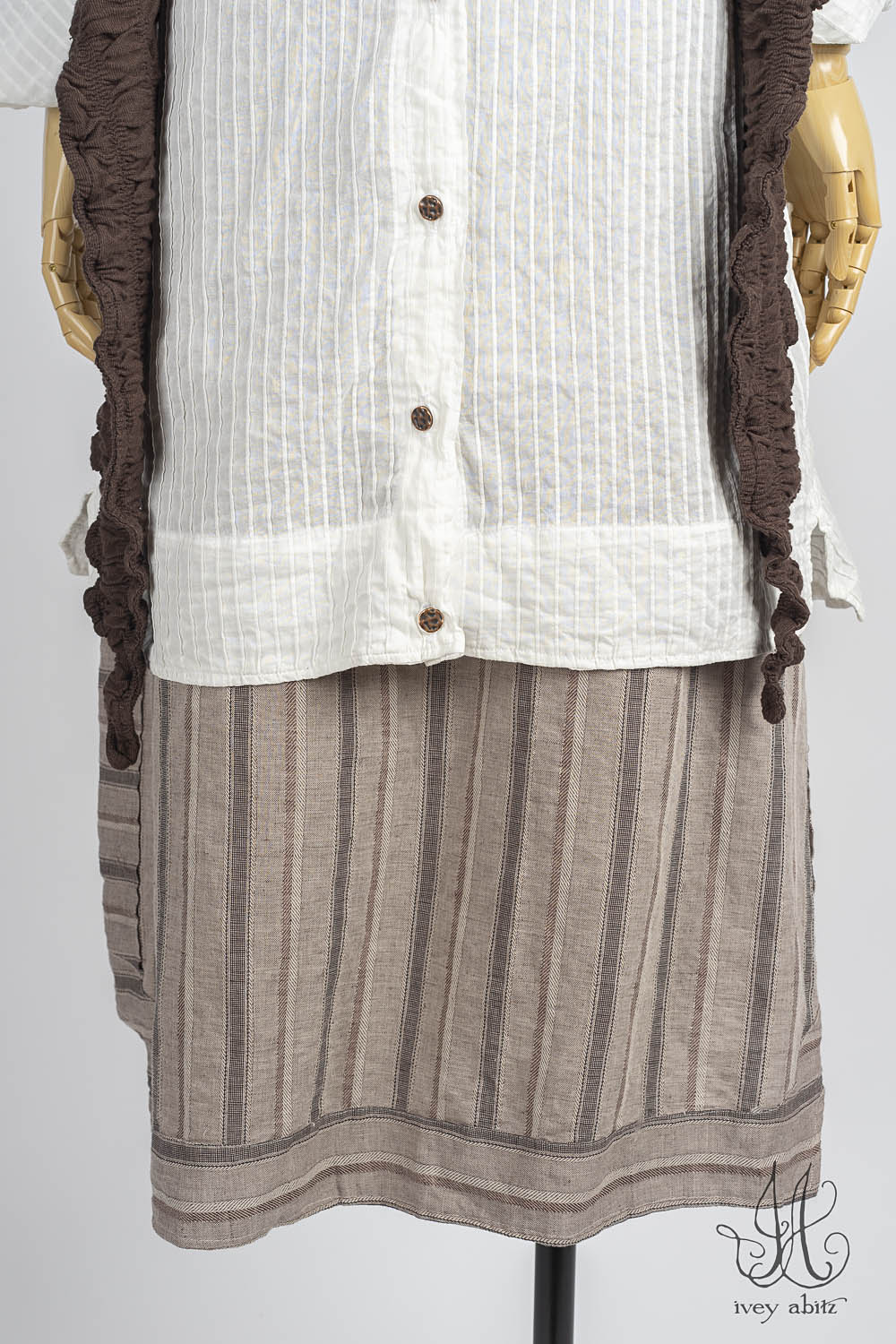- Vanetten Frock in Limbert Brown Embroidered Woven Stripe