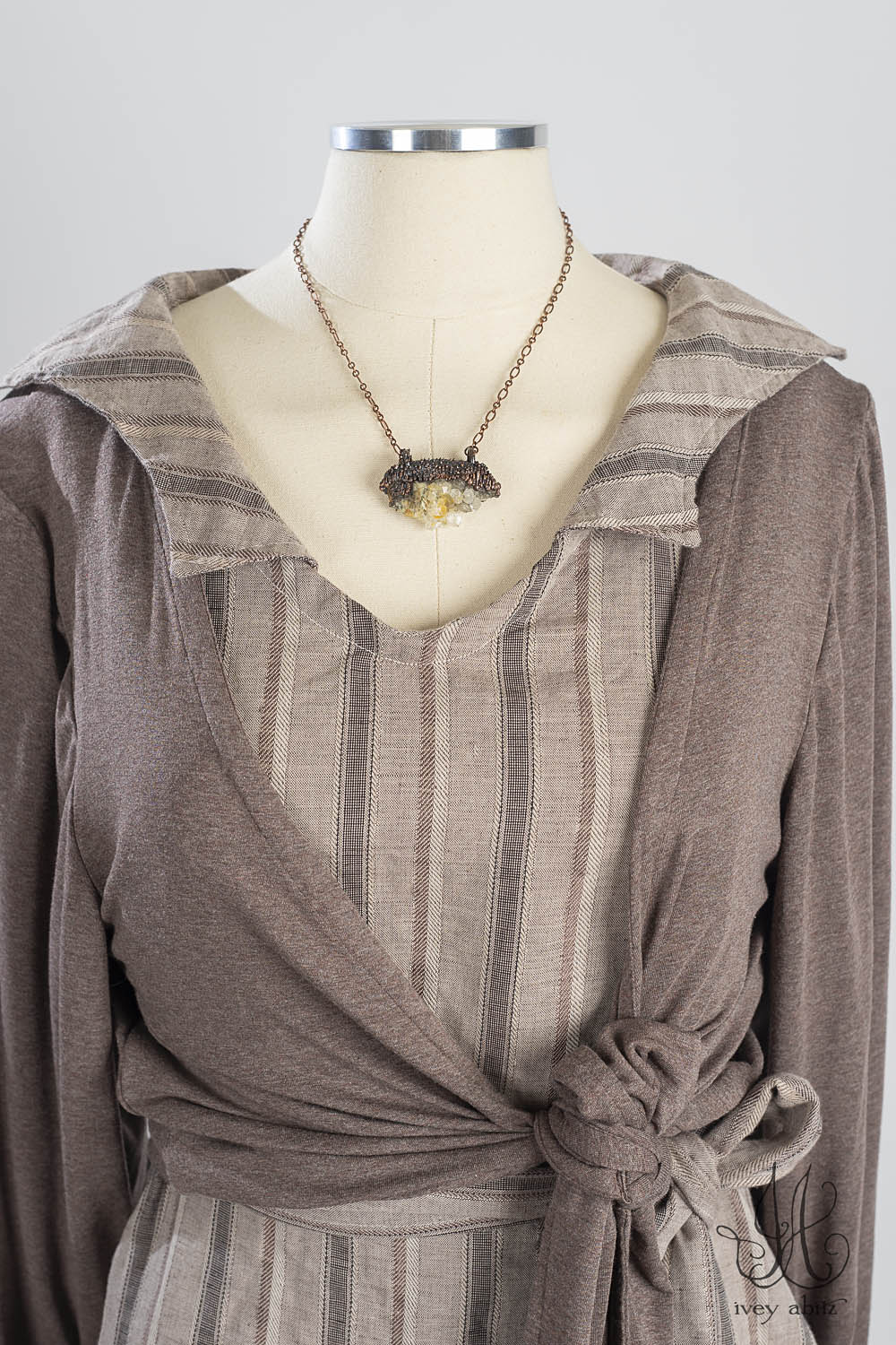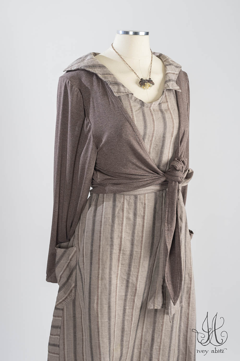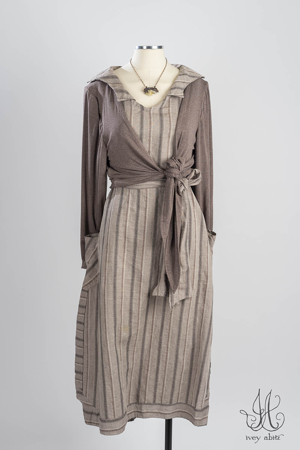 - Vanetten Frock in Limbert Brown Embroidered Stripe Weave
